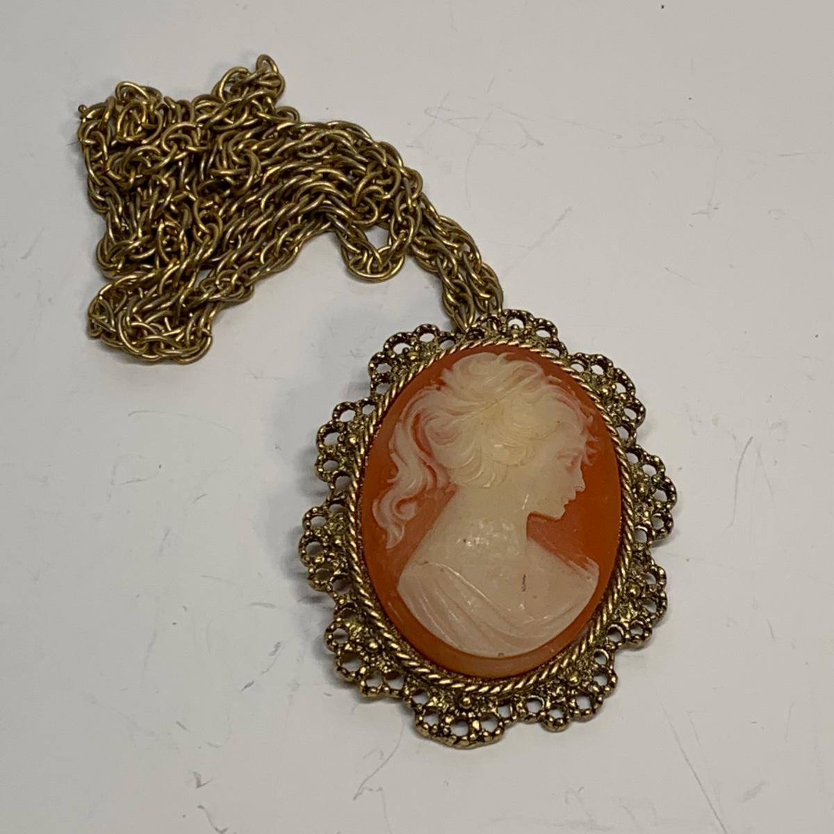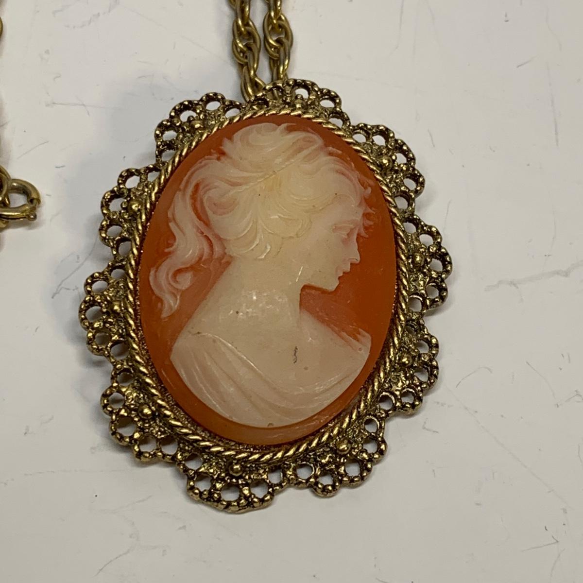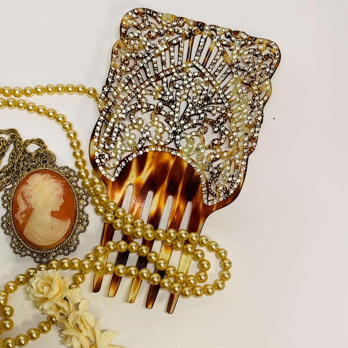 LOT 242R: Vintage Faux Pearls, Cameo Necklace/Brooch, Rose Pin & Rhinestone Hair Piece