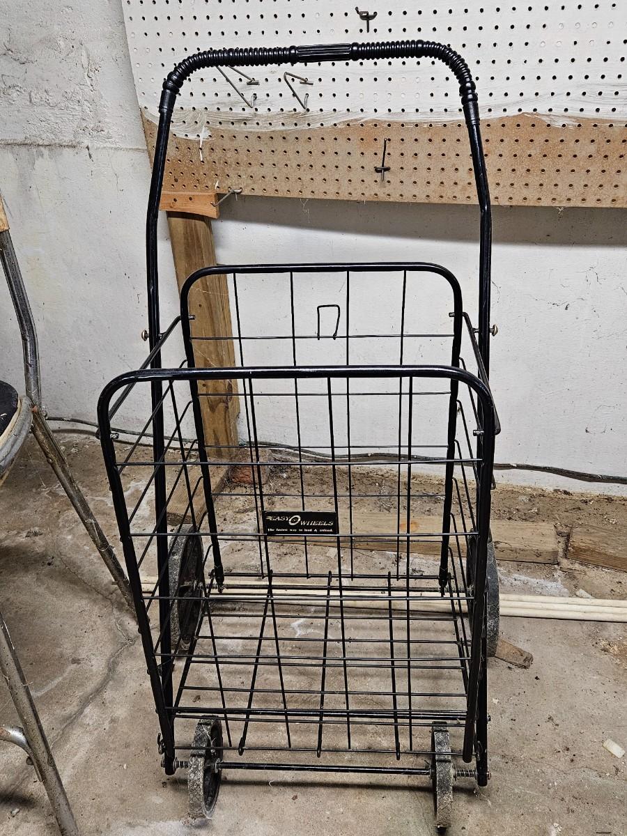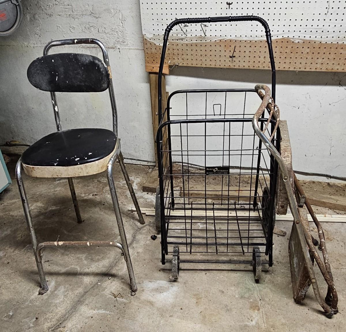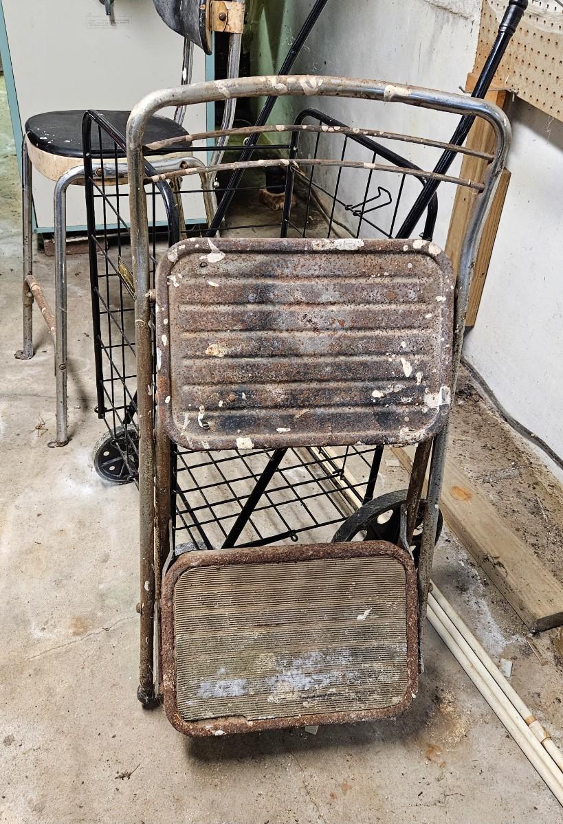 LOT 2B: Vintage Stools & Granny Shopping Cart