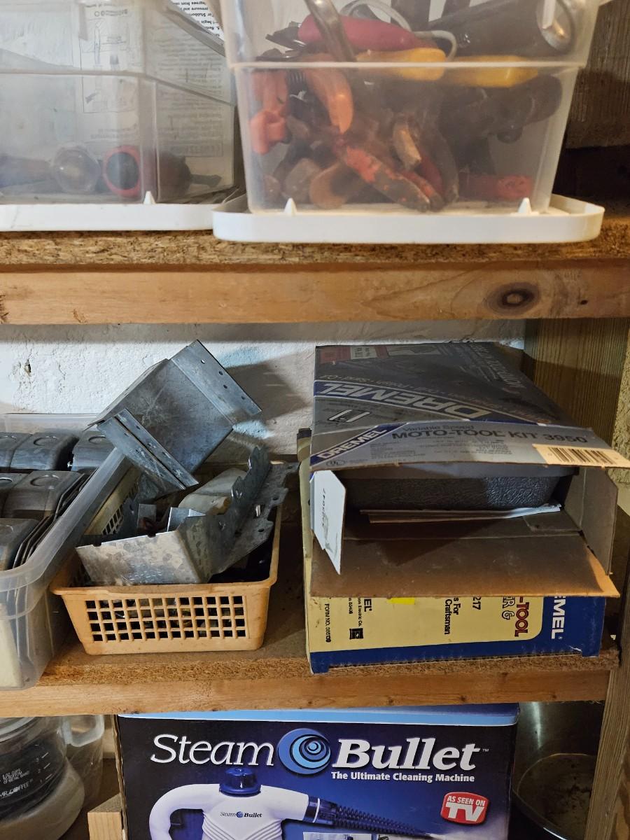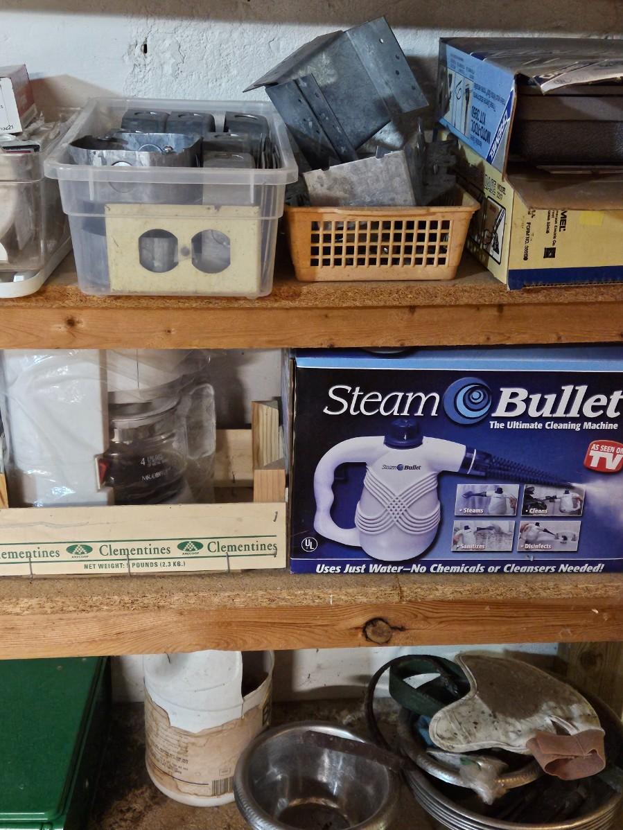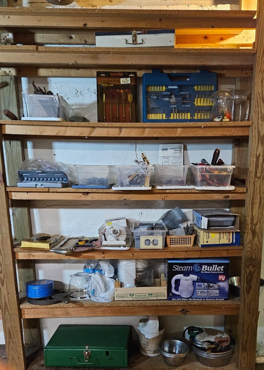 LOT 7B: Shelf Contents # 3 - Tools, Parts, Clothes Steamer, Dremel, Camp Stove