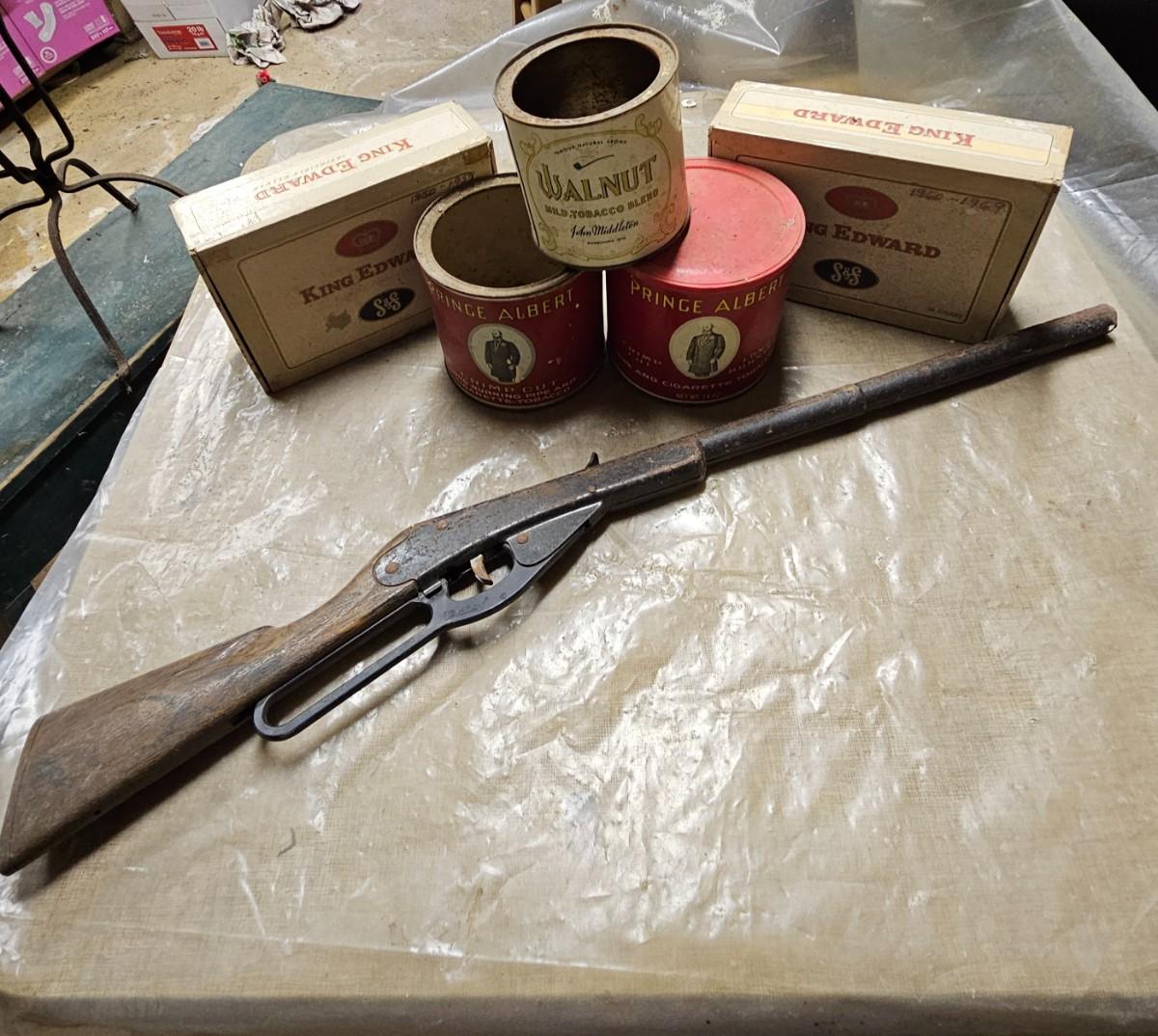 LOT 10B: Shelf Contents #6 - Vintage Daisy BB Gun & Tobacciana