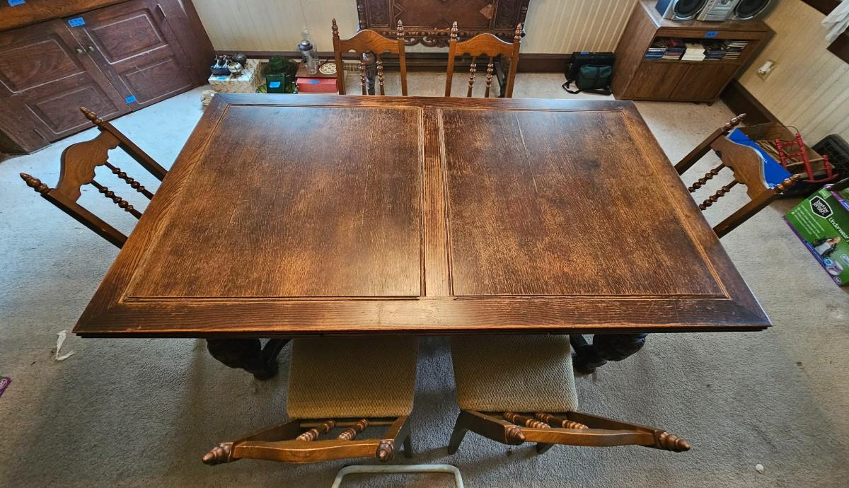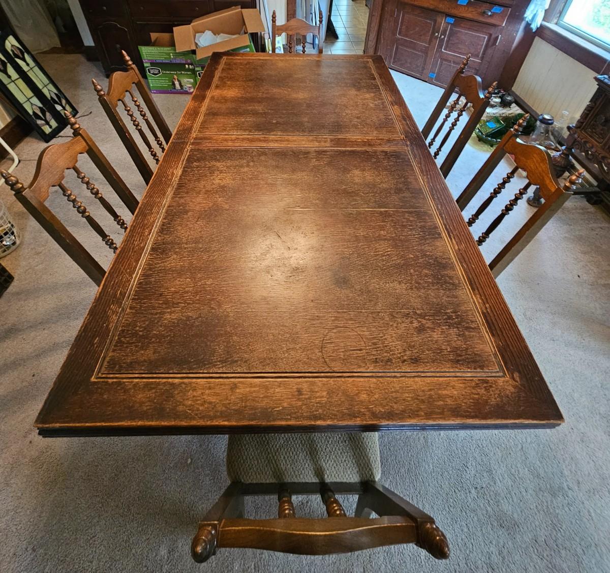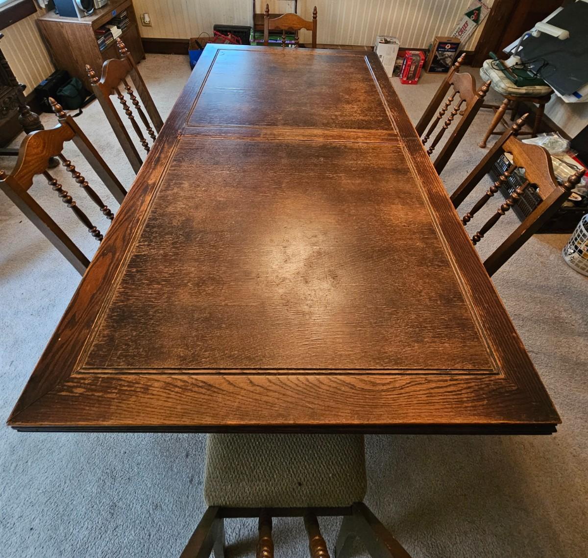 LOT 57D: Vintage Solid Wood Dining Room Table & 6 Chairs Set