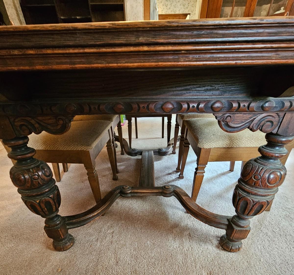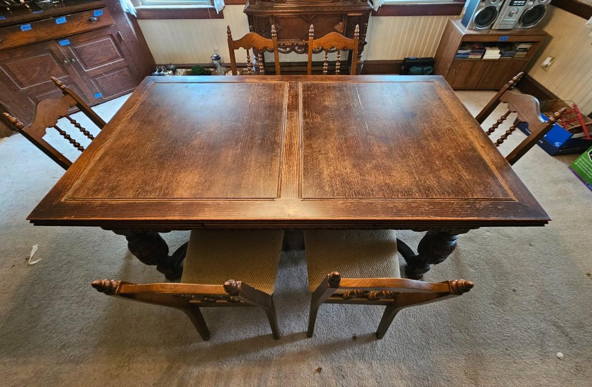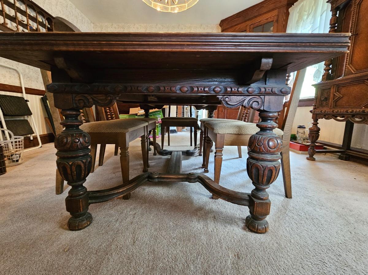 LOT 57D: Vintage Solid Wood Dining Room Table & 6 Chairs Set