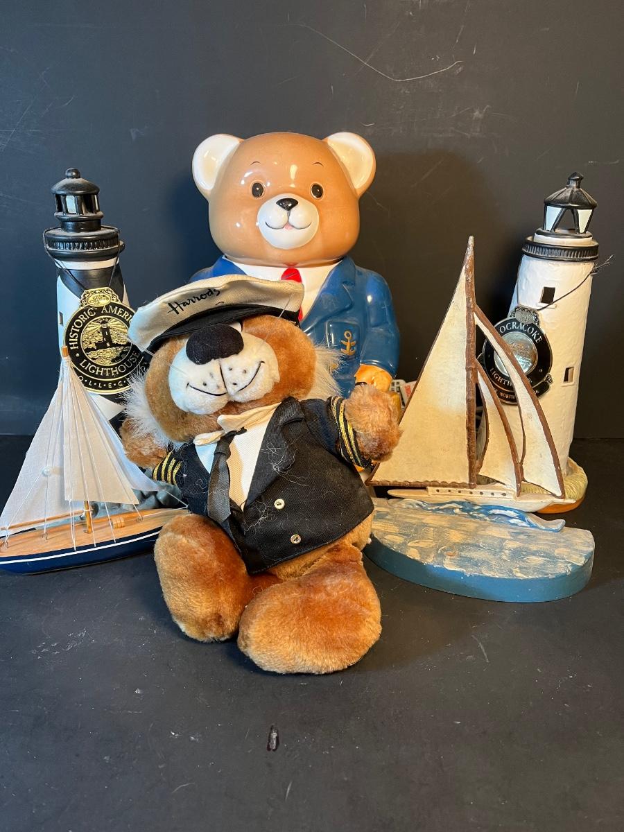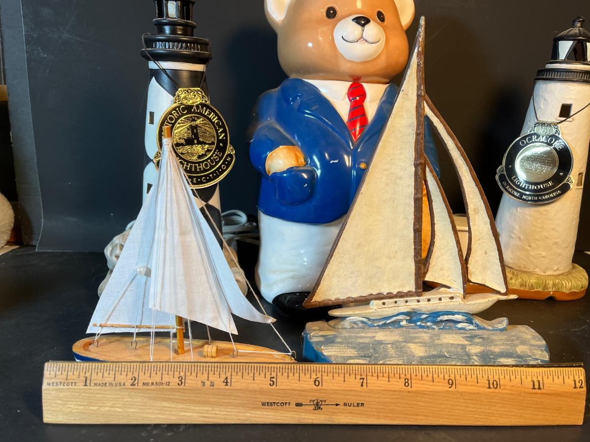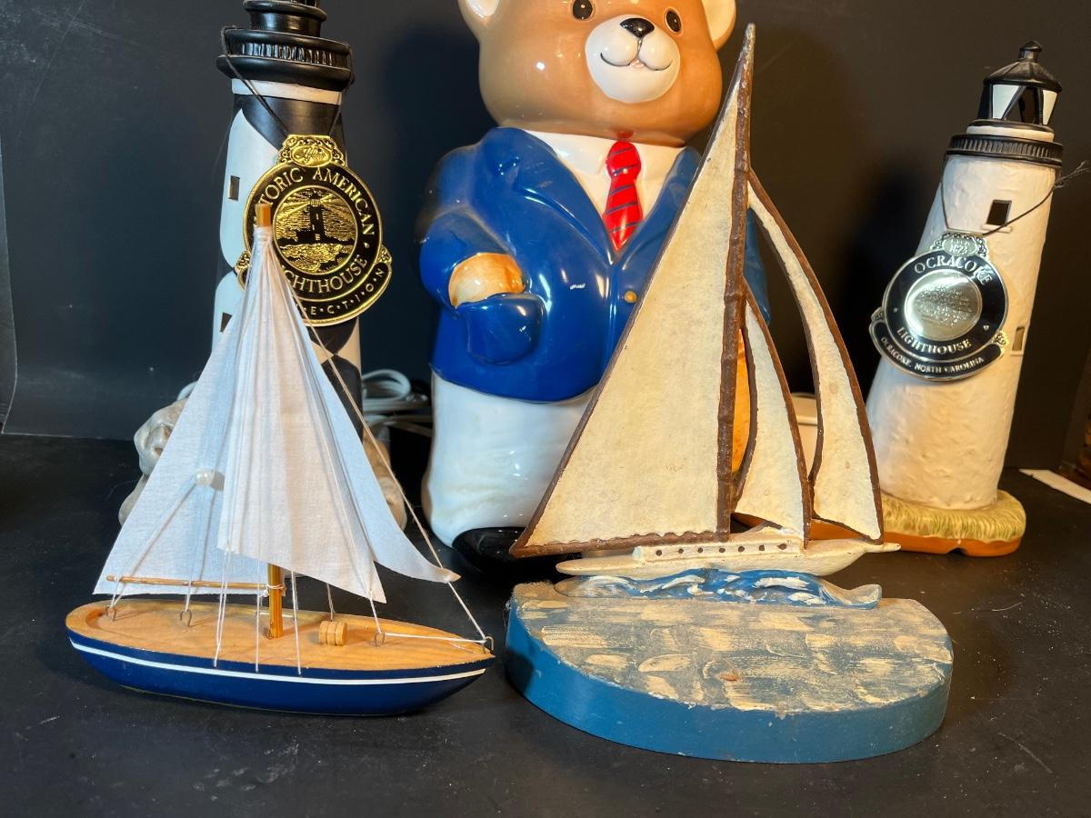 LOT 80T: Nautical Decor - Teddy Bear Cookie Jar, Sailboats, Lighthouses