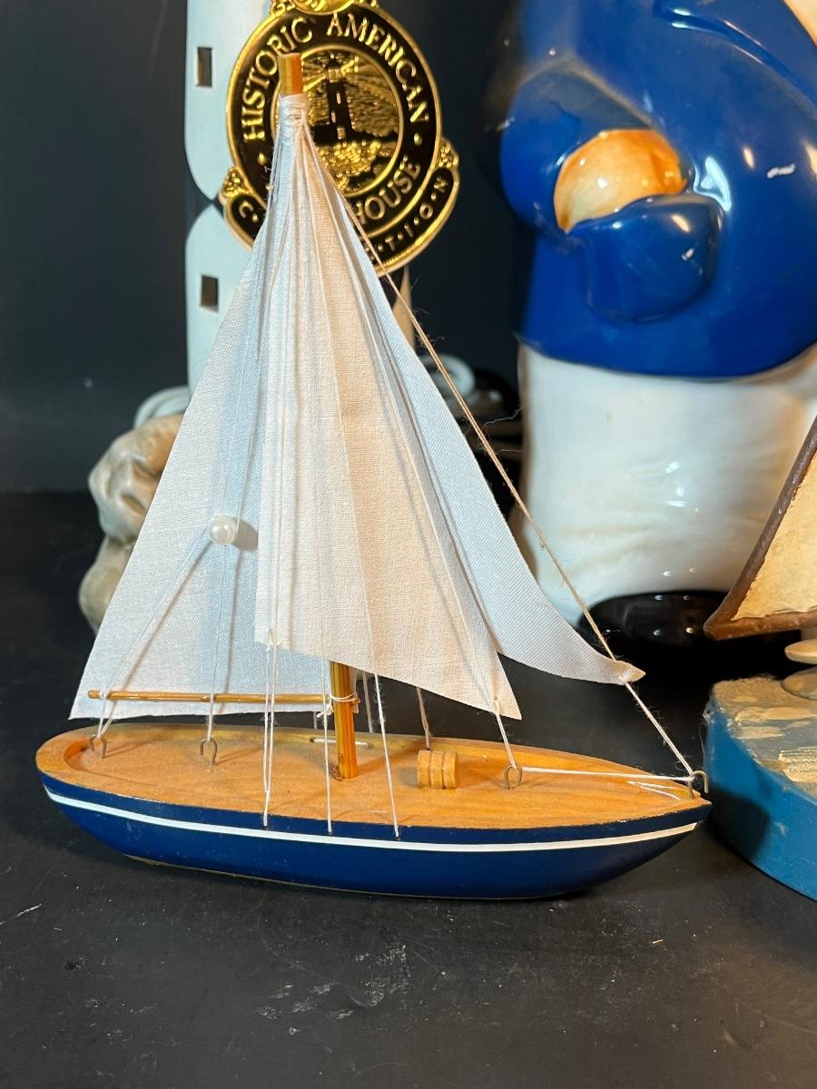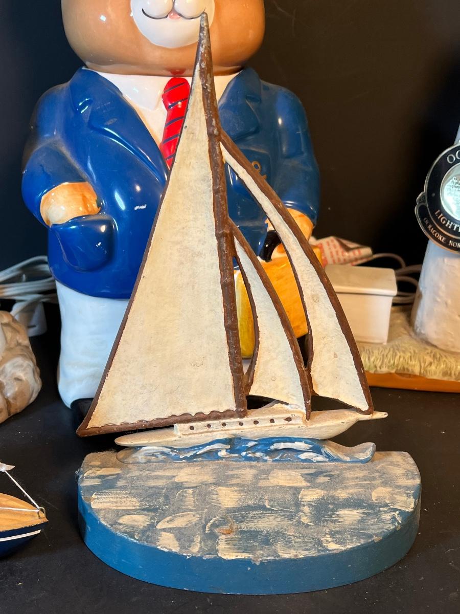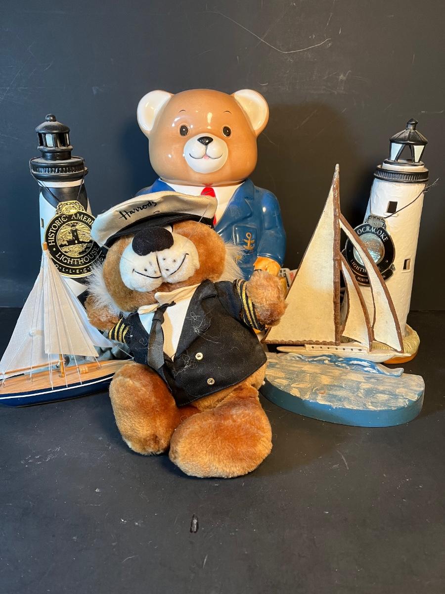LOT 80T: Nautical Decor - Teddy Bear Cookie Jar, Sailboats, Lighthouses