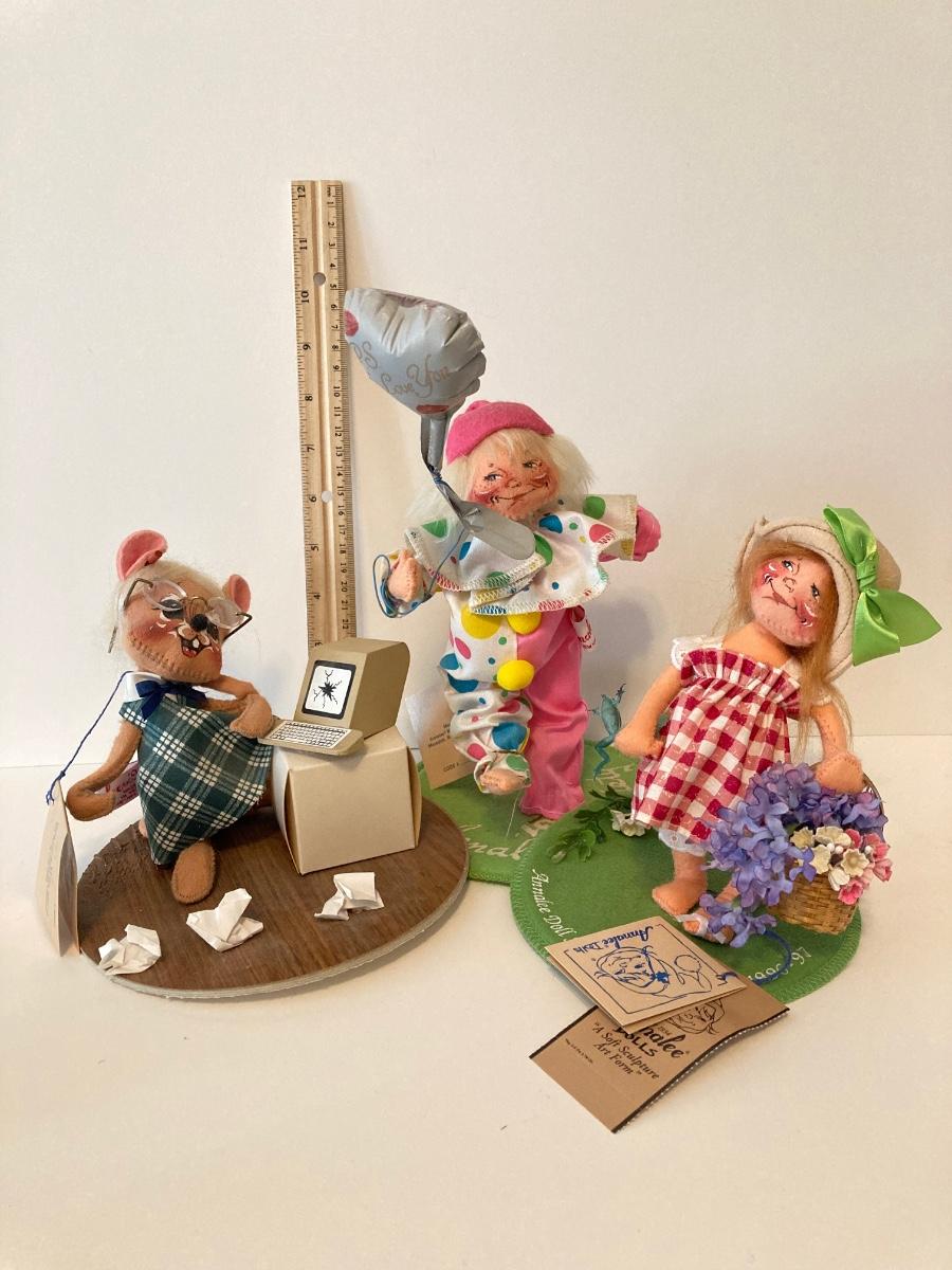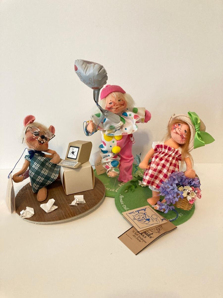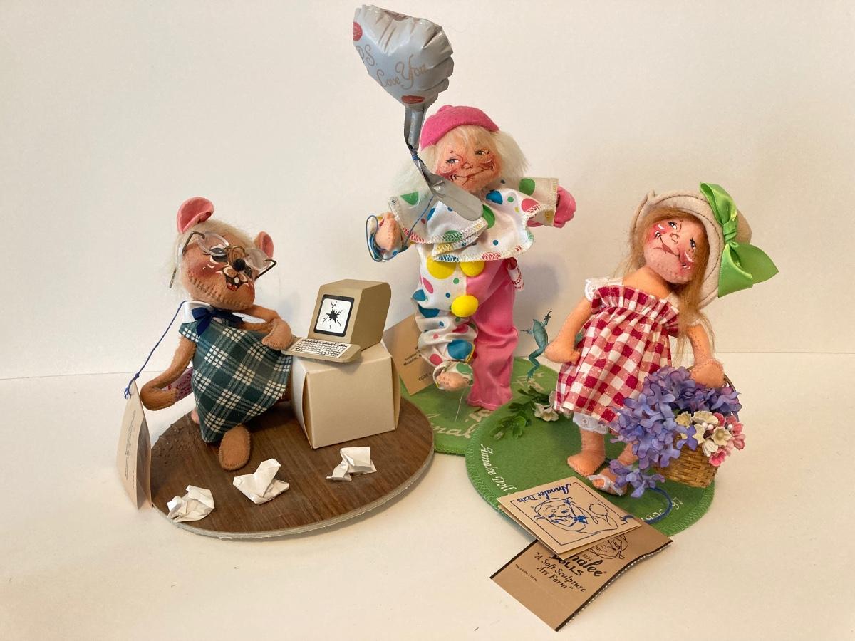 LOT 91C: Annalee Dolls - #2012, #9648, Clown and "Little Mae Flowers"