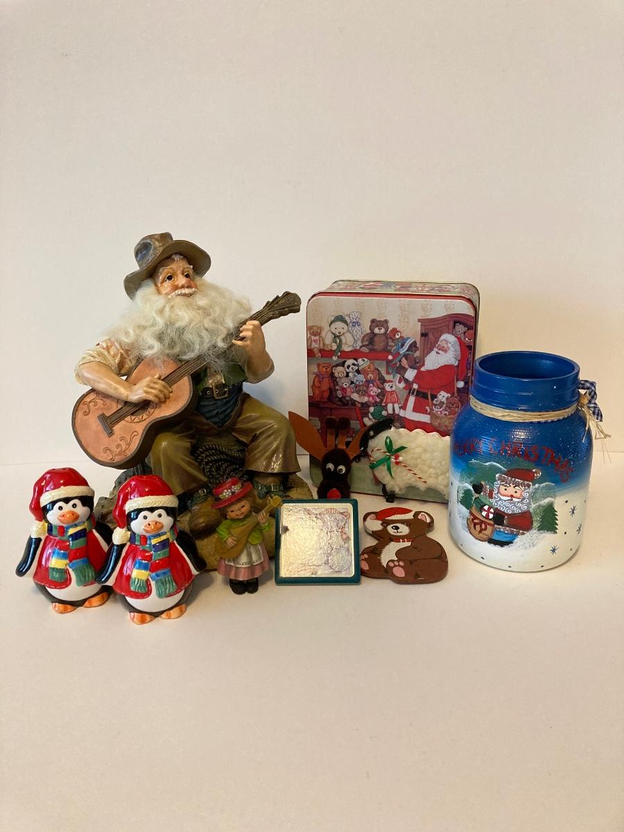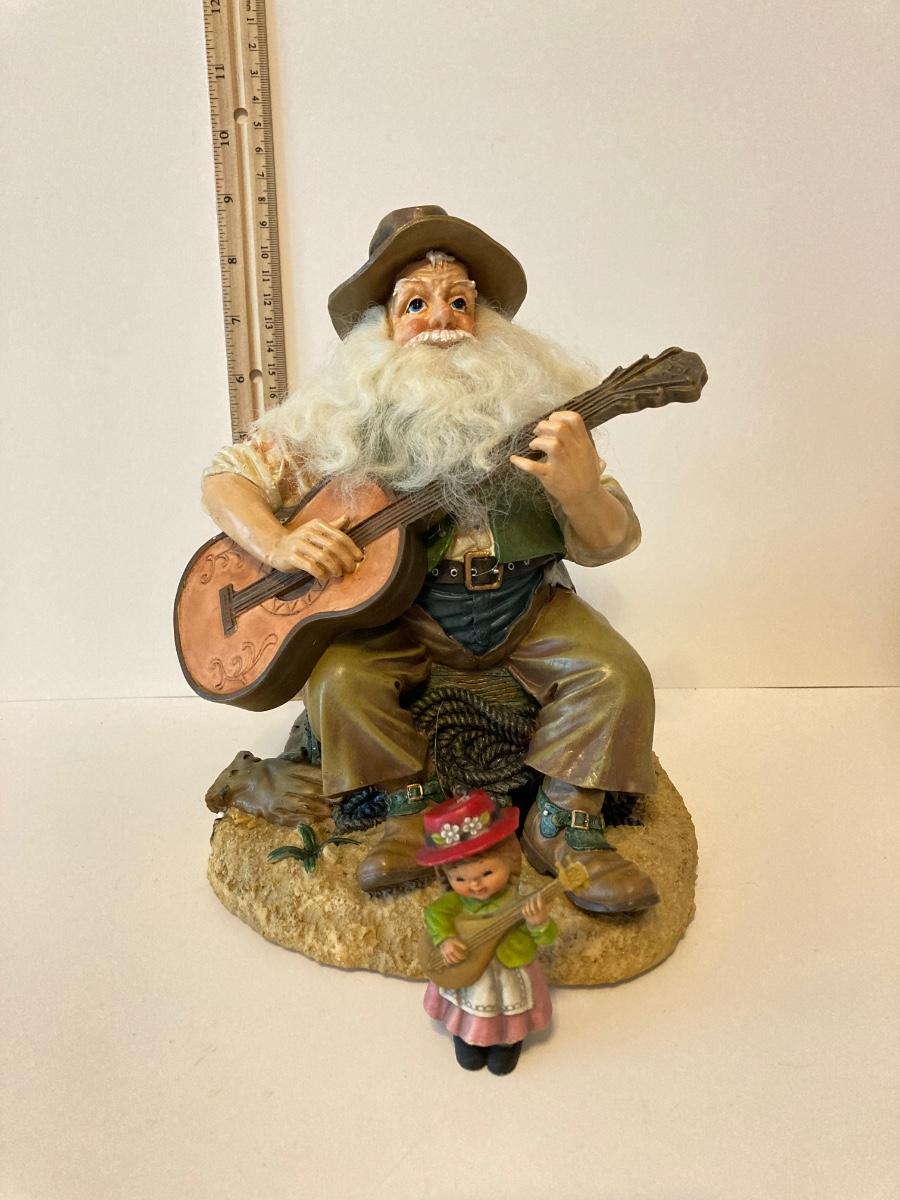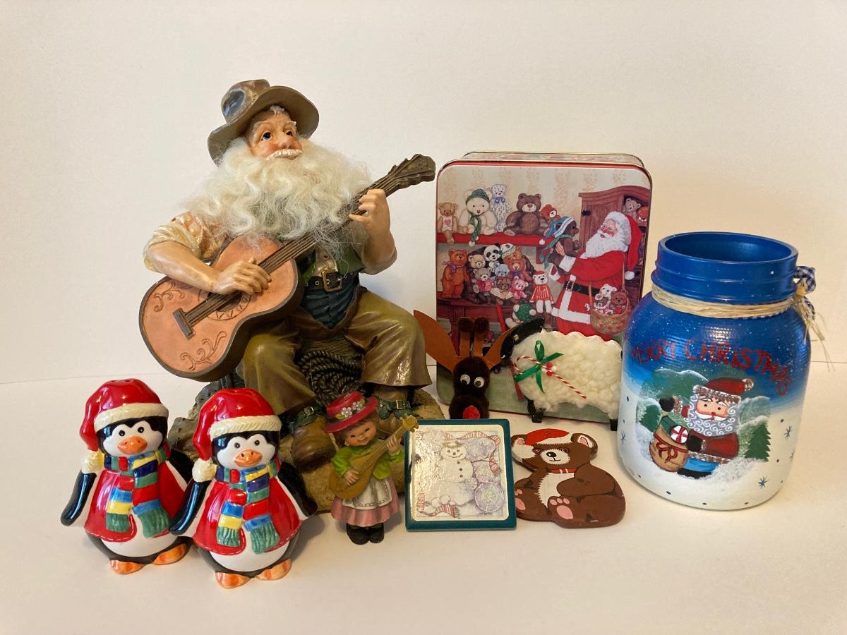 LOT 137C: Christmas Decor - Country Santa Playing Guitar Musical Figurine and More