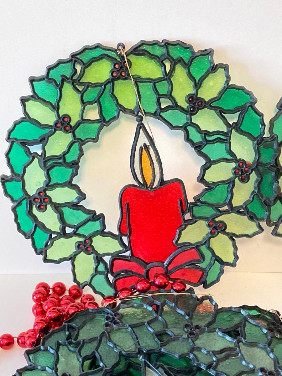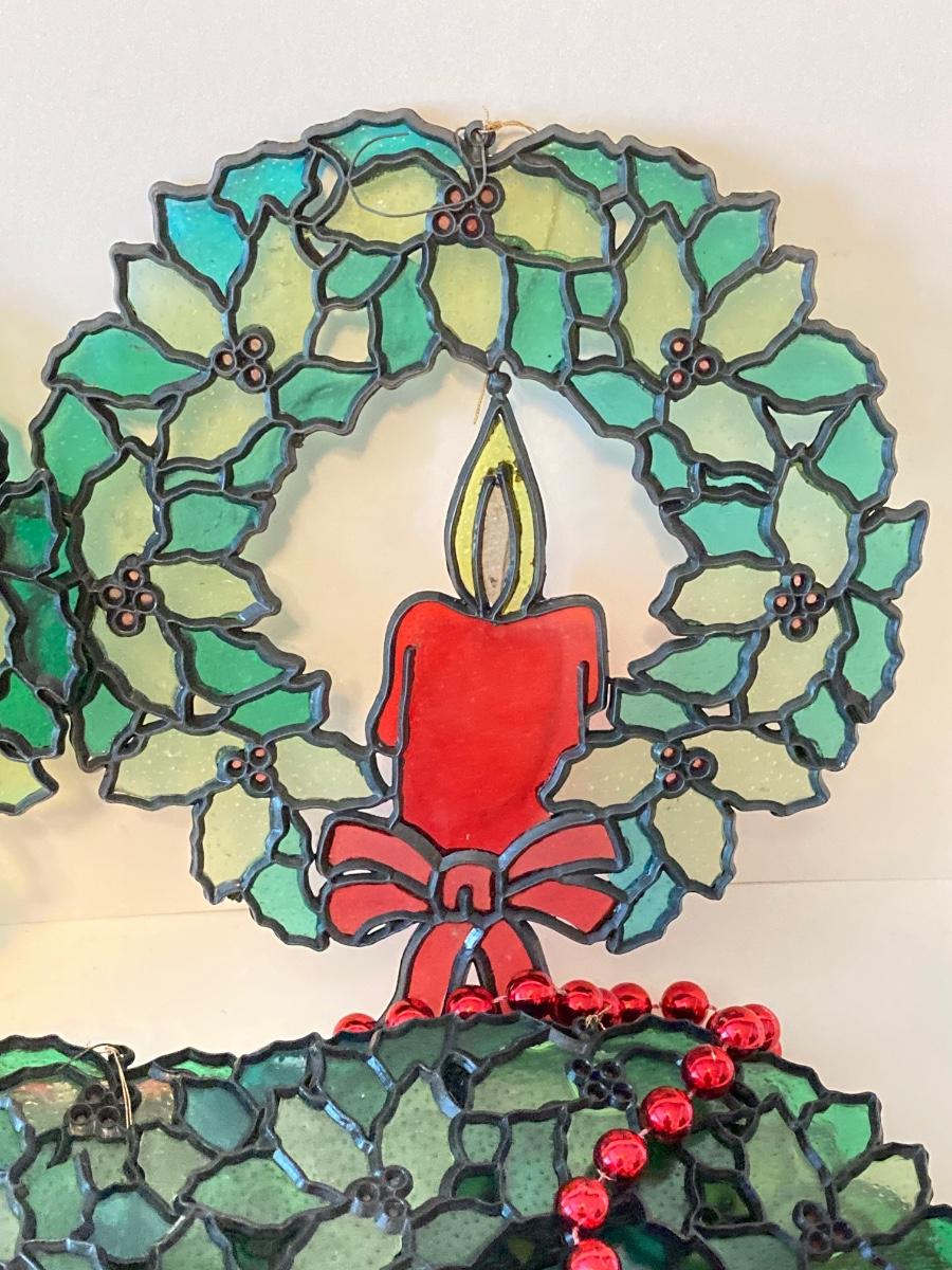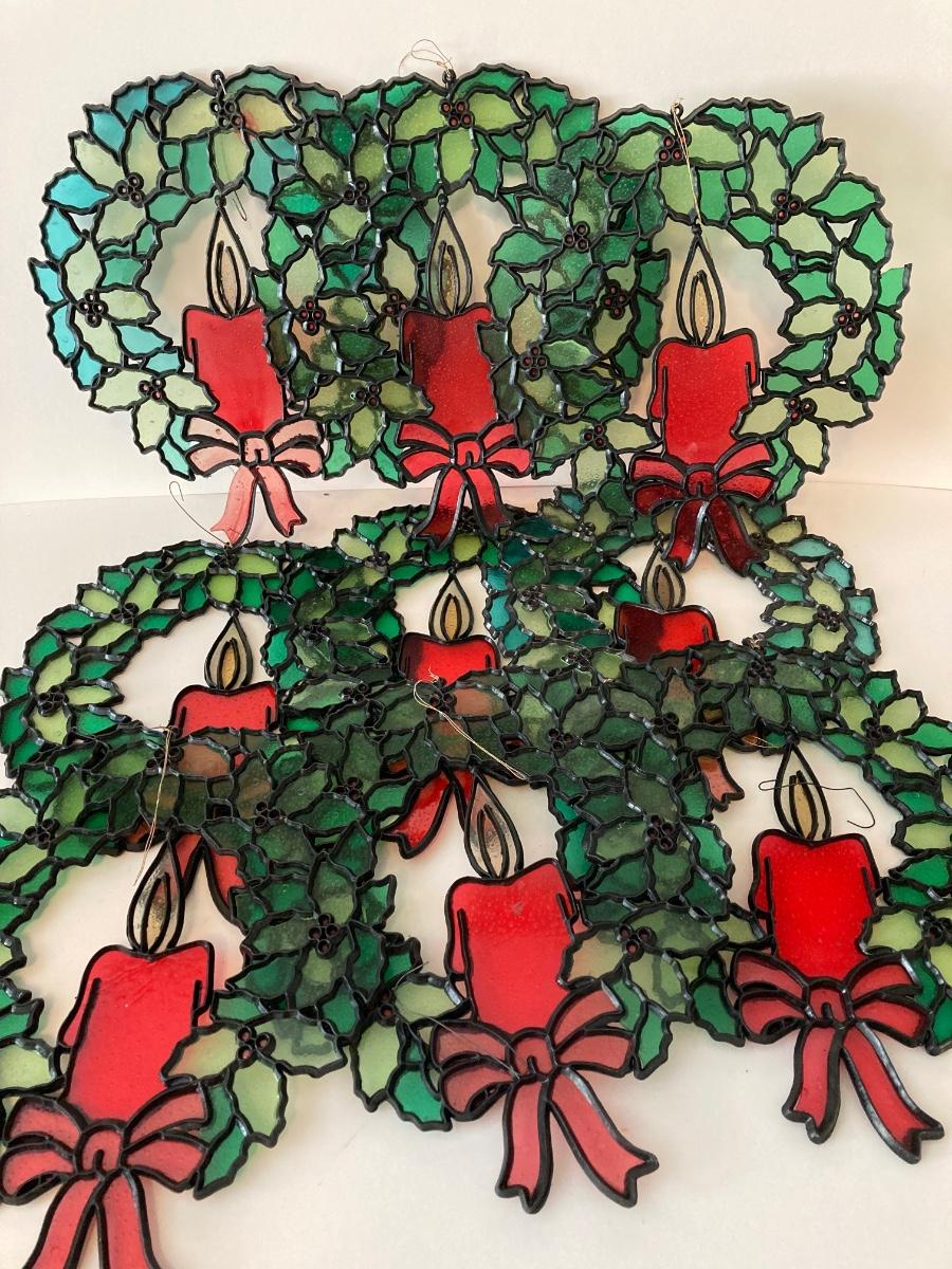 LOT 158C: Eleven Vintage Plastic Hanging Decorations - Wreath and Candlestick Style