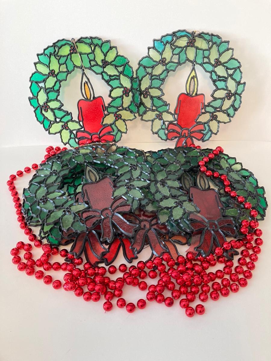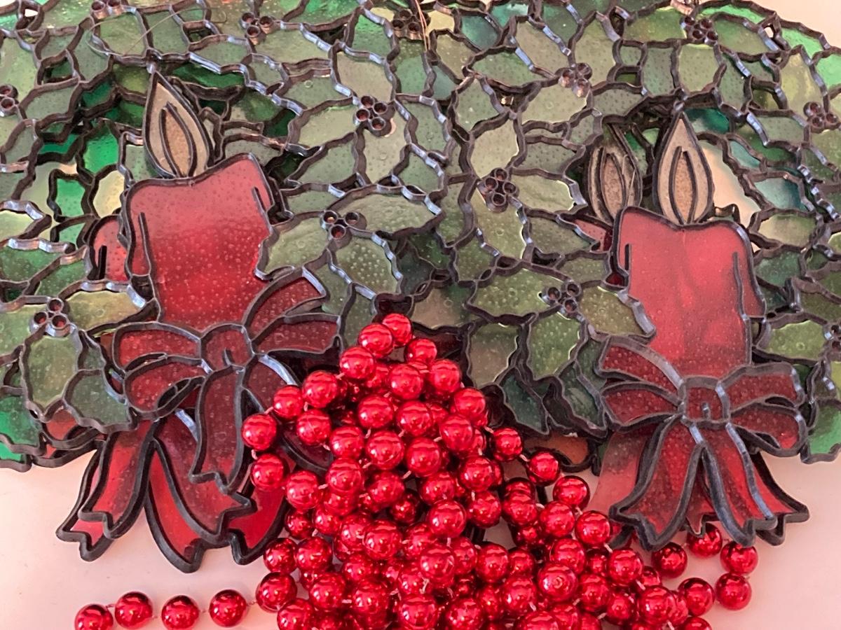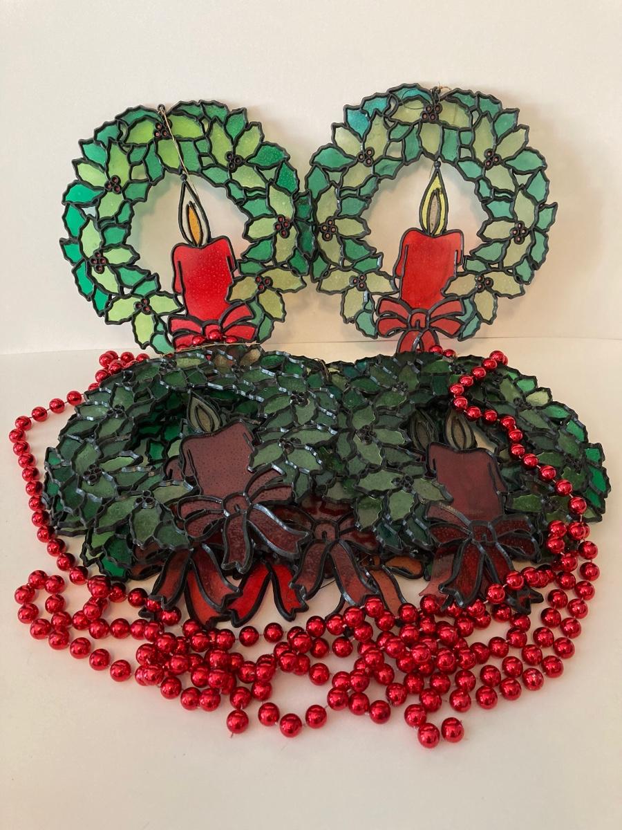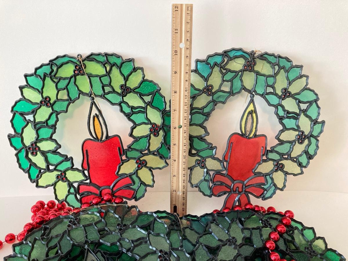 LOT 158C: Eleven Vintage Plastic Hanging Decorations - Wreath and Candlestick Style