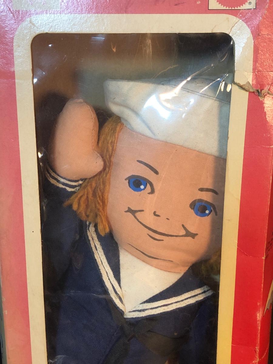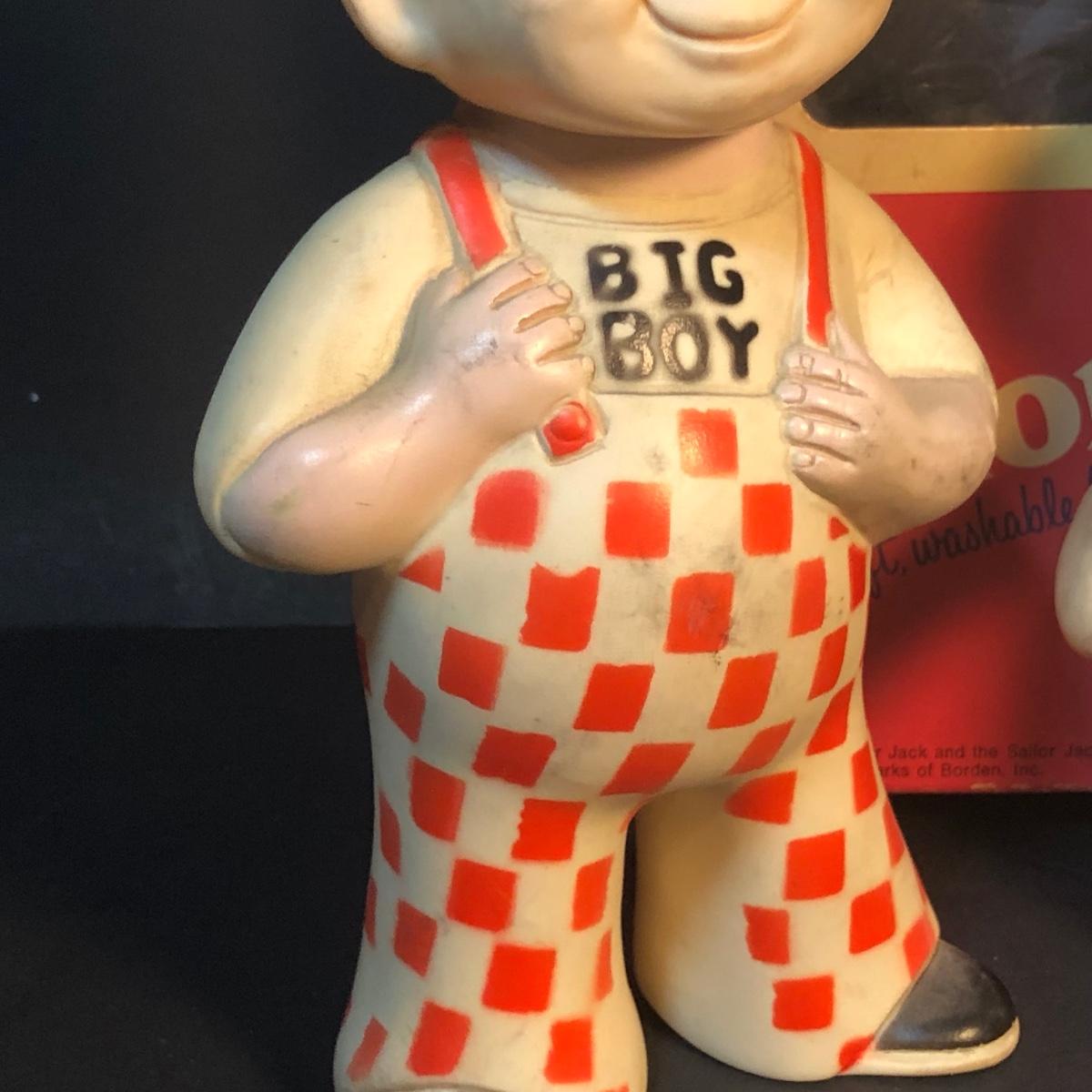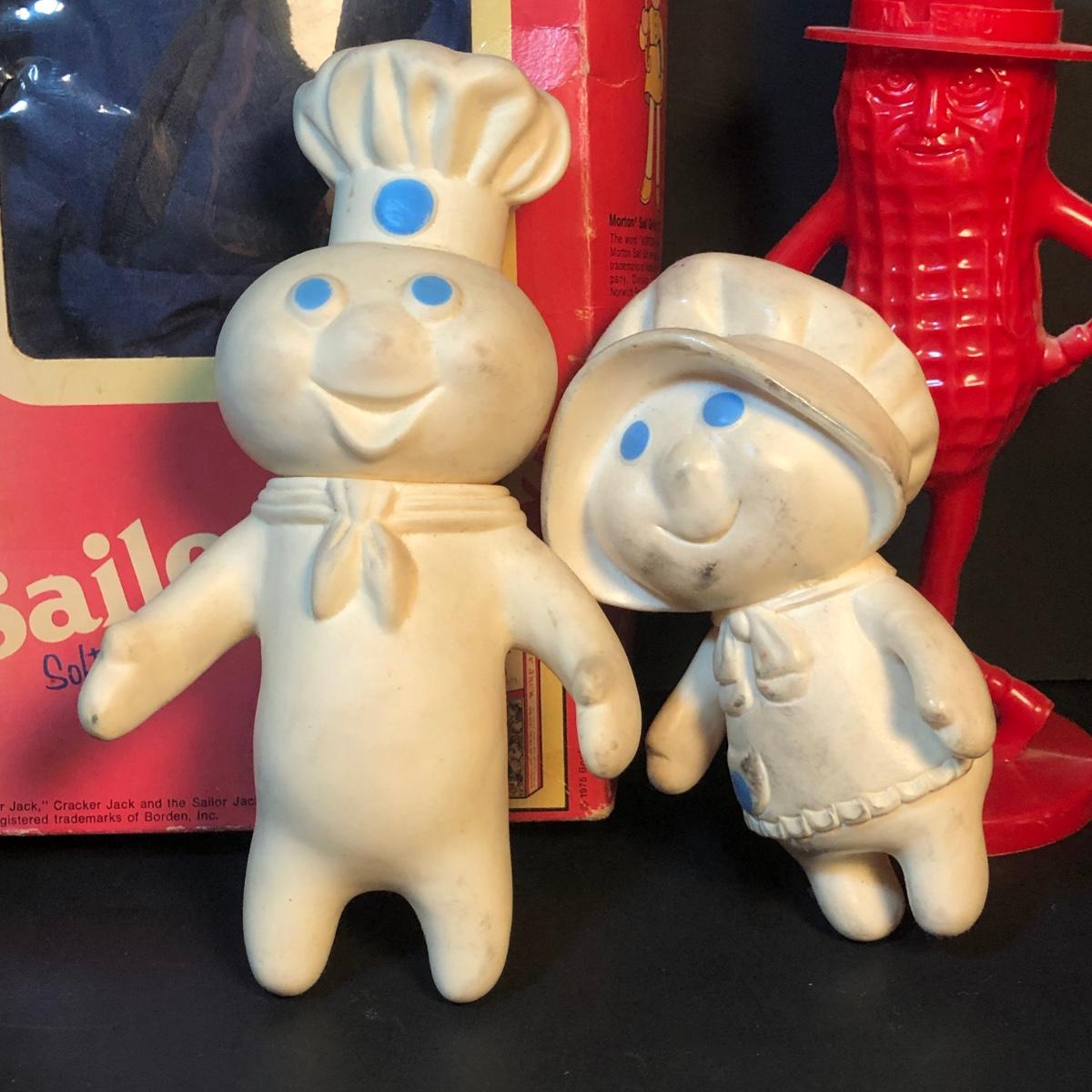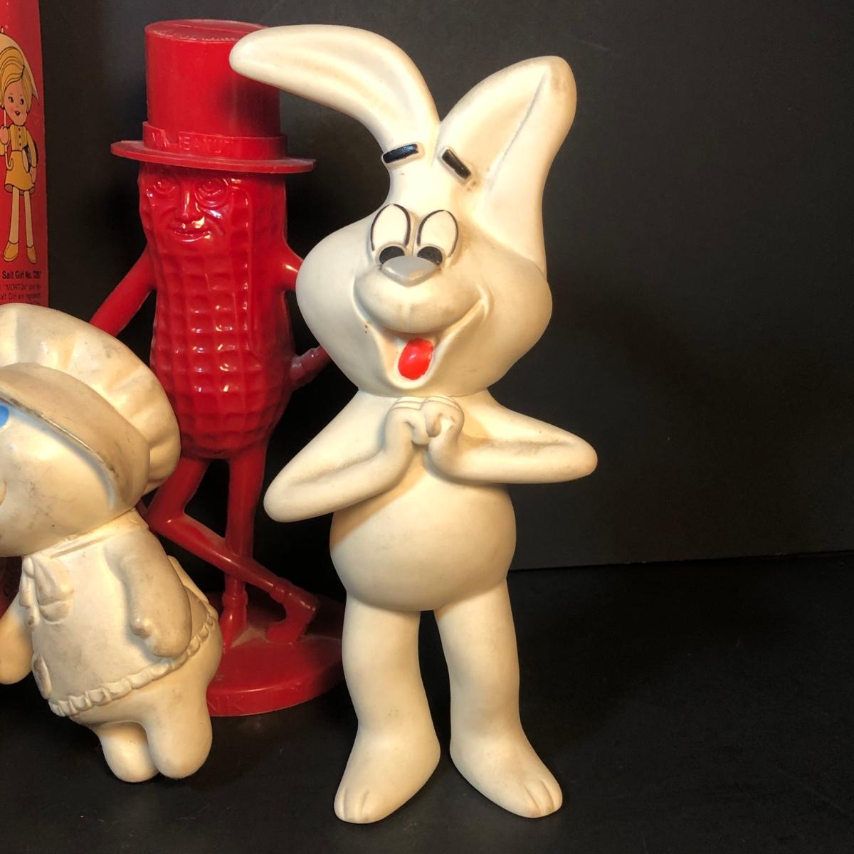 LOT 161S: Big Boy Bank, Mr. Peanut Bank, Trix Rabbit, Scrubbing Bubbles, Pillsbury & Mattel Sailor Jack Cloth Doll w/ Original Box