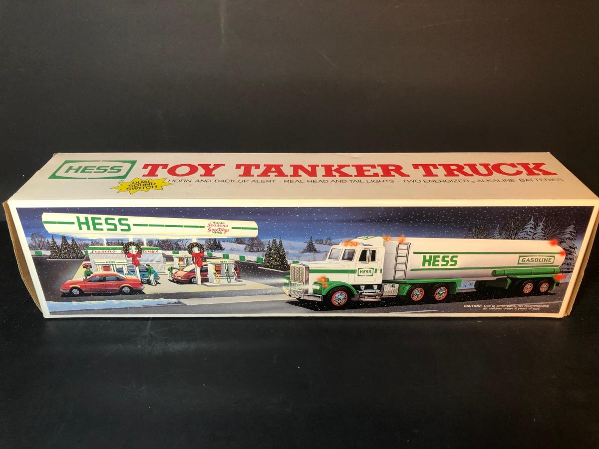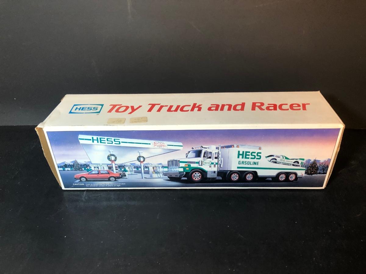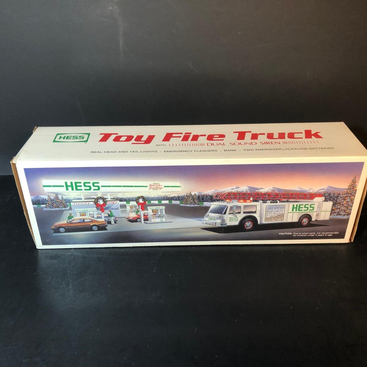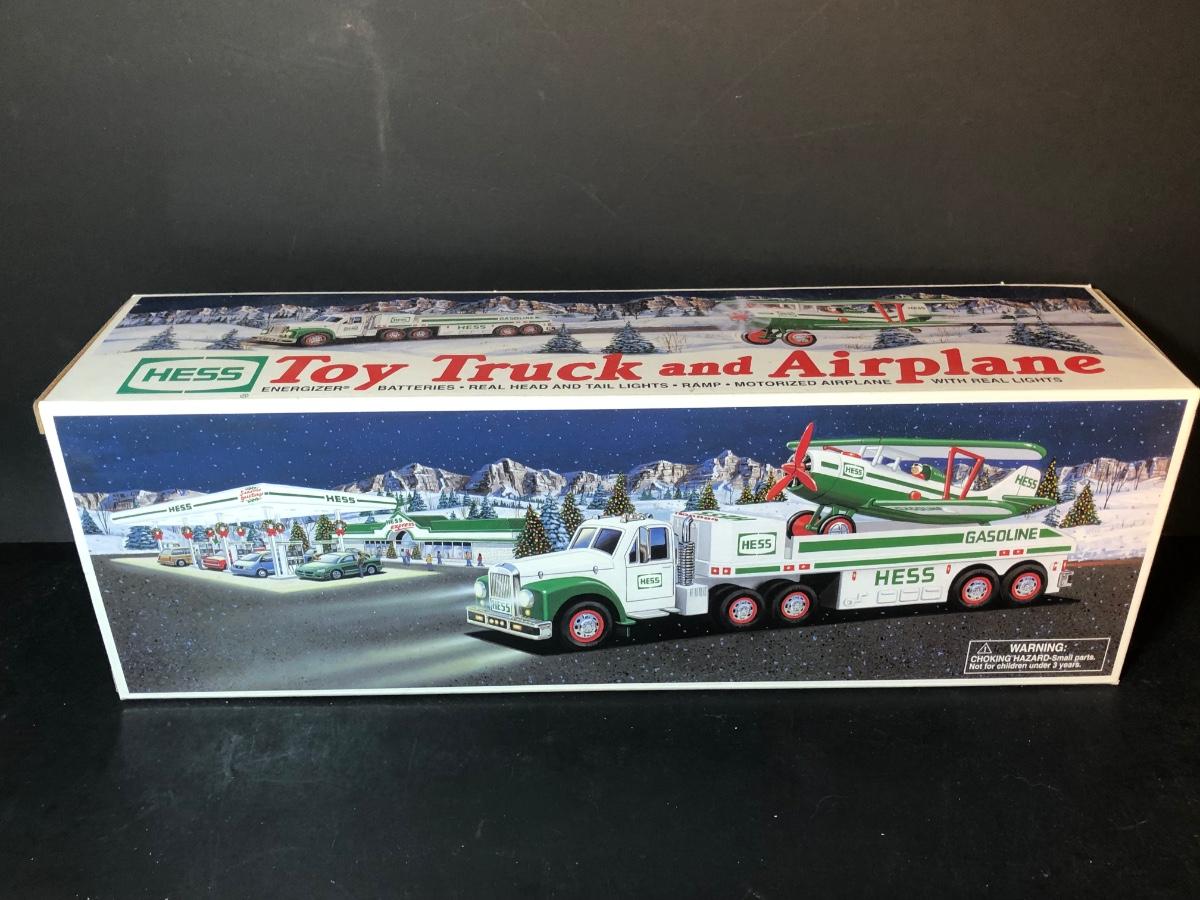 LOT 172S: Hess Collection - 2002 Toy Truck & Airplane, 2001 Helicopter w/ Motorcycle & Cruiser, 1988 Toy Truck & Racer, 1990 Toy Tanker Truck and 1989 Toy Fire Truck