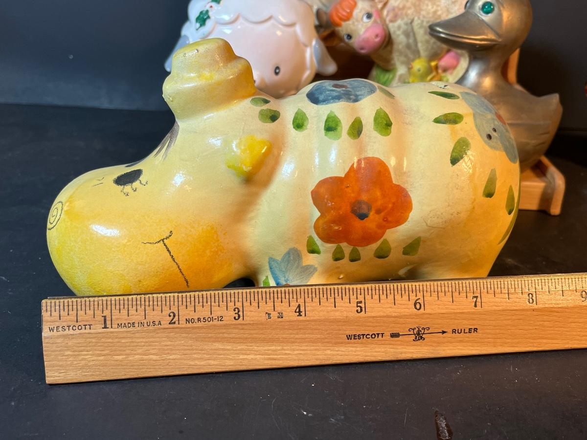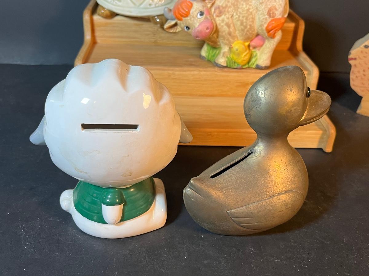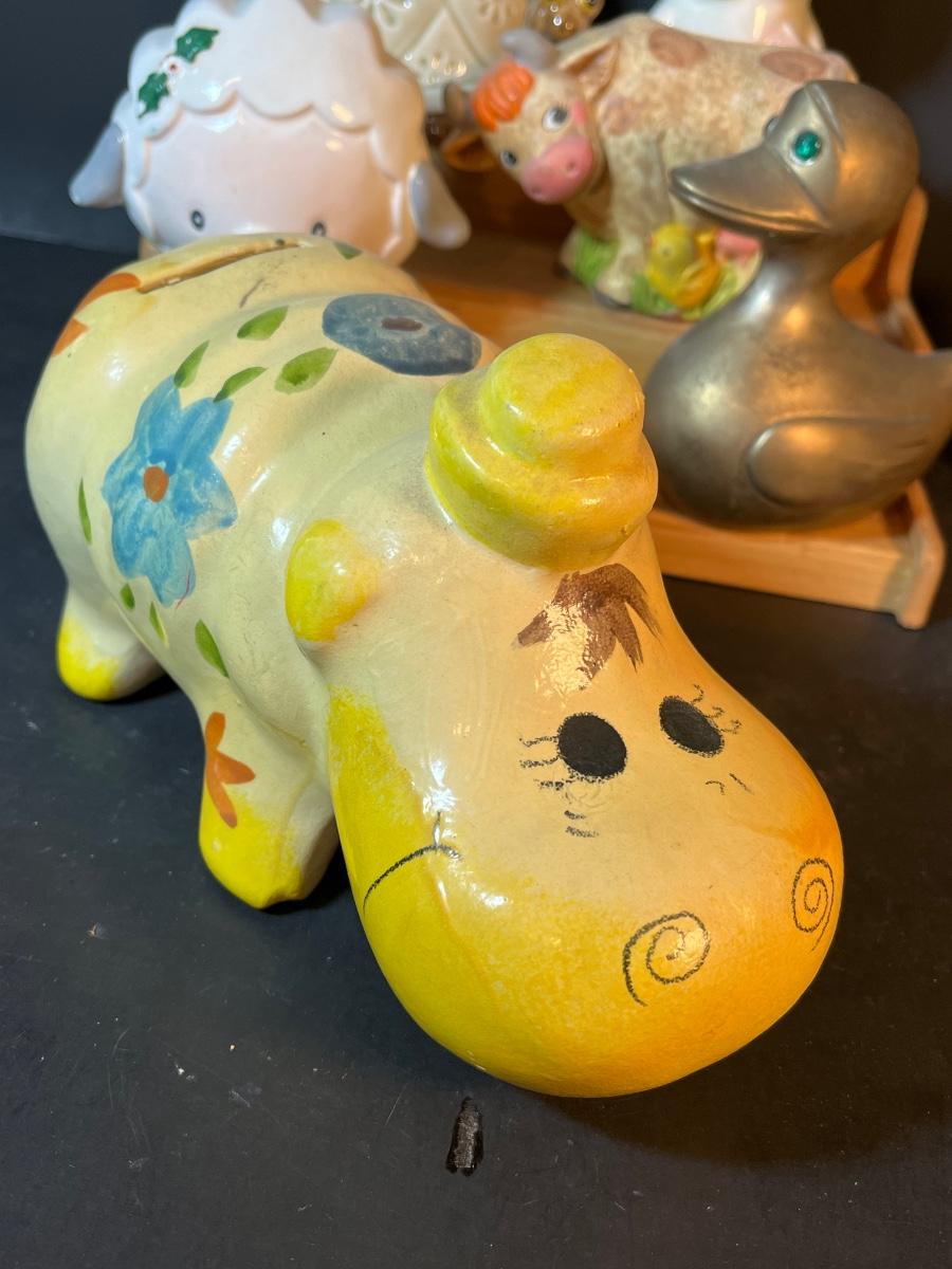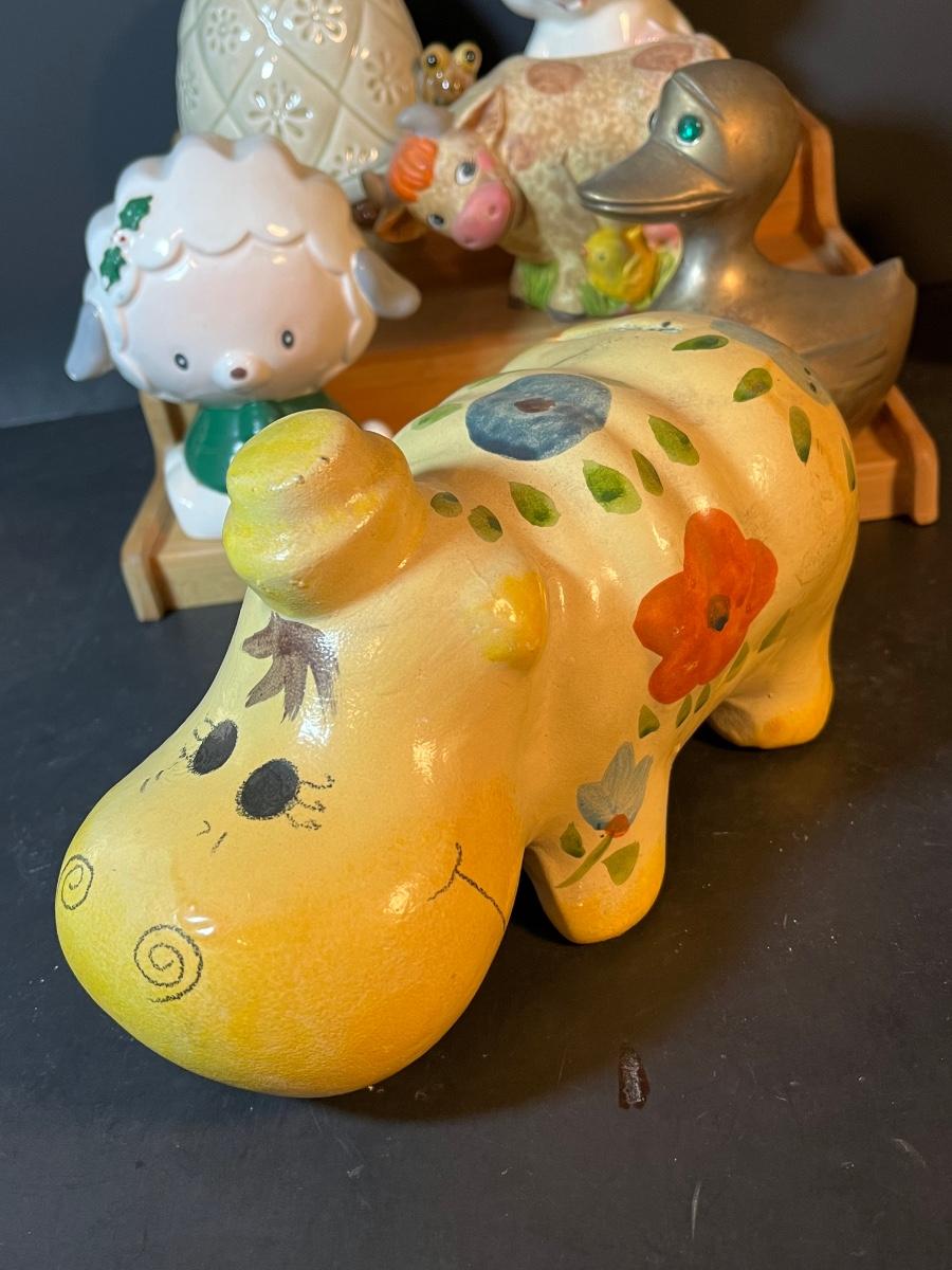 LOT 195S: Animal Themed Coin Banks - Hippo, Turtle, Brass Duck and More