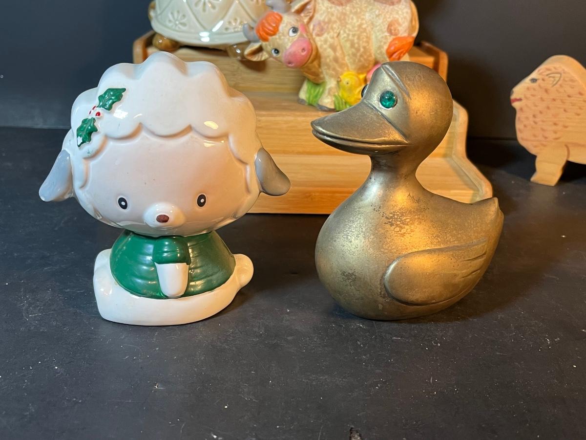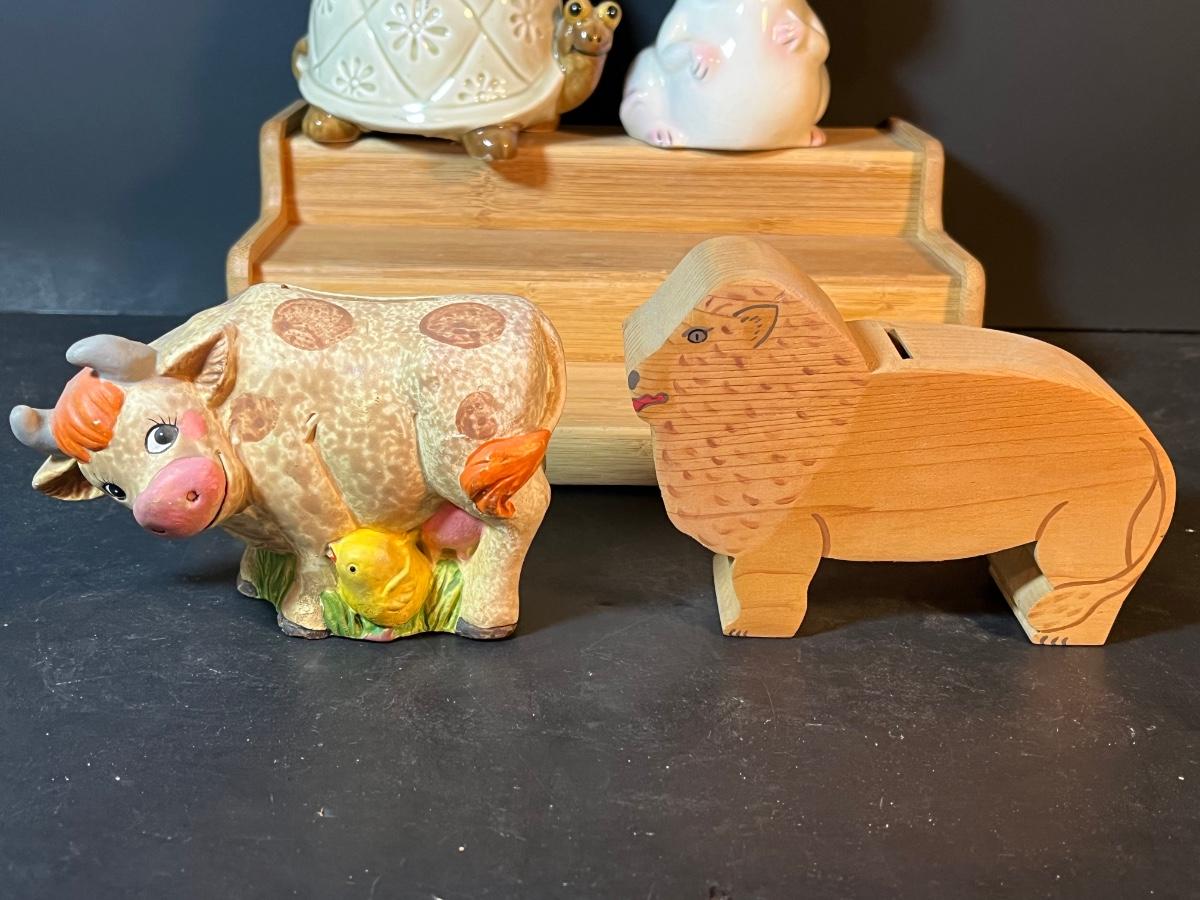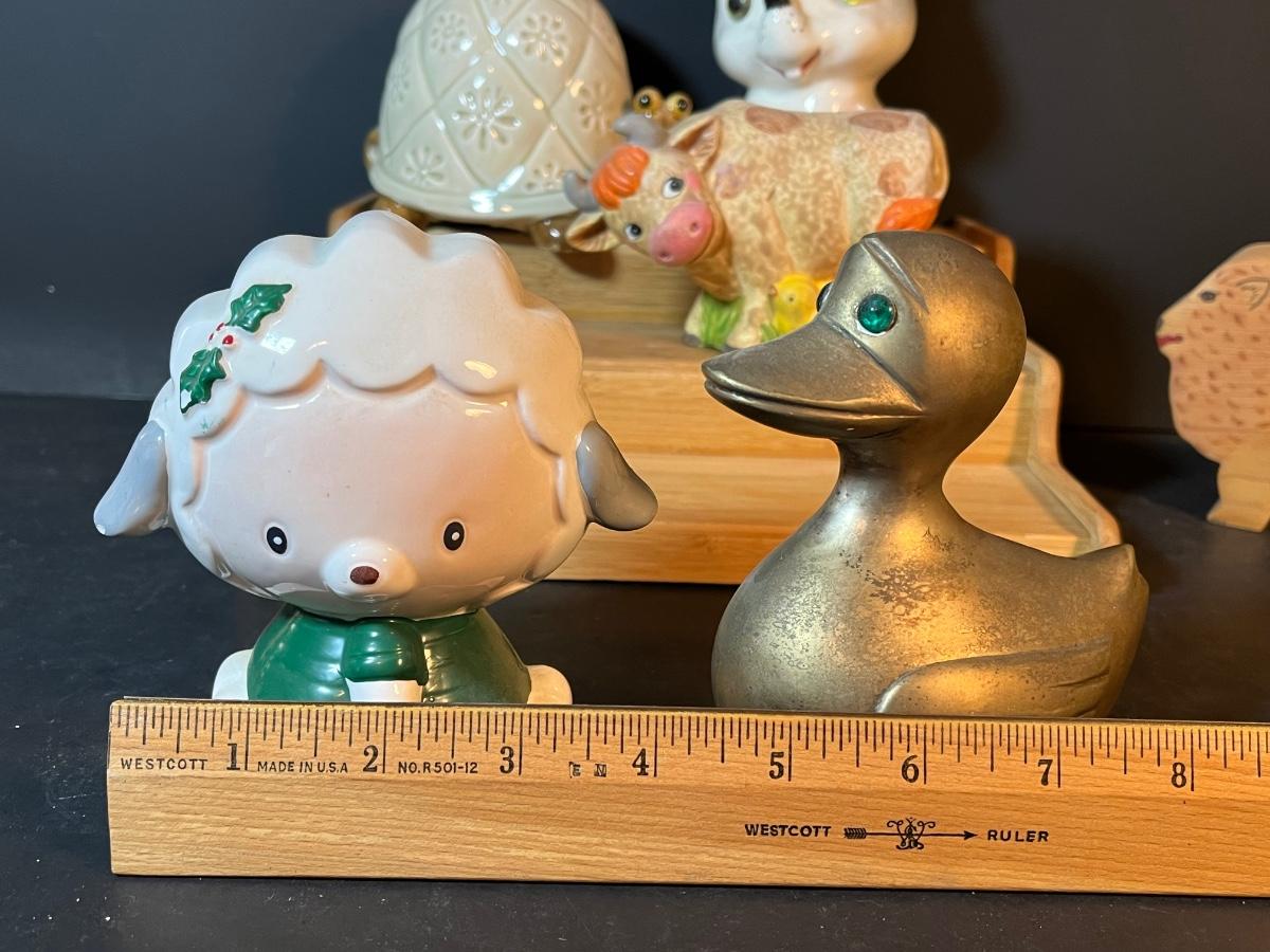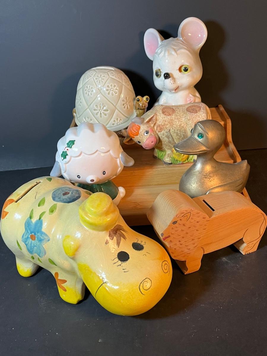 LOT 195S: Animal Themed Coin Banks - Hippo, Turtle, Brass Duck and More