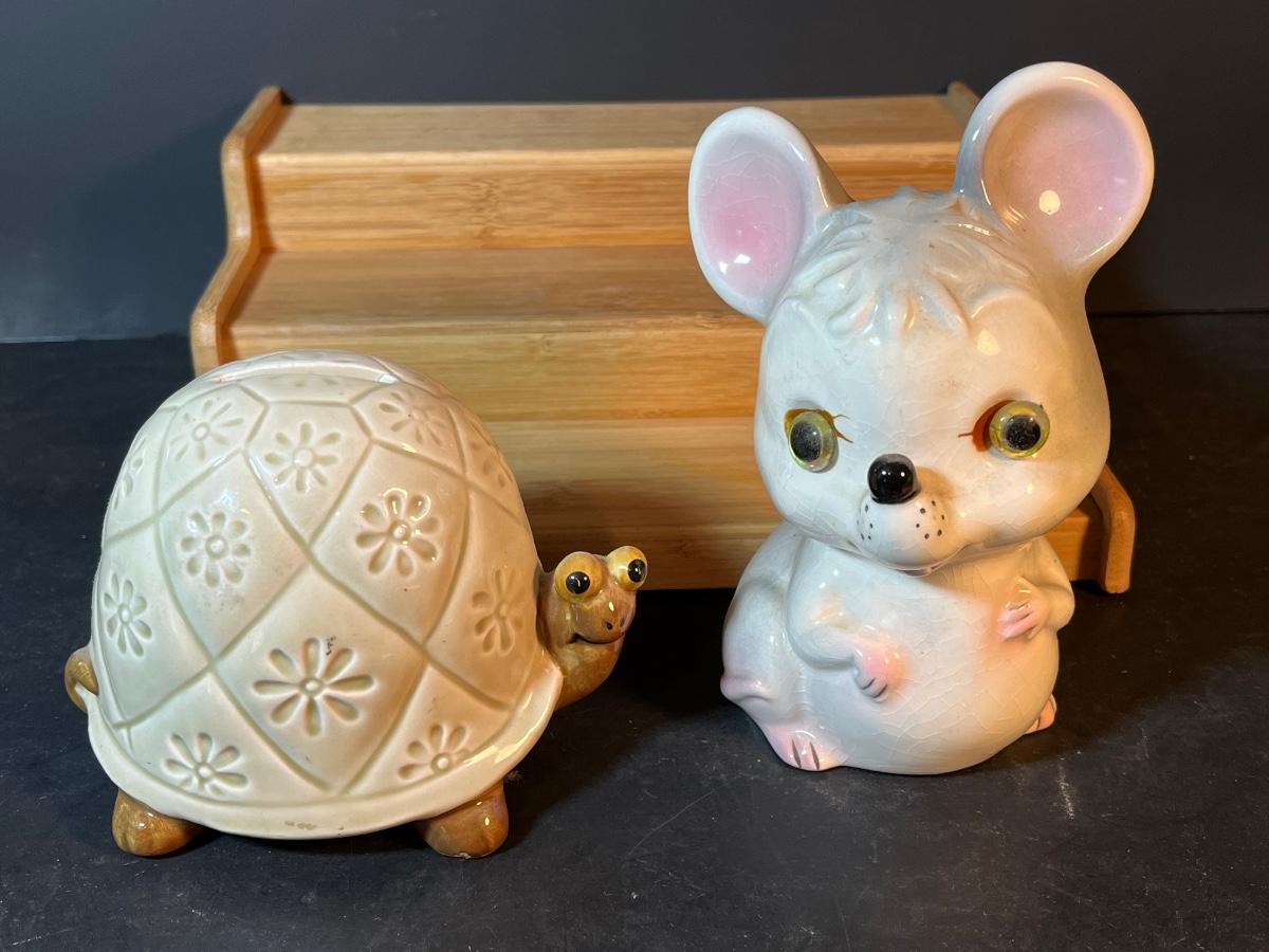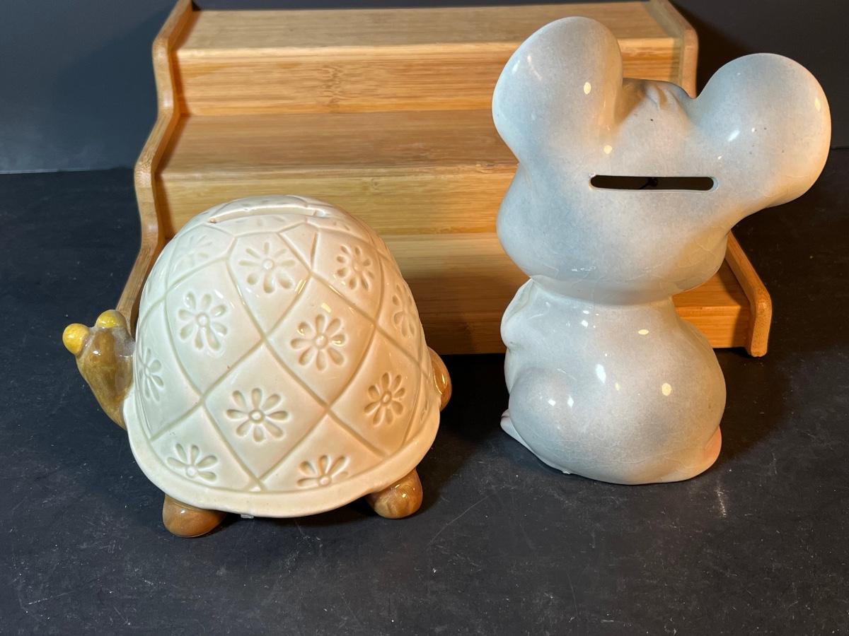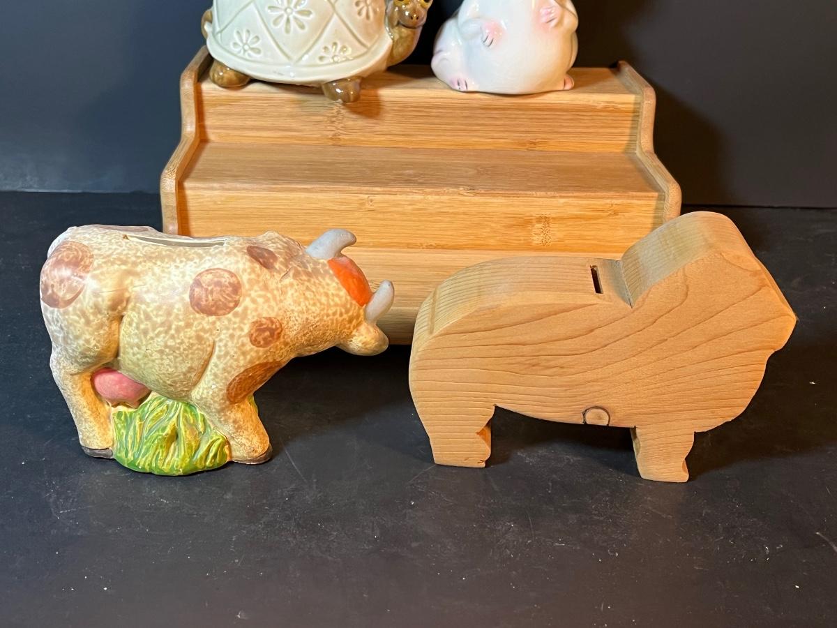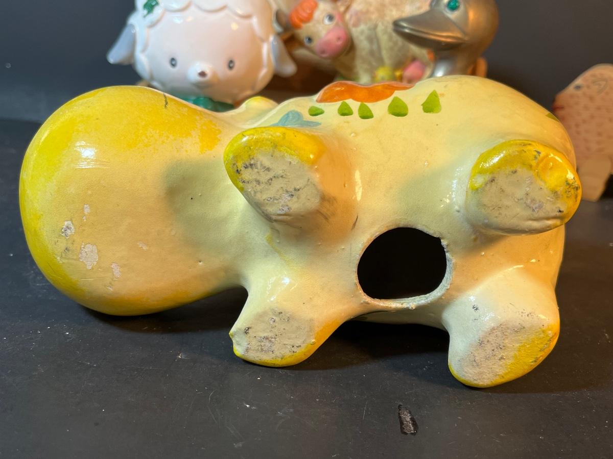 LOT 195S: Animal Themed Coin Banks - Hippo, Turtle, Brass Duck and More