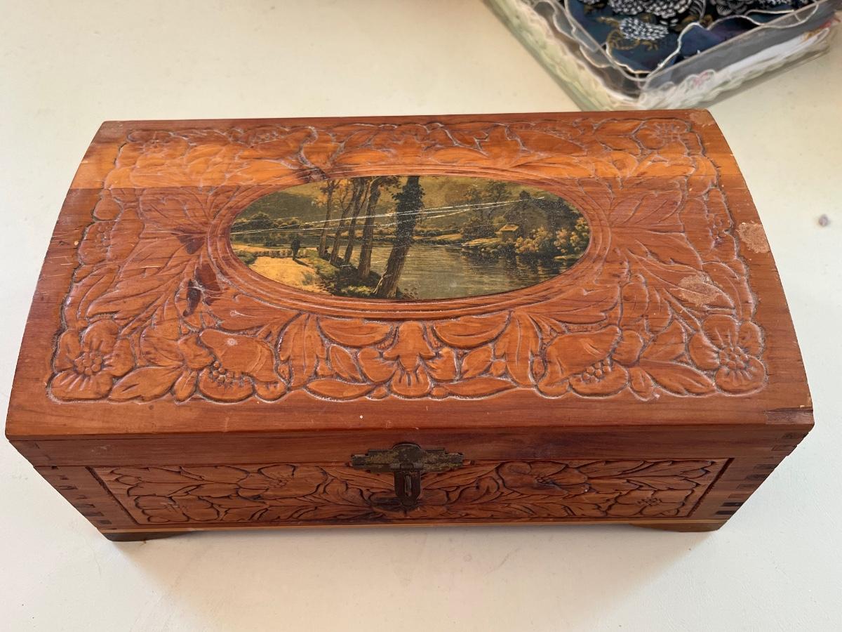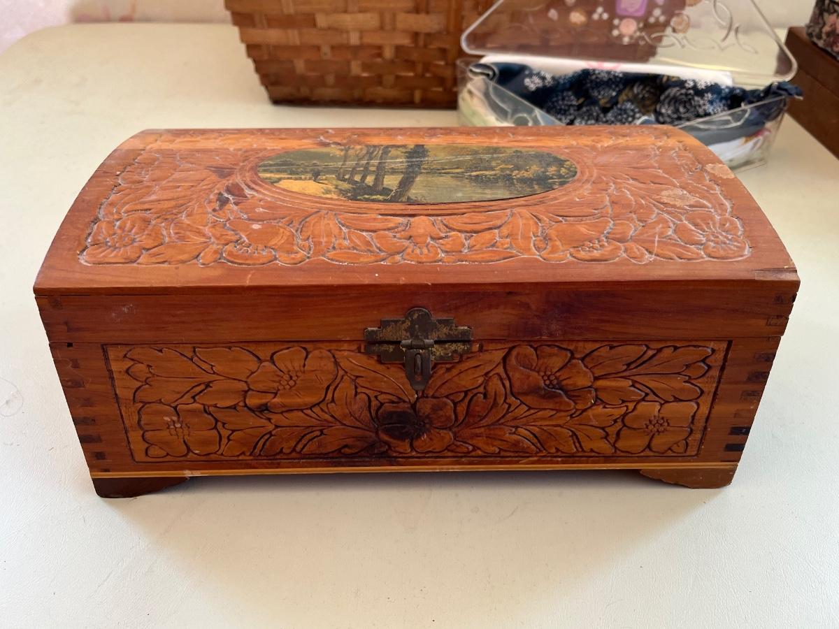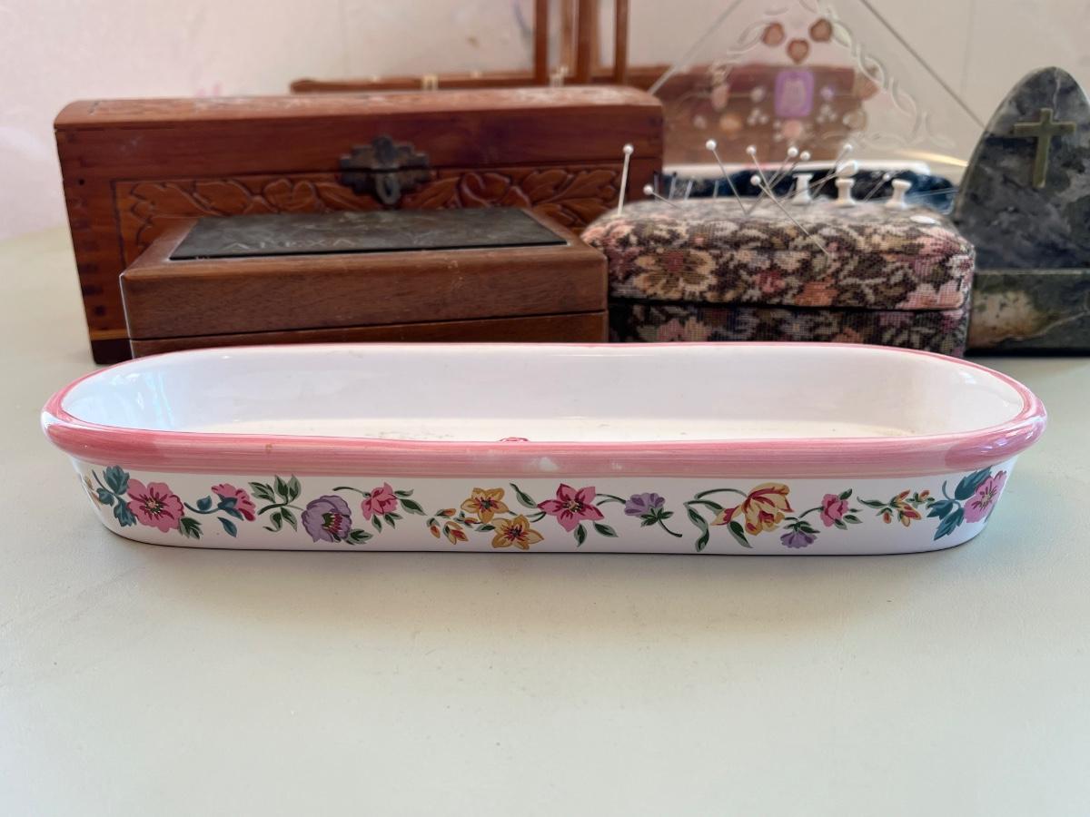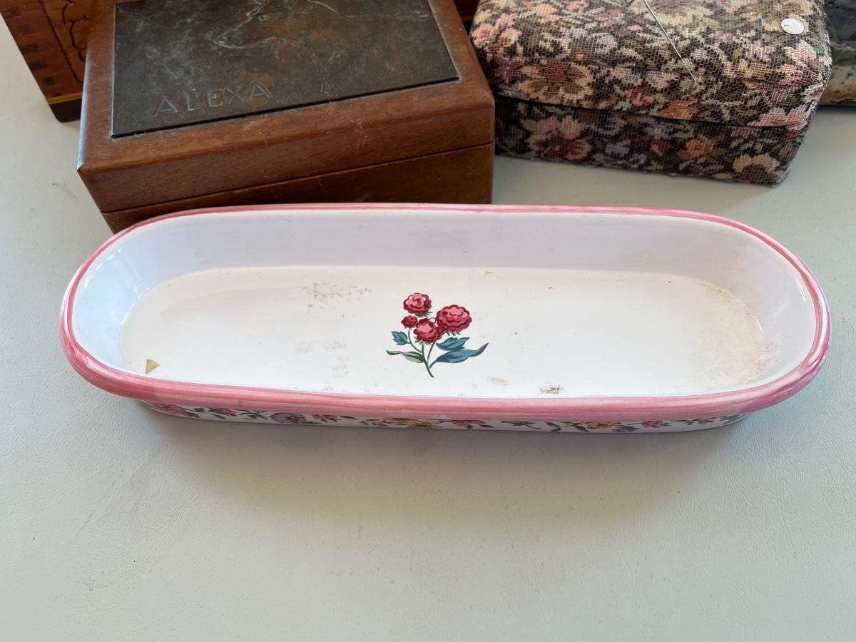 LOT 254C: Fashion Scarves in Box with Trinket Trays, Boxes, Baskets