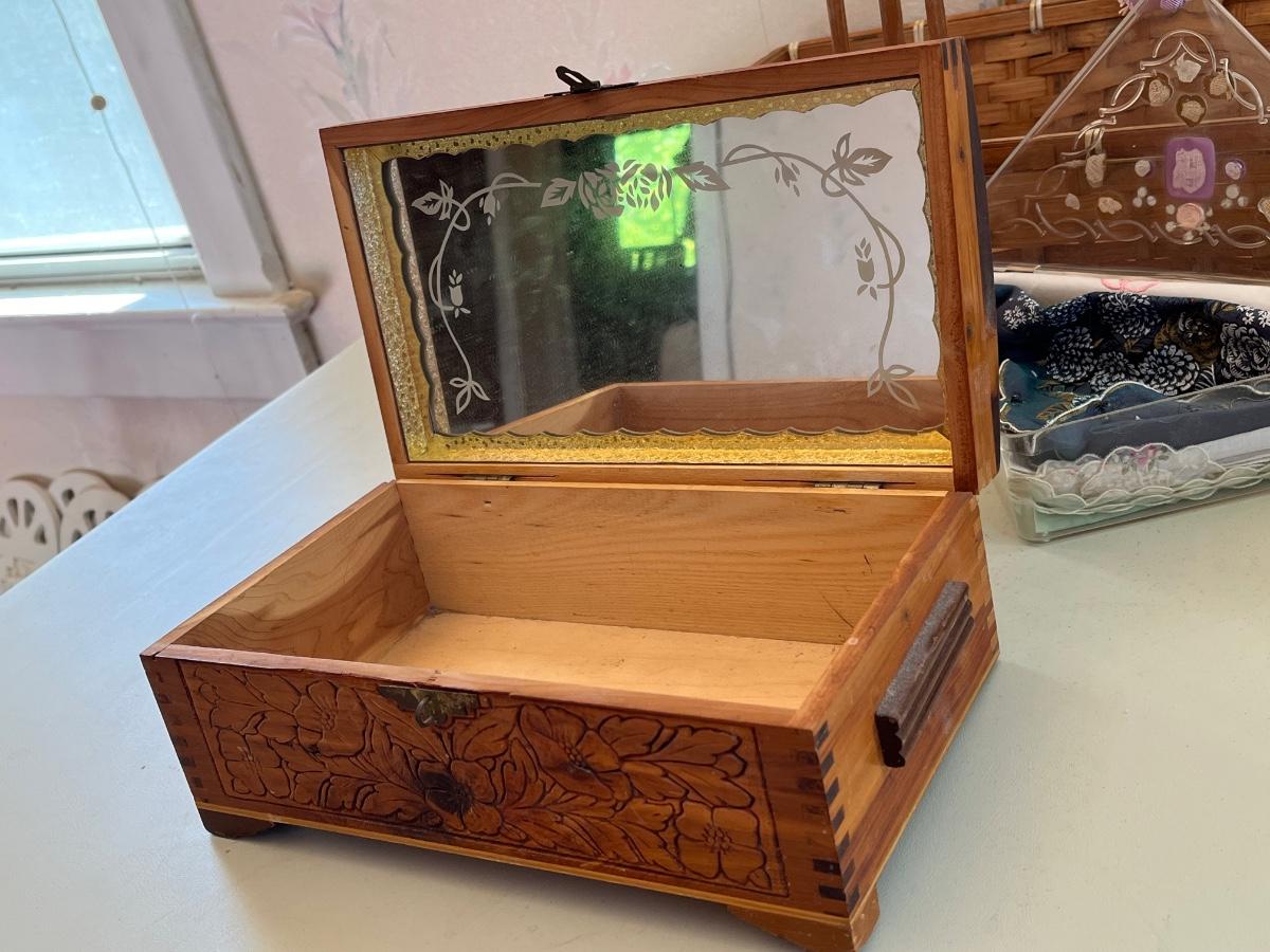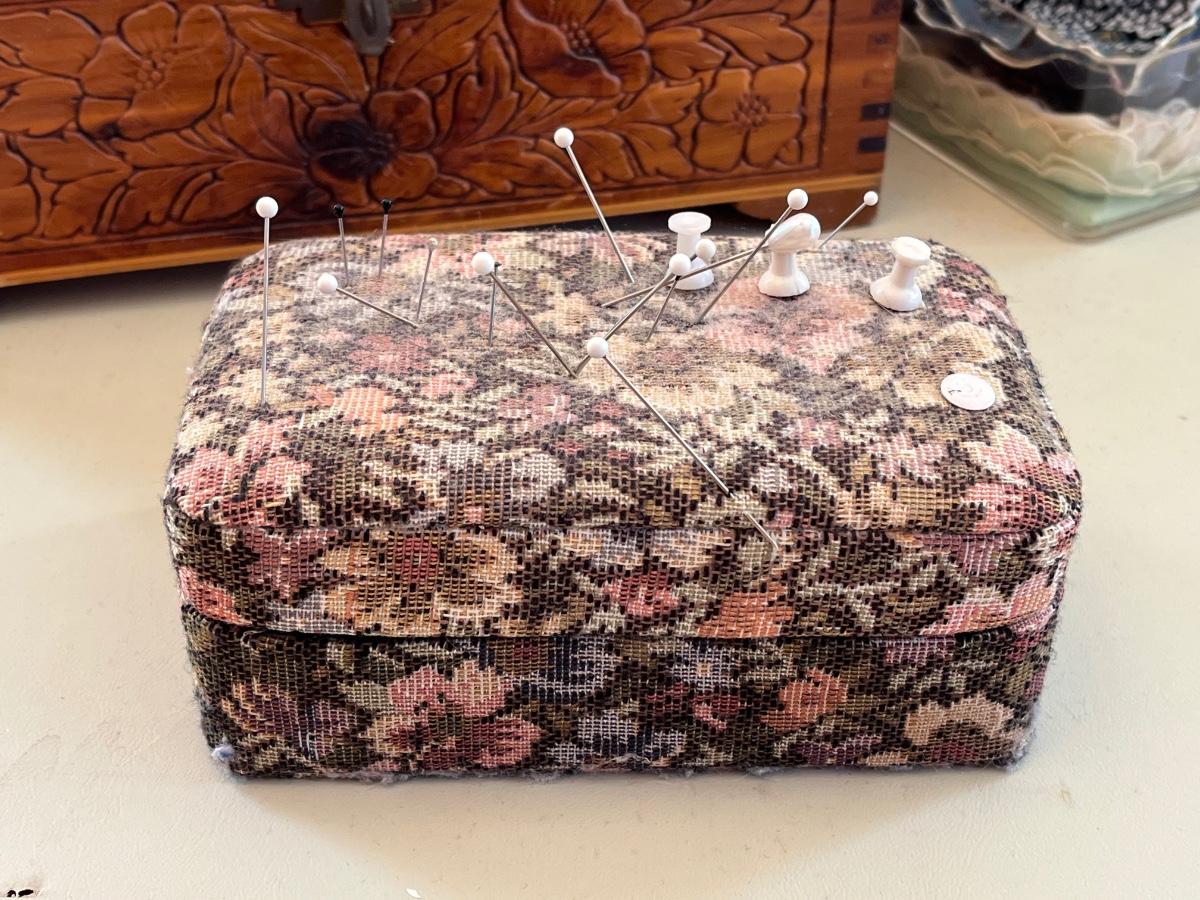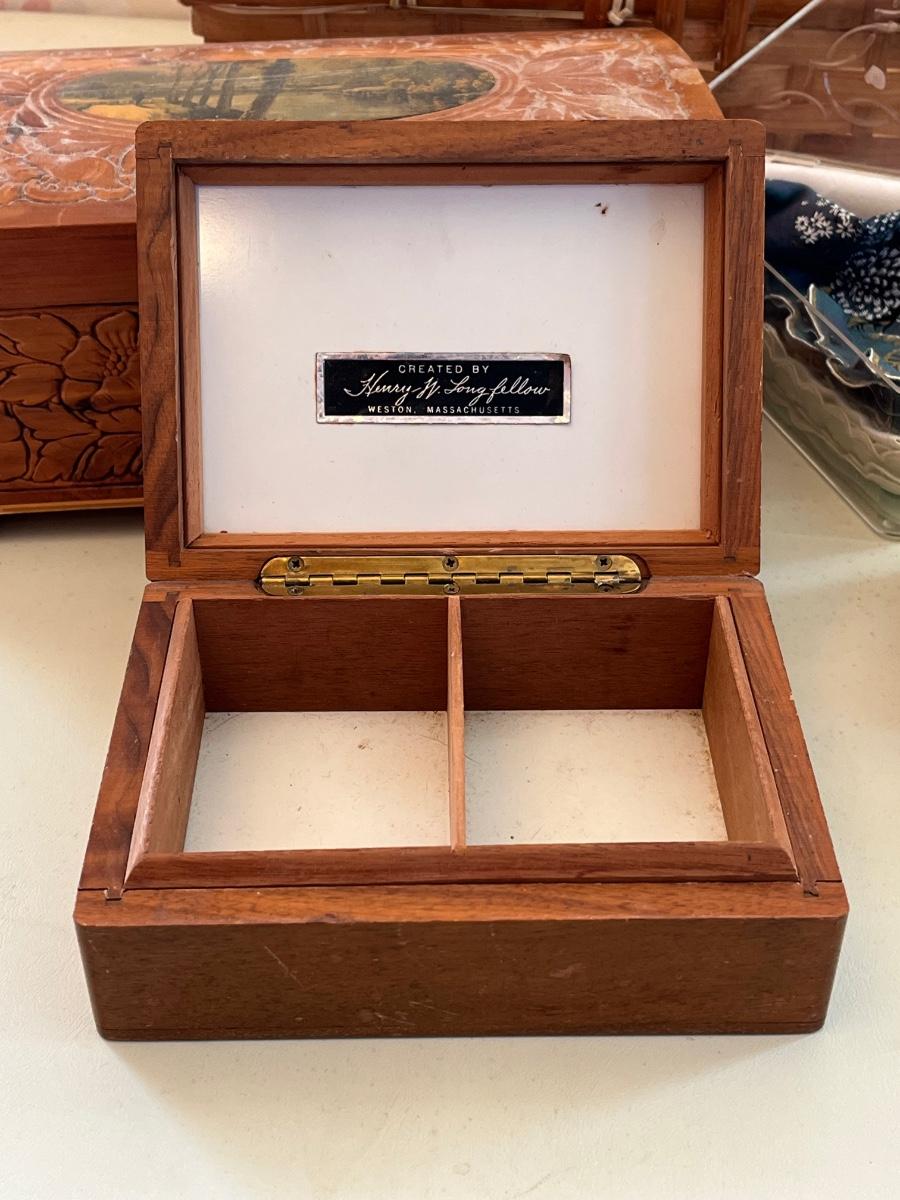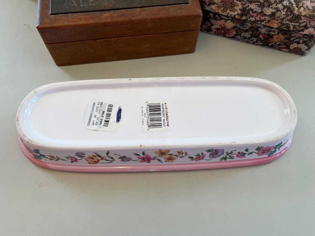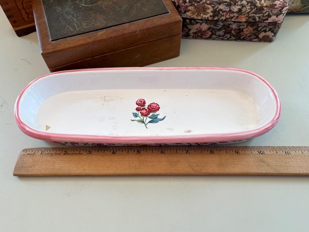 LOT 254C: Fashion Scarves in Box with Trinket Trays, Boxes, Baskets