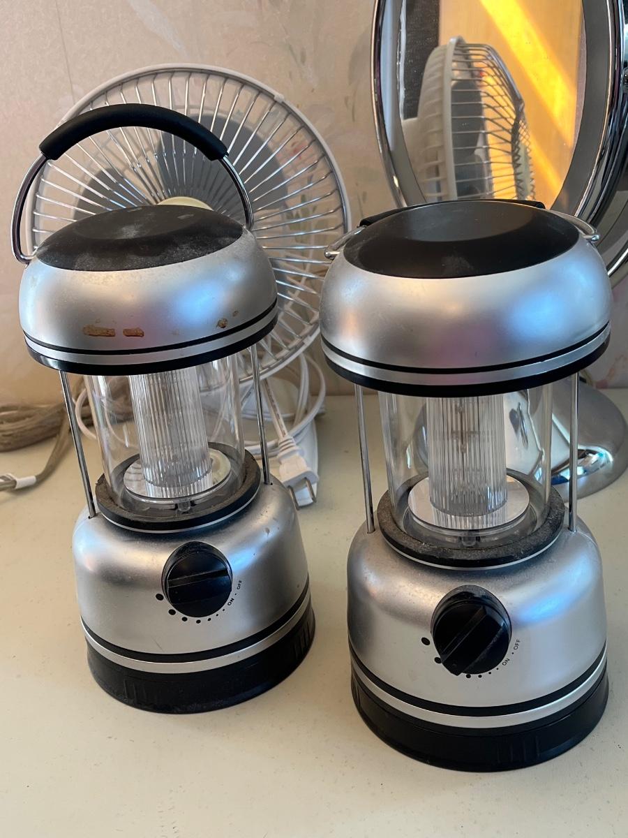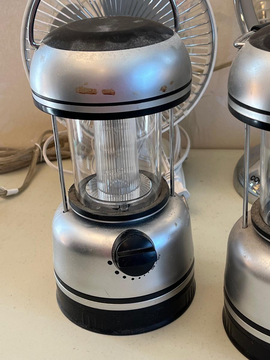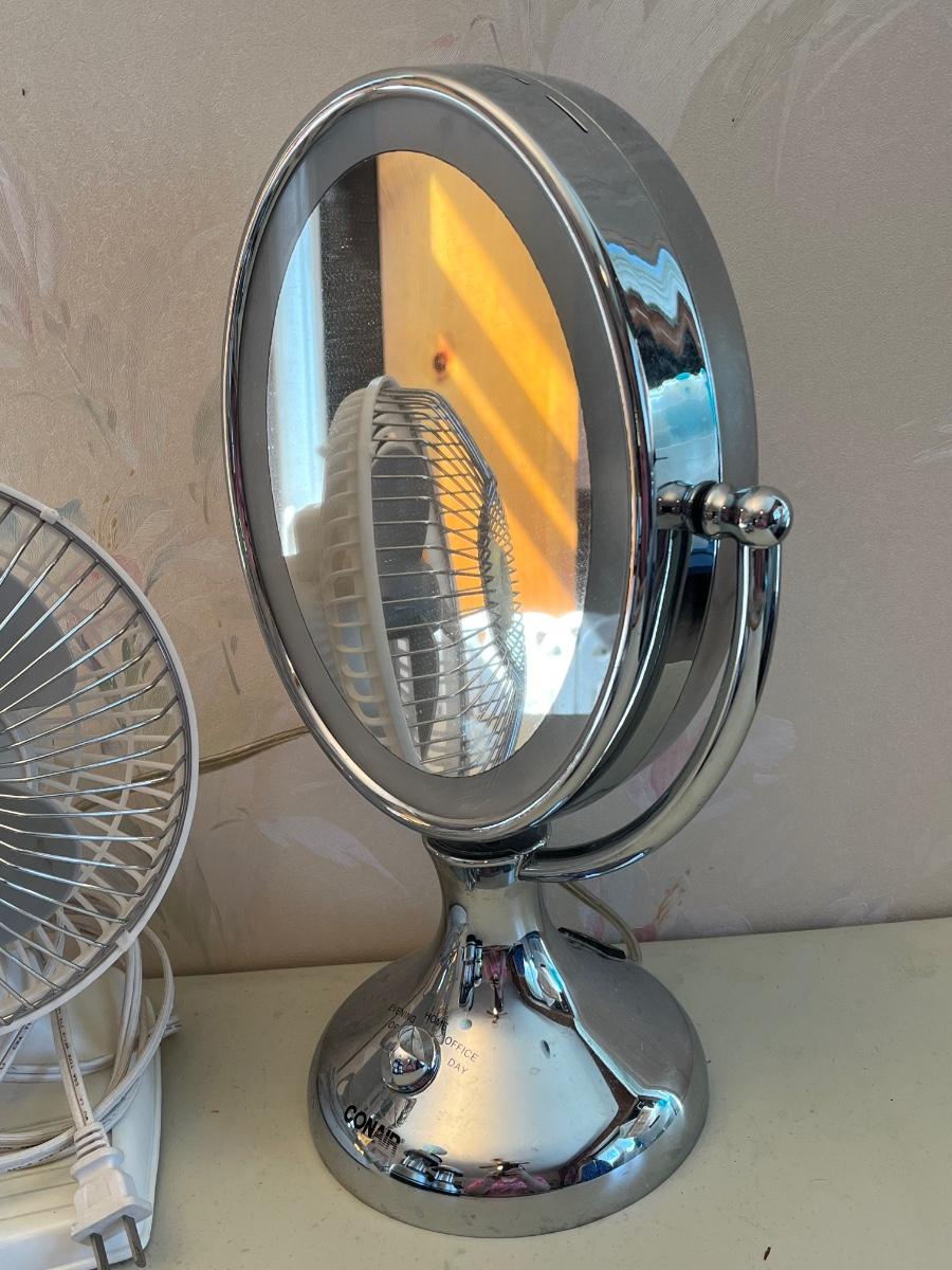 LOT 259C: Small Appliances - Lighted Mirror, Fan, Radio, Lanterns
