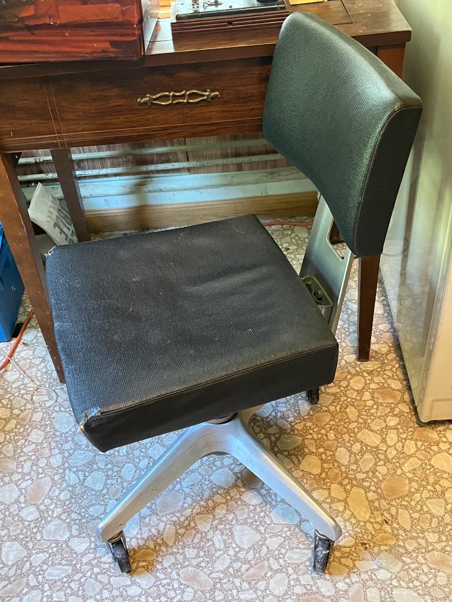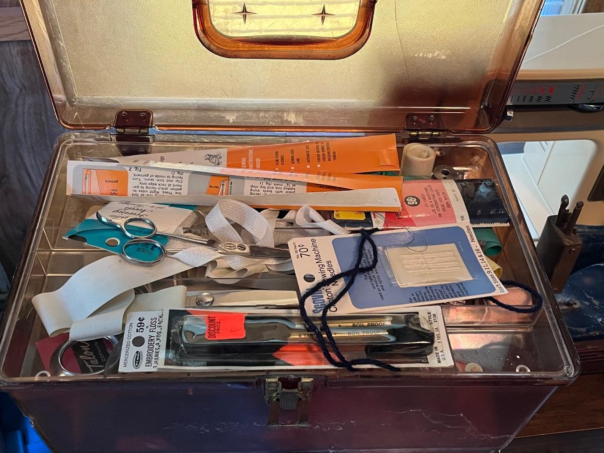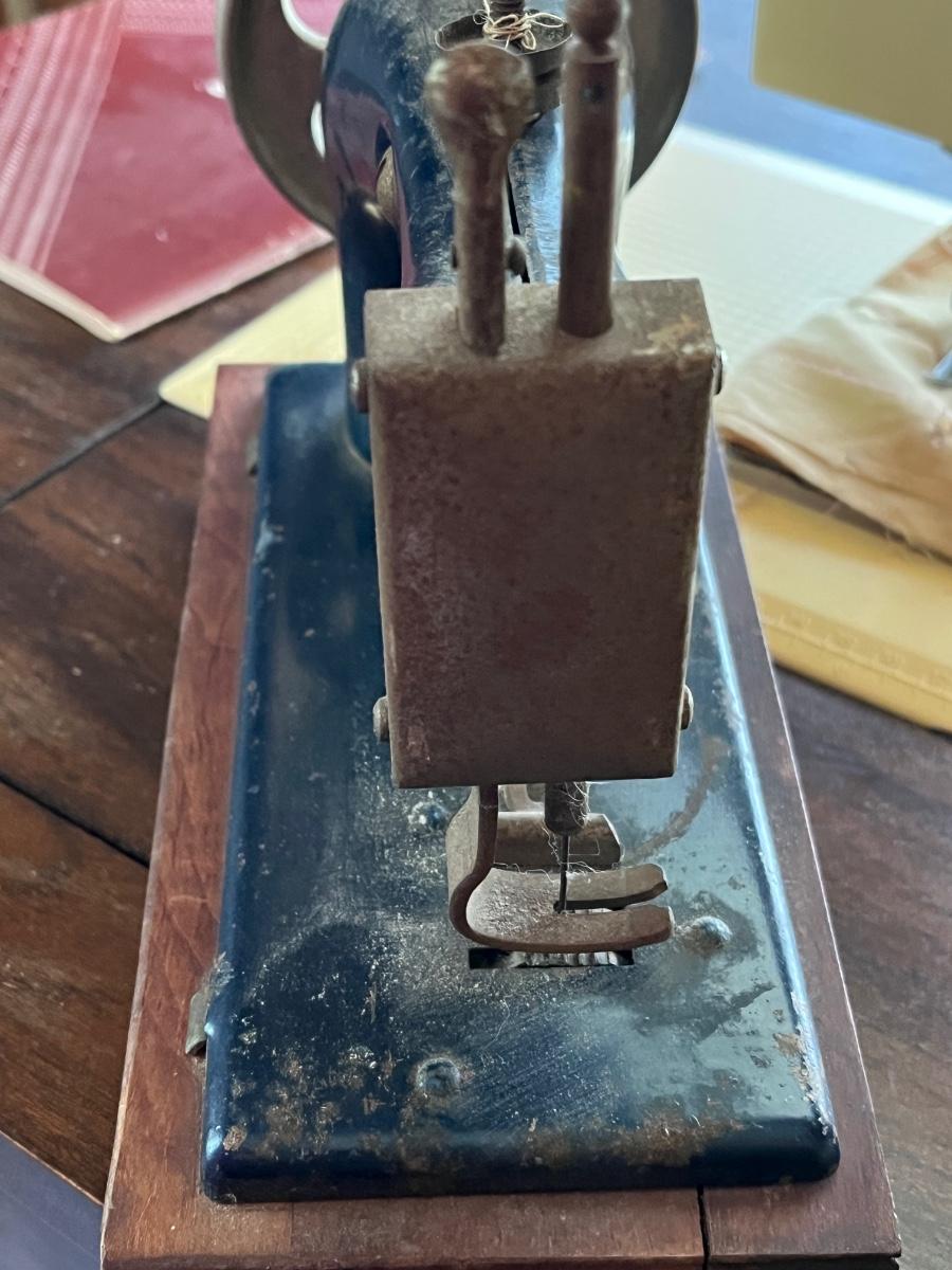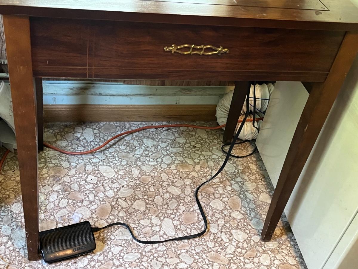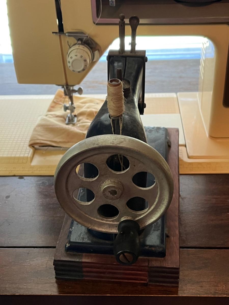 LOT 261S: Singer Sewing Machine on Table with Chair and Vintage Hand Crank Junior Miss Sewing Machine