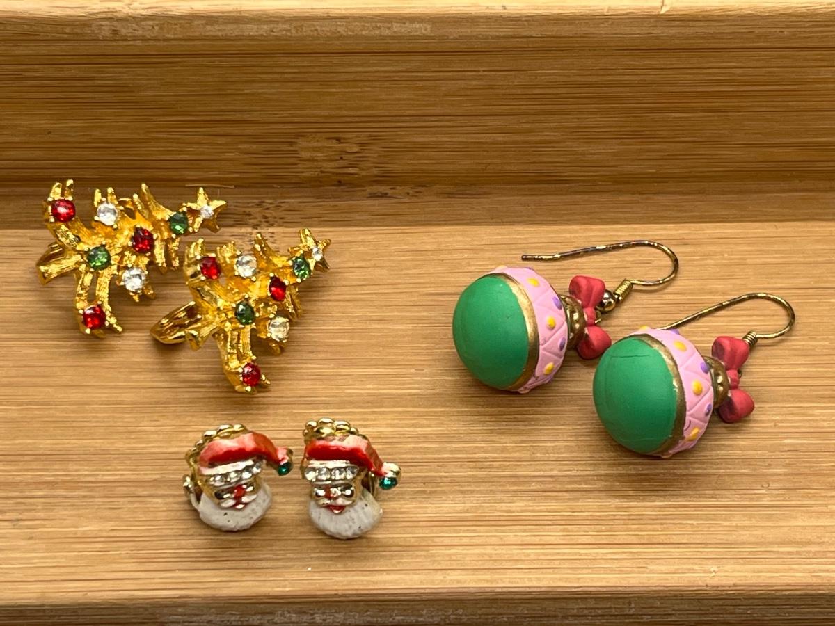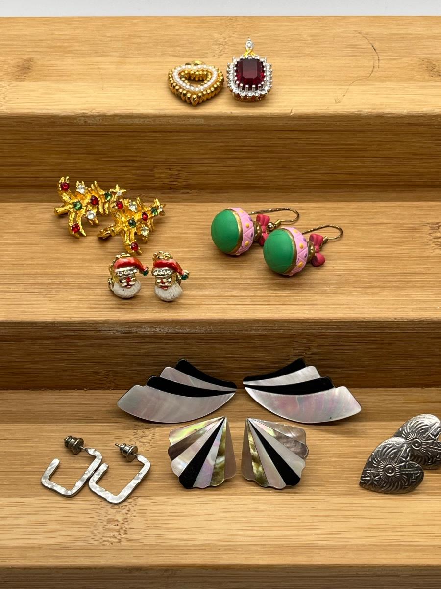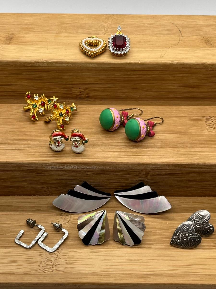 LOT 311J: Costume Jewelry- Silvertone Earrings, Christmas and More
