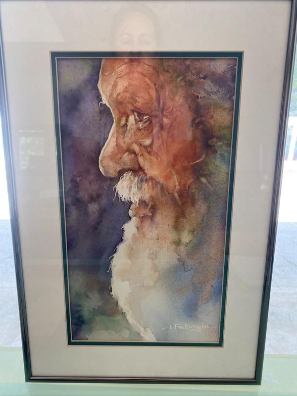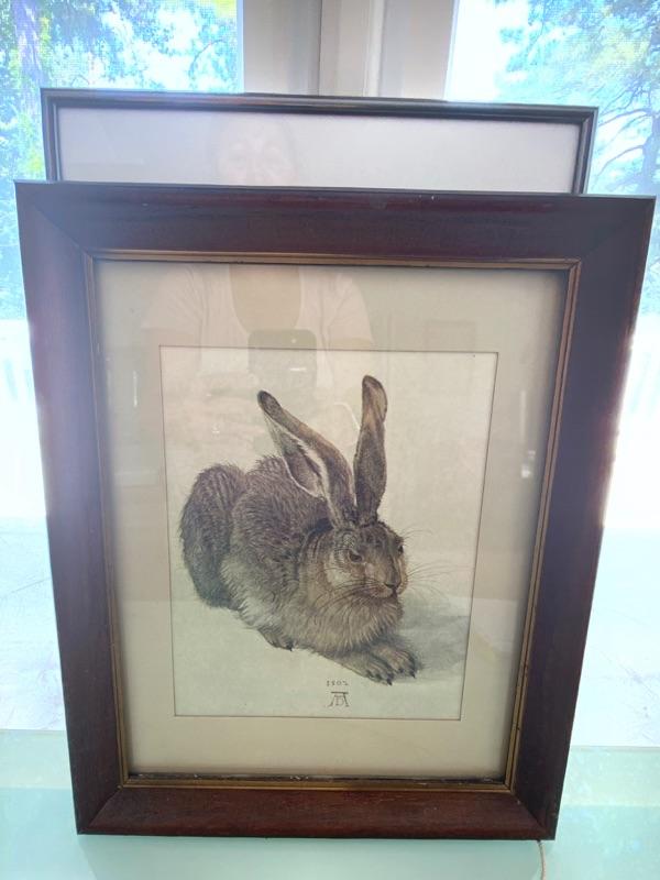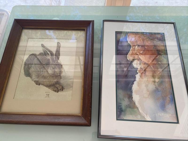 Framed Albrecht Durer Print of Rabbit and J. Frettingis Framed watercolor of man with beard