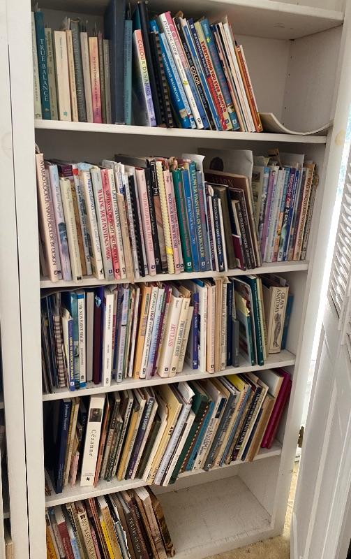 Lot #936 Large White Bi-Fold Door Bookshelf with Books