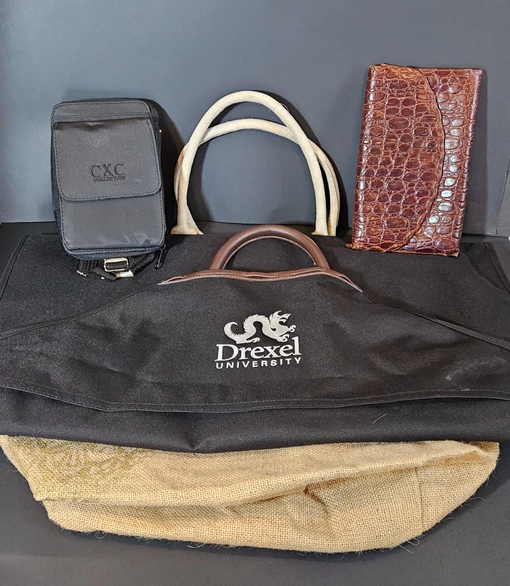 LOT 3: Harolds Italian Leather Clutch, Tote, Travel & Foldable Bag