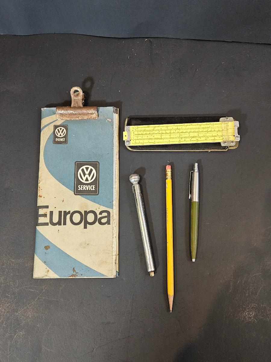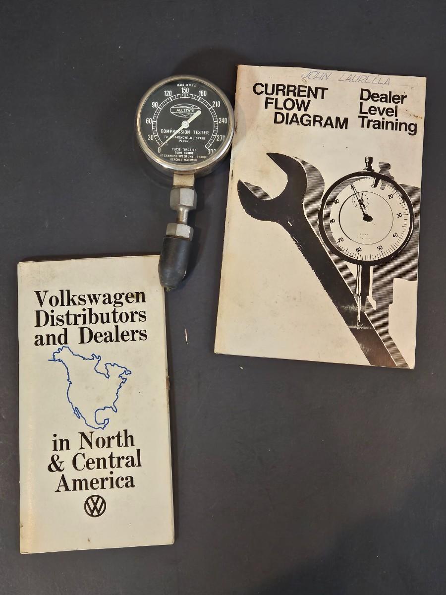 LOT 11: Volkswagen Books, Engine Compression Tester, Picket Slide Rule & More