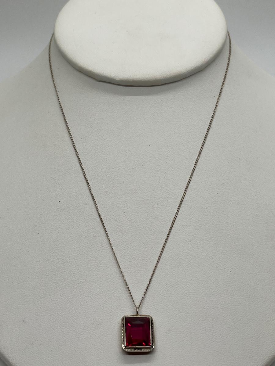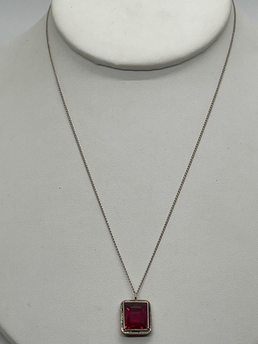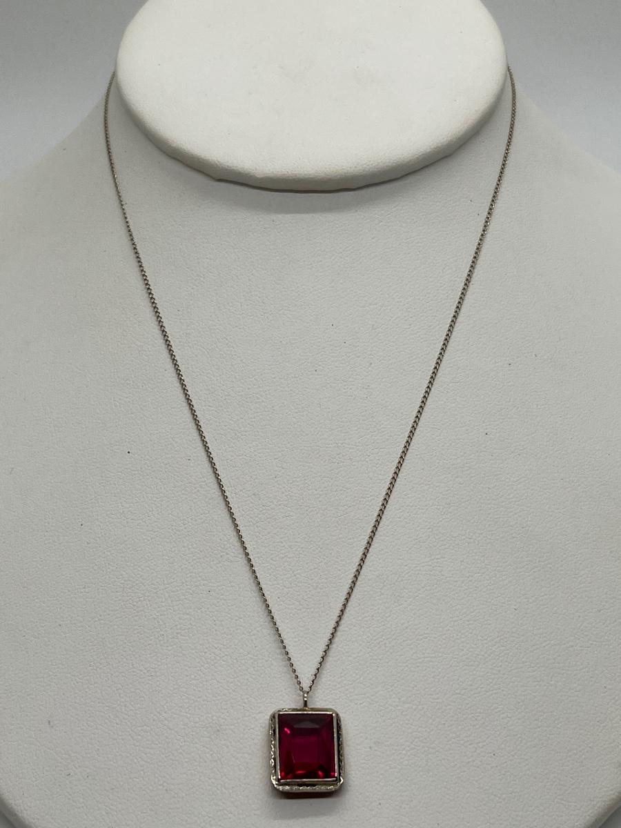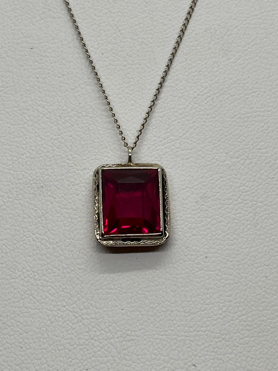 LOT 18: 10K White Gold Vintage Art Deco Ruby Pendant on 17" 10K Chain - 2.9 gtw