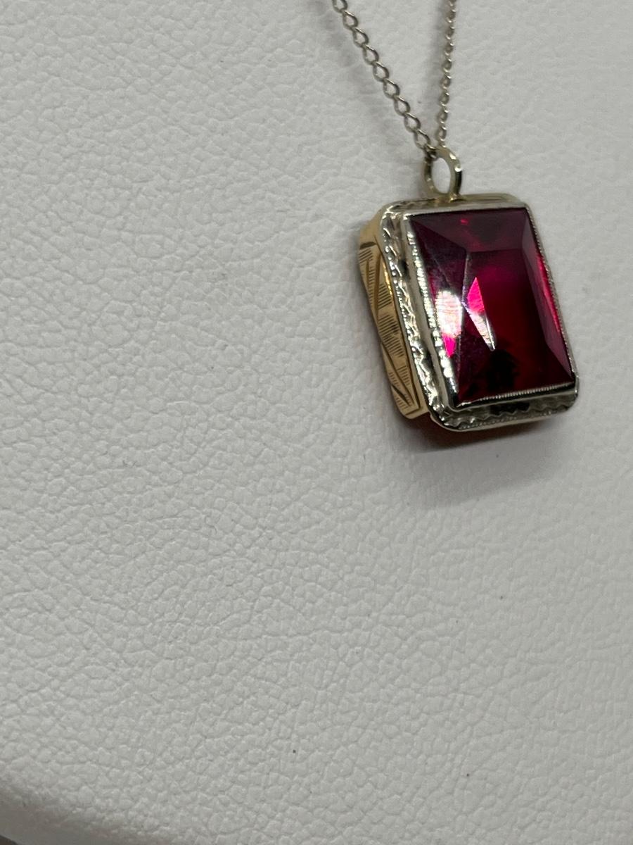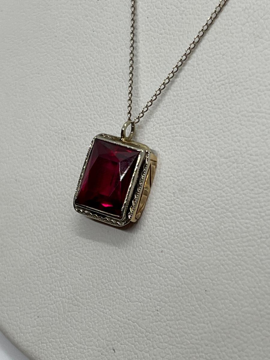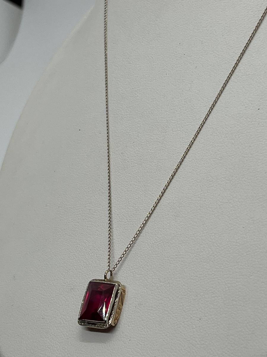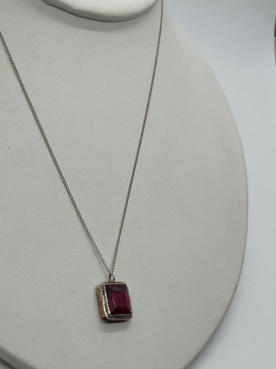 LOT 18: 10K White Gold Vintage Art Deco Ruby Pendant on 17" 10K Chain - 2.9 gtw