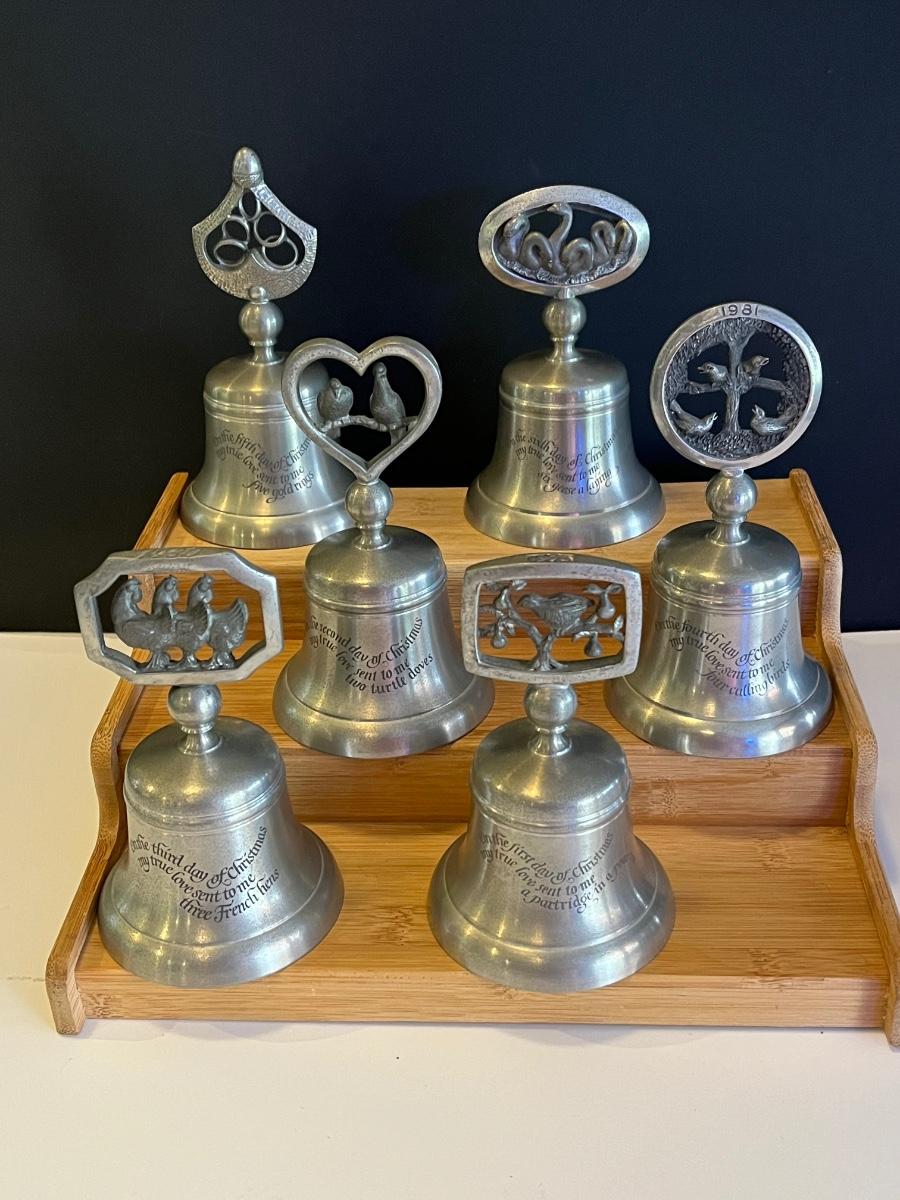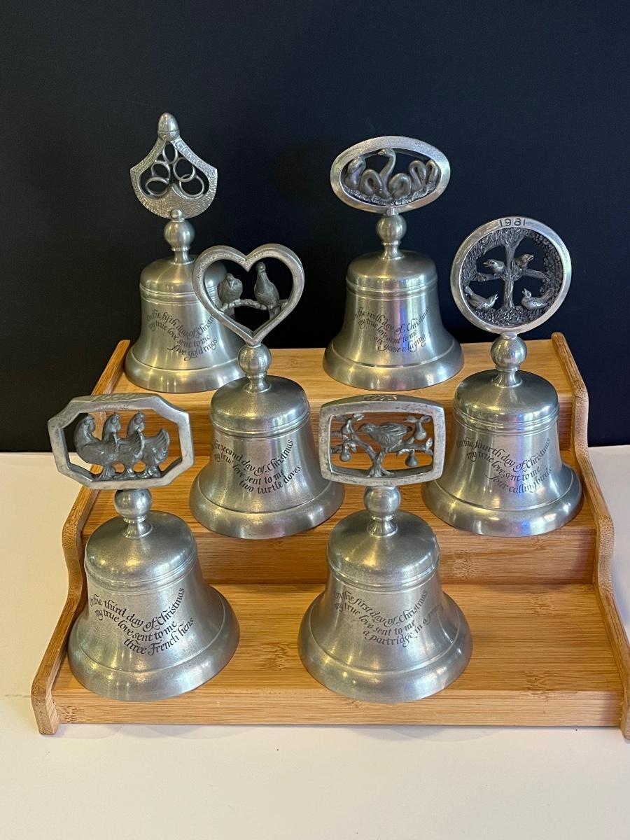 LOT 27: Pewter Crown & Rose 12 Days of Christmas Bells 1-6