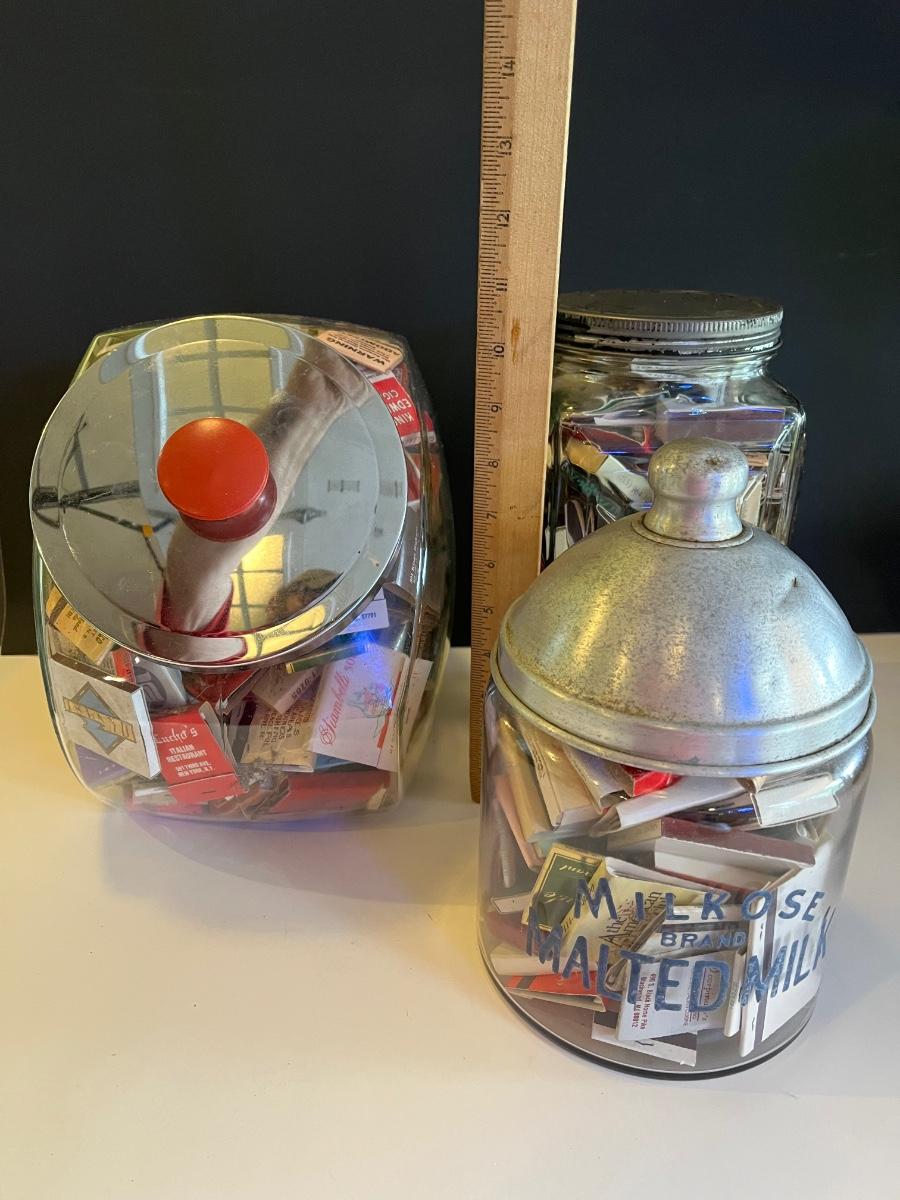 LOT 37: Vintage Matchbook Collection in Three Large Jars