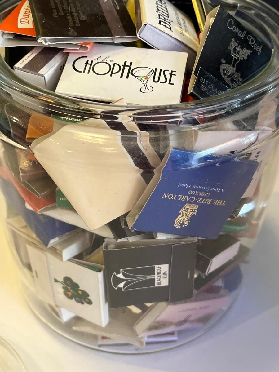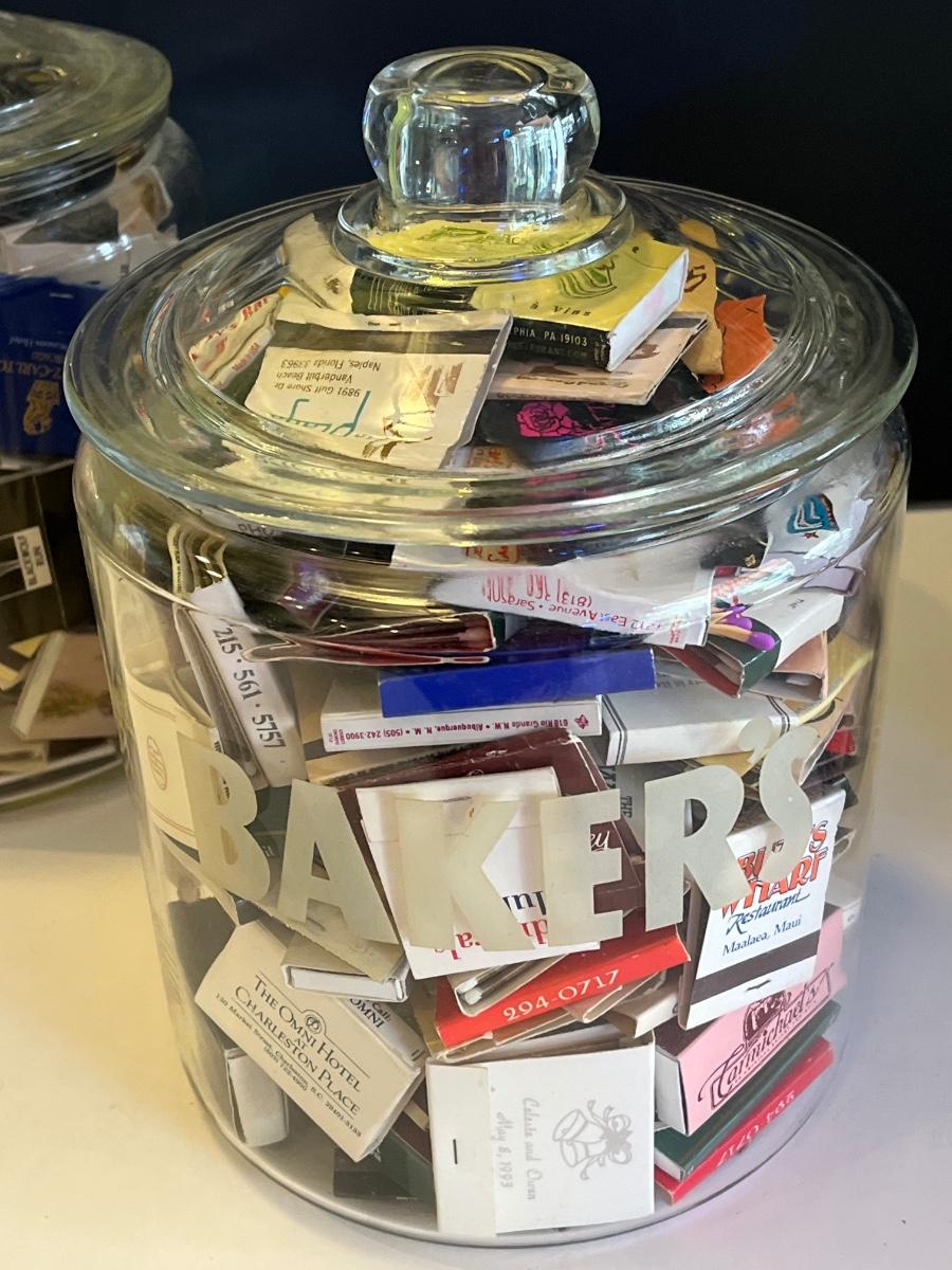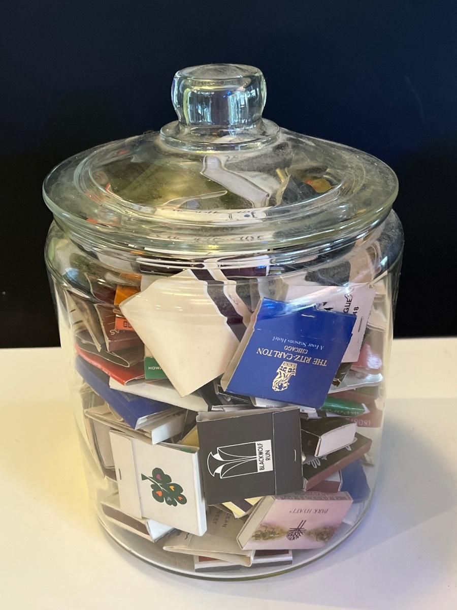 LOT 38: Planter's Peanuts, Baker's Chocolate Jar and More Full of Vintage Matchbooks