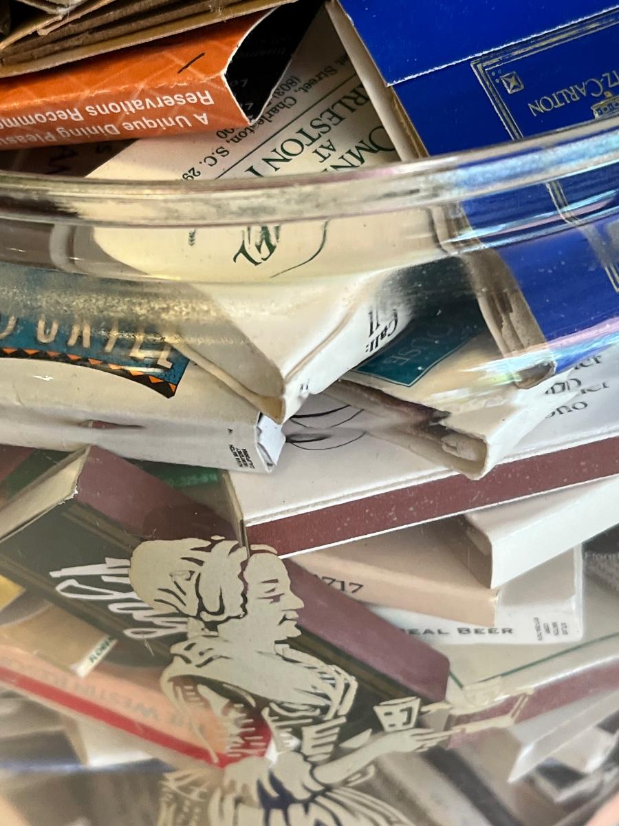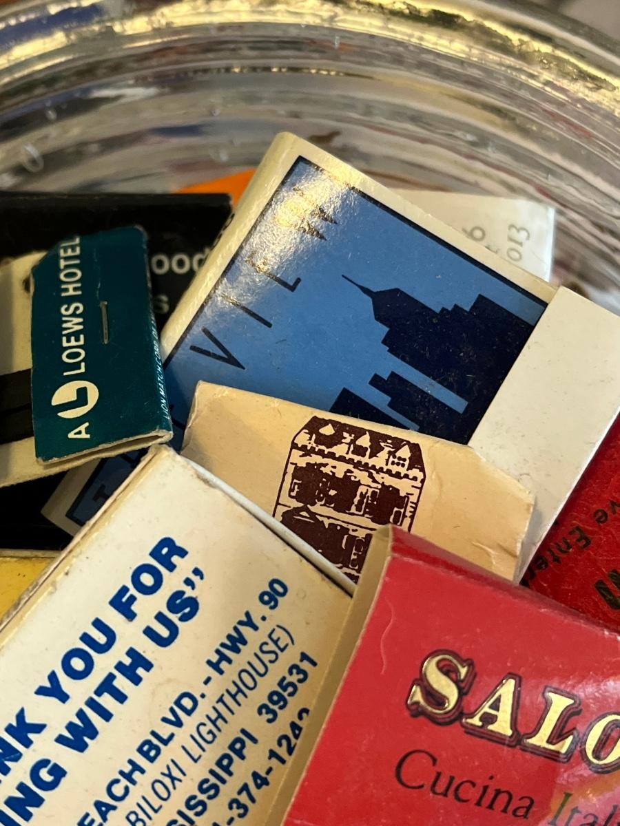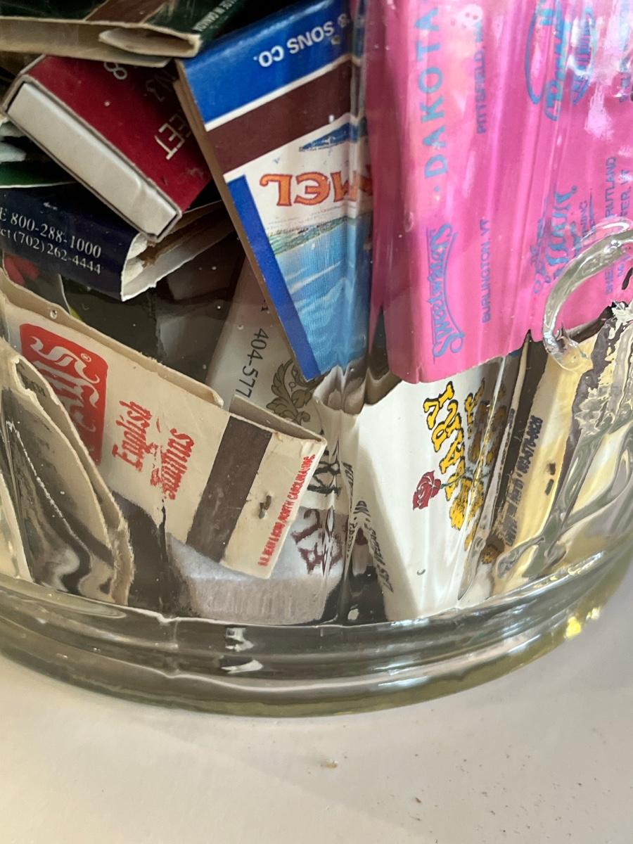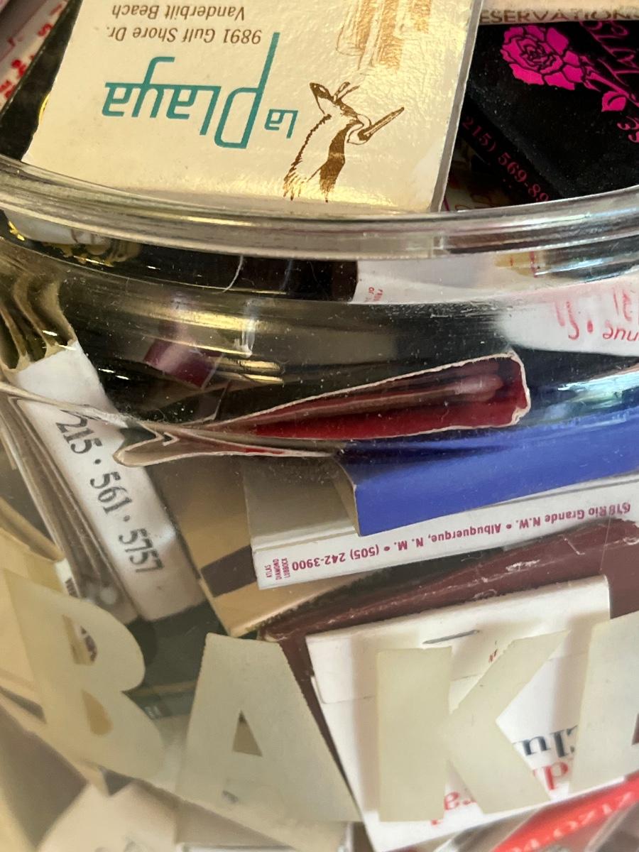 LOT 38: Planter's Peanuts, Baker's Chocolate Jar and More Full of Vintage Matchbooks