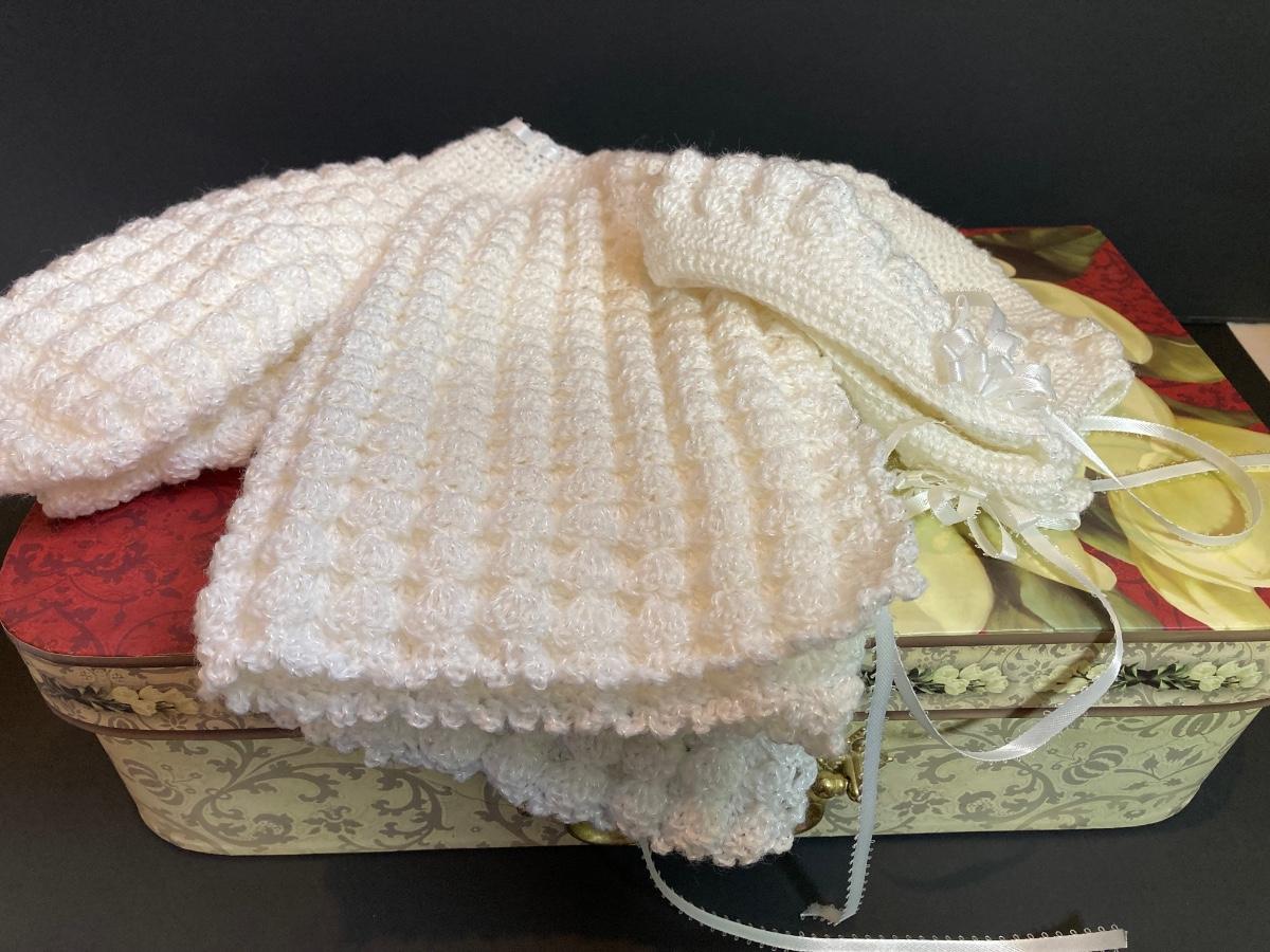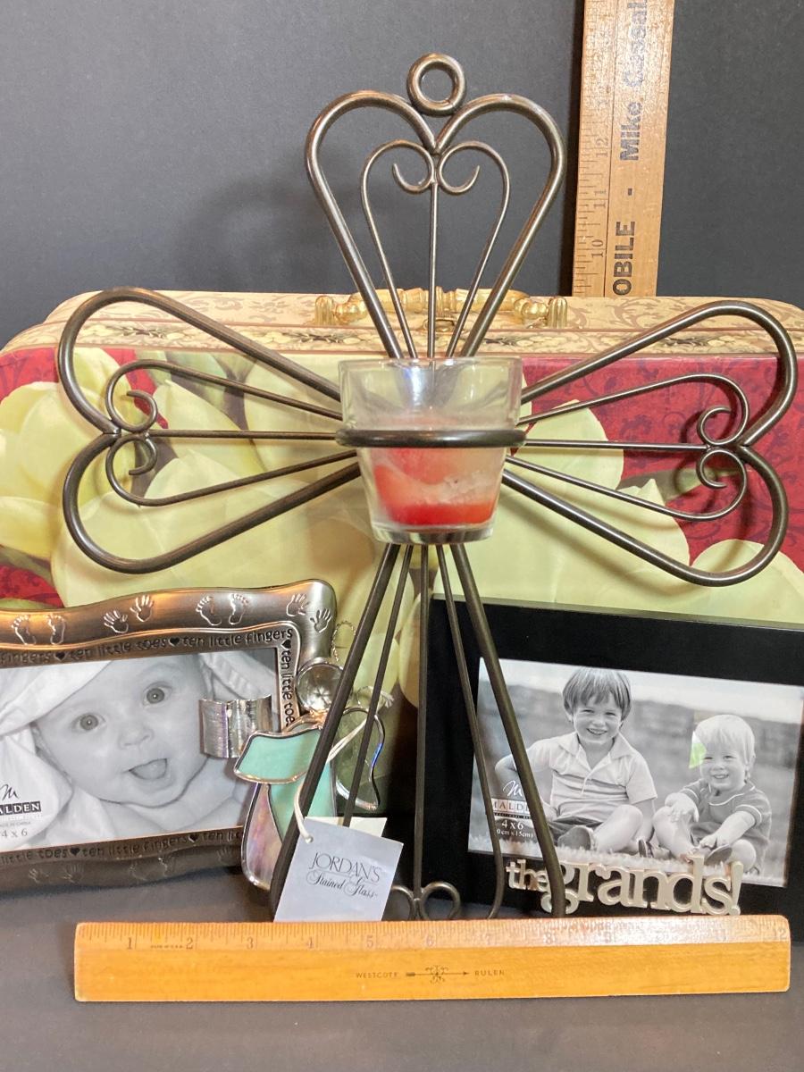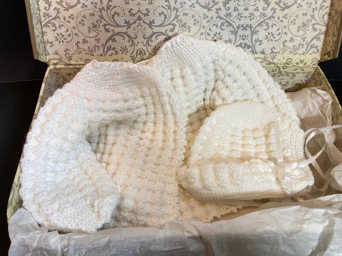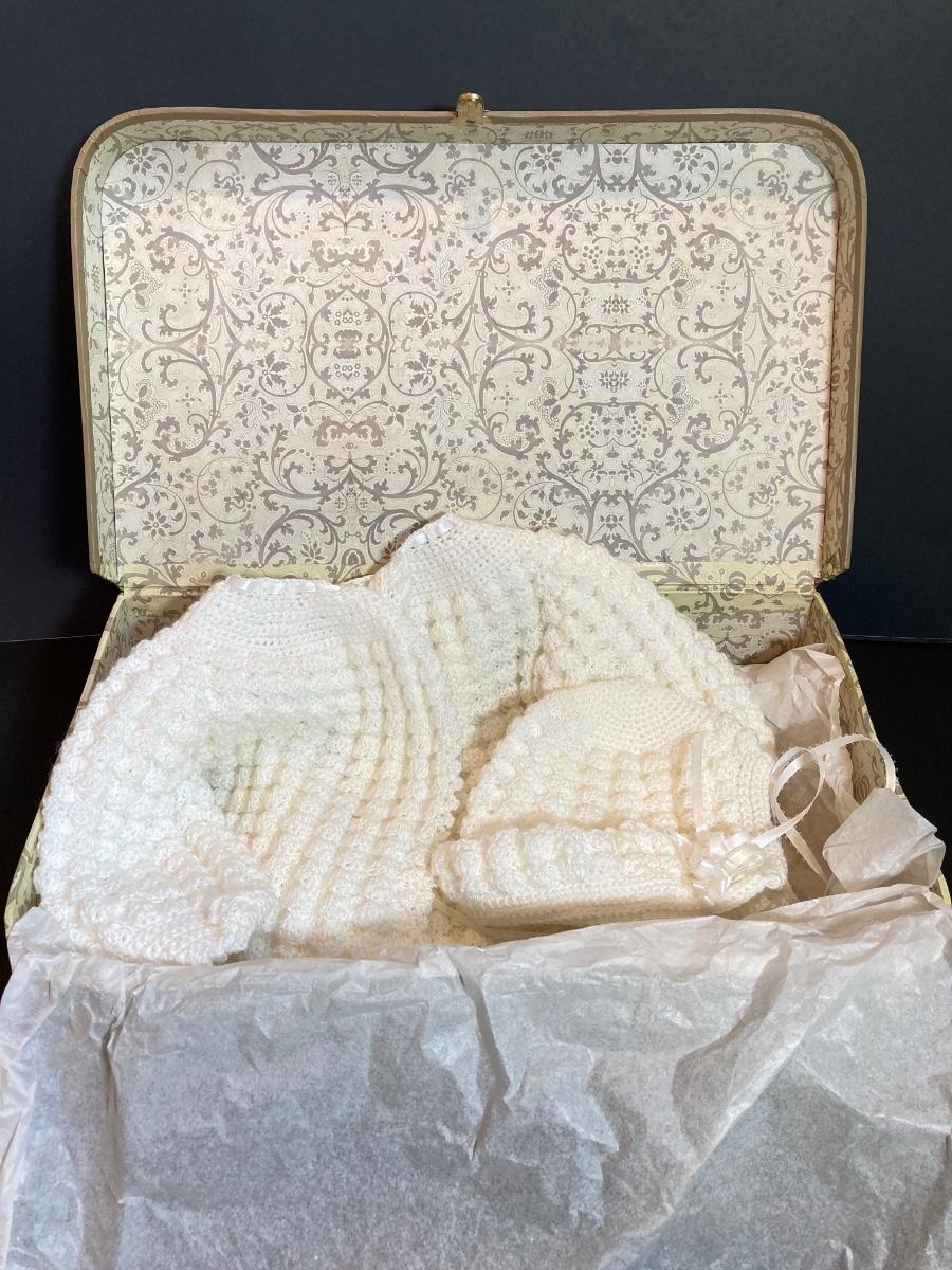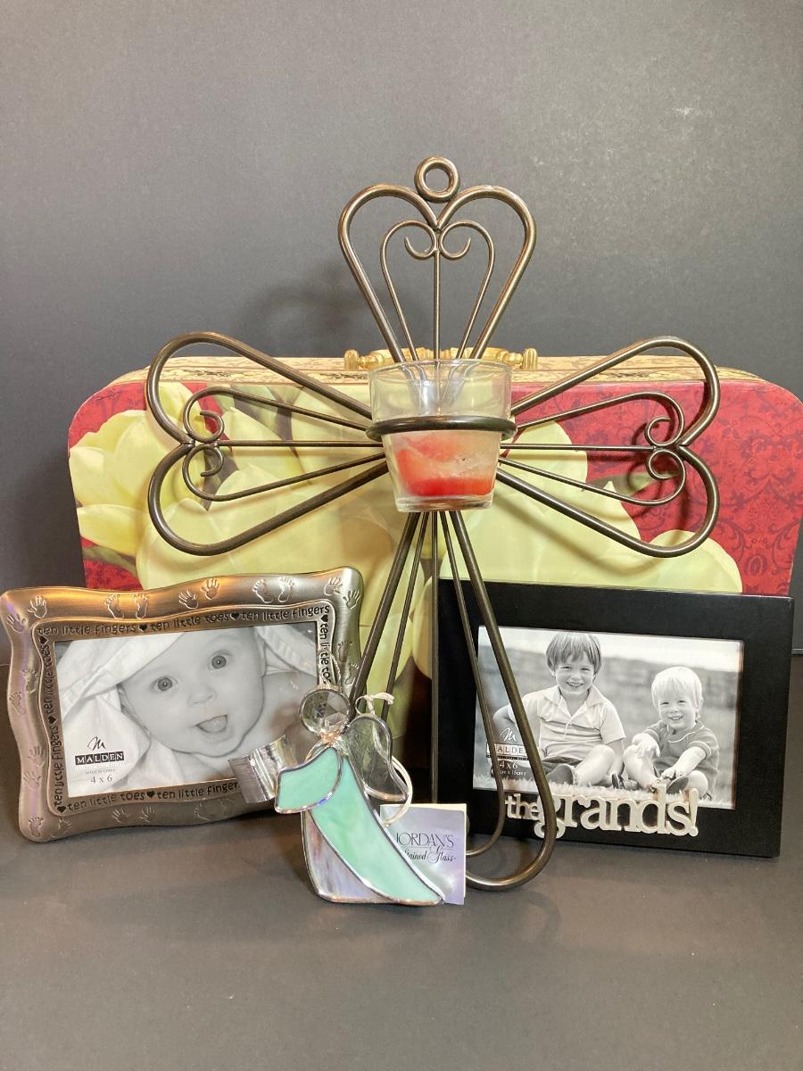 LOT 41: Newborn Crocheted Outfit, Religious Items and Picture Frames