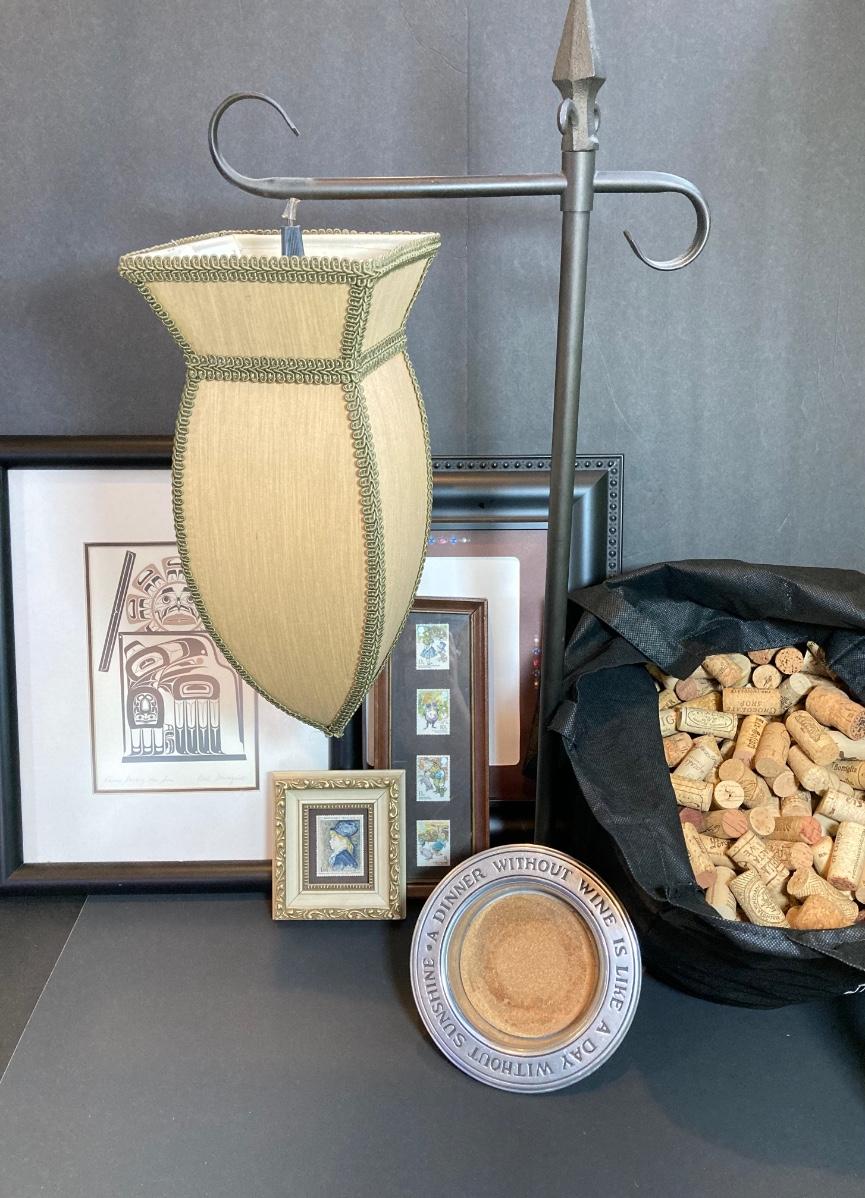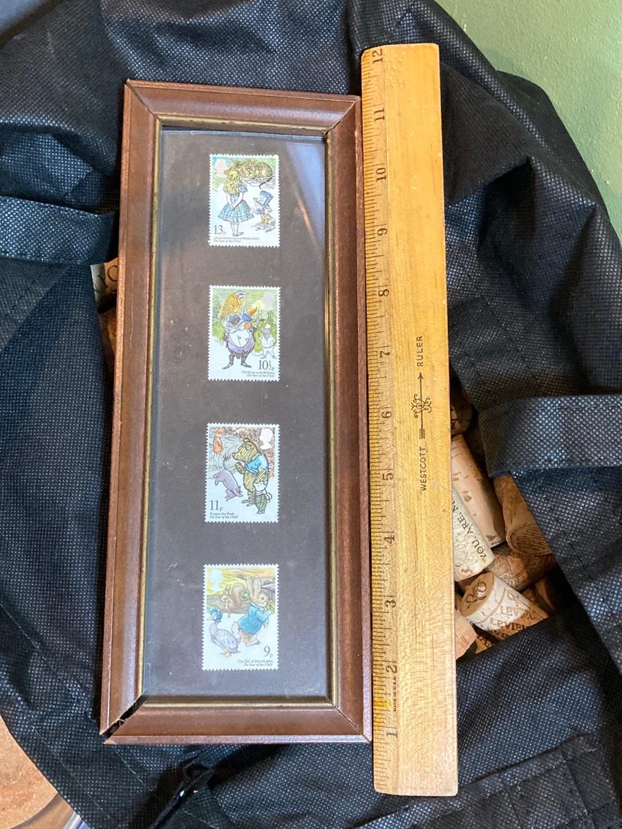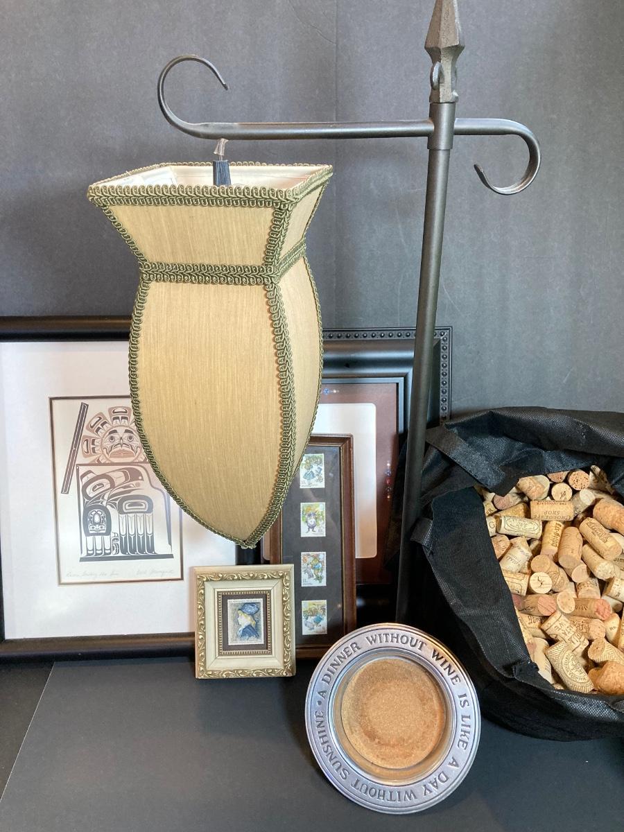 LOT 46: Home Decor Collection - Carl Stromquist Artwork, Framed Stamps, Wine Corks and More