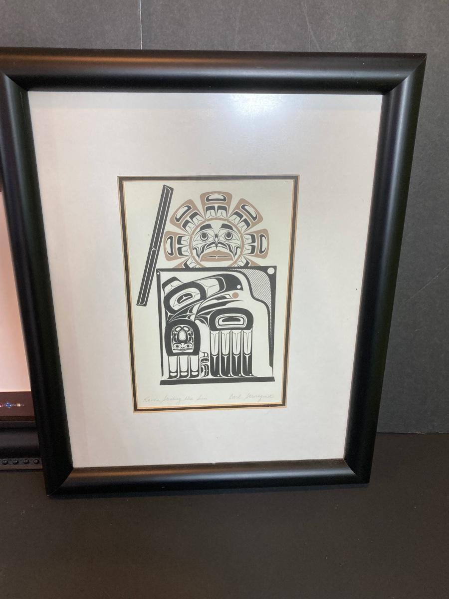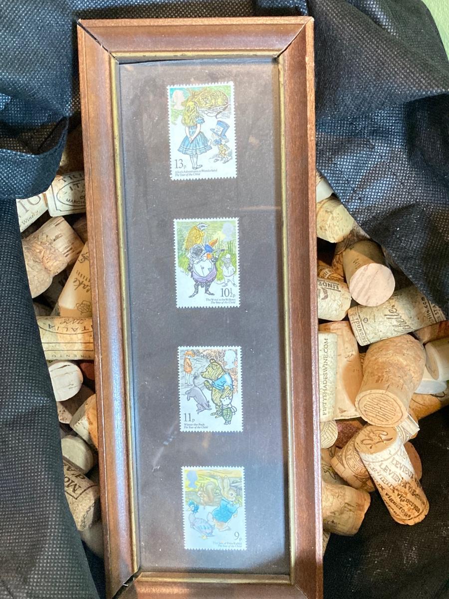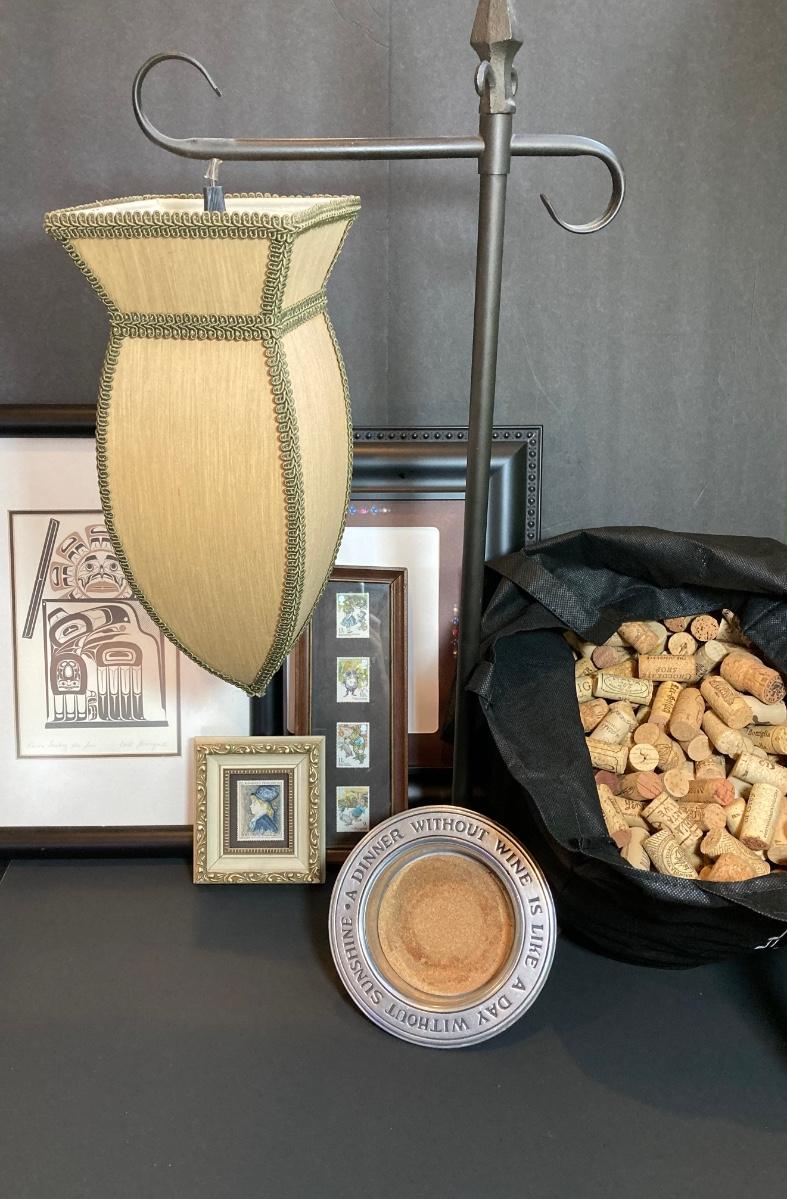 LOT 46: Home Decor Collection - Carl Stromquist Artwork, Framed Stamps, Wine Corks and More