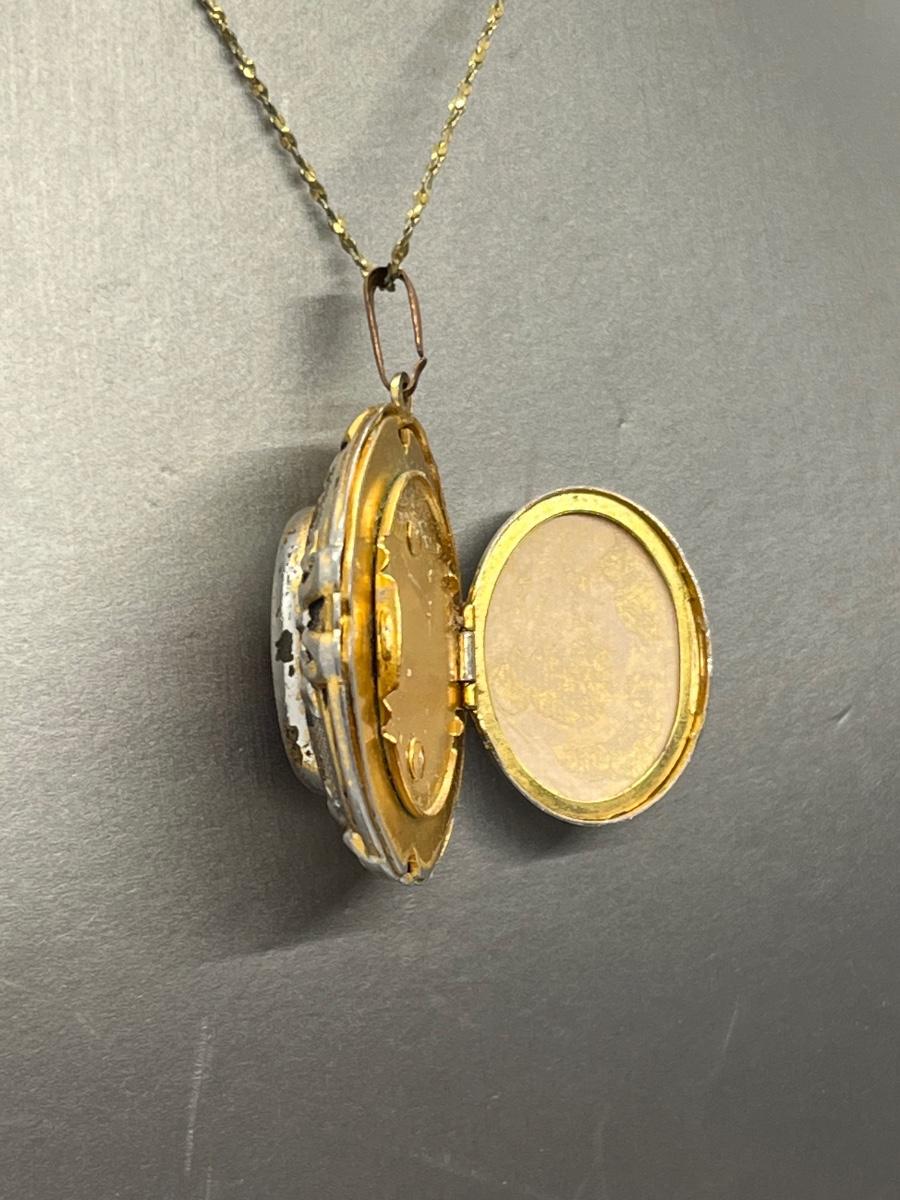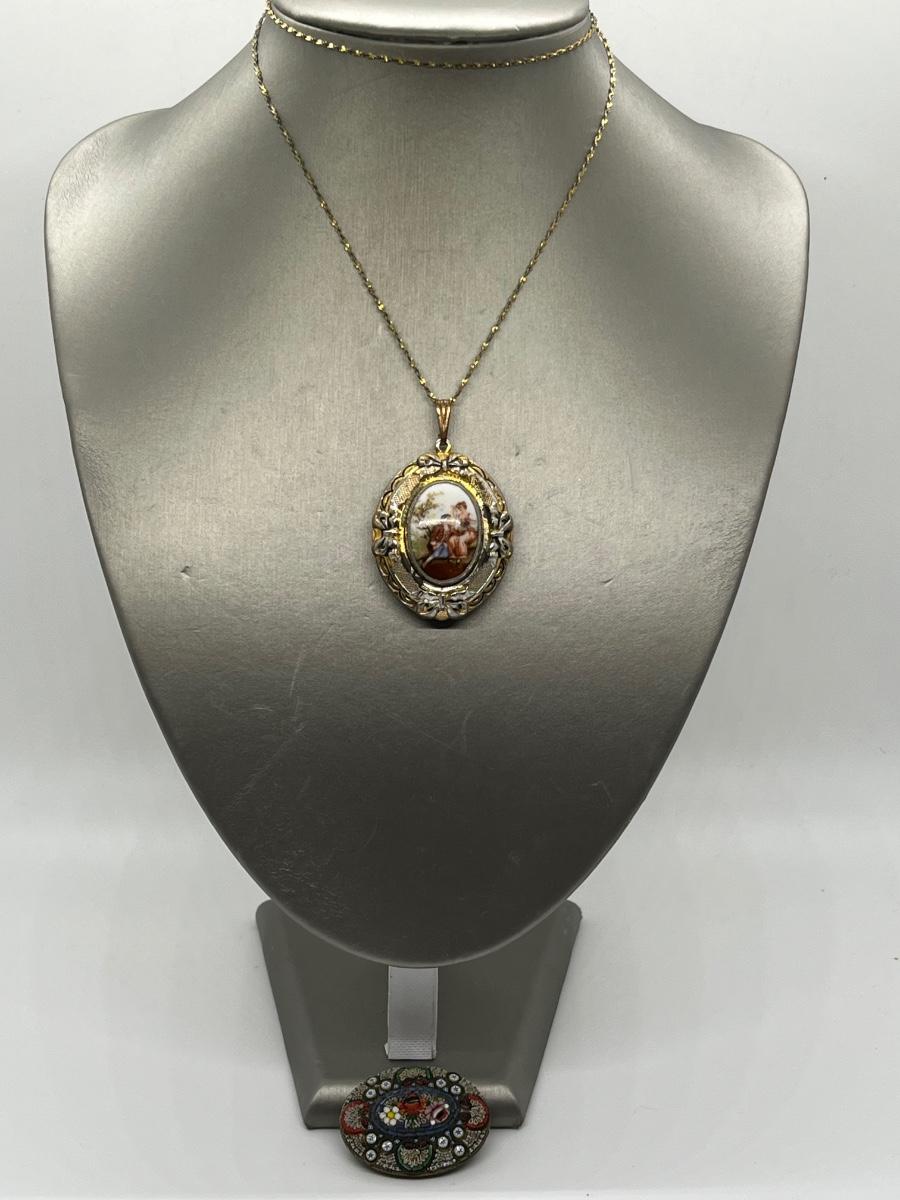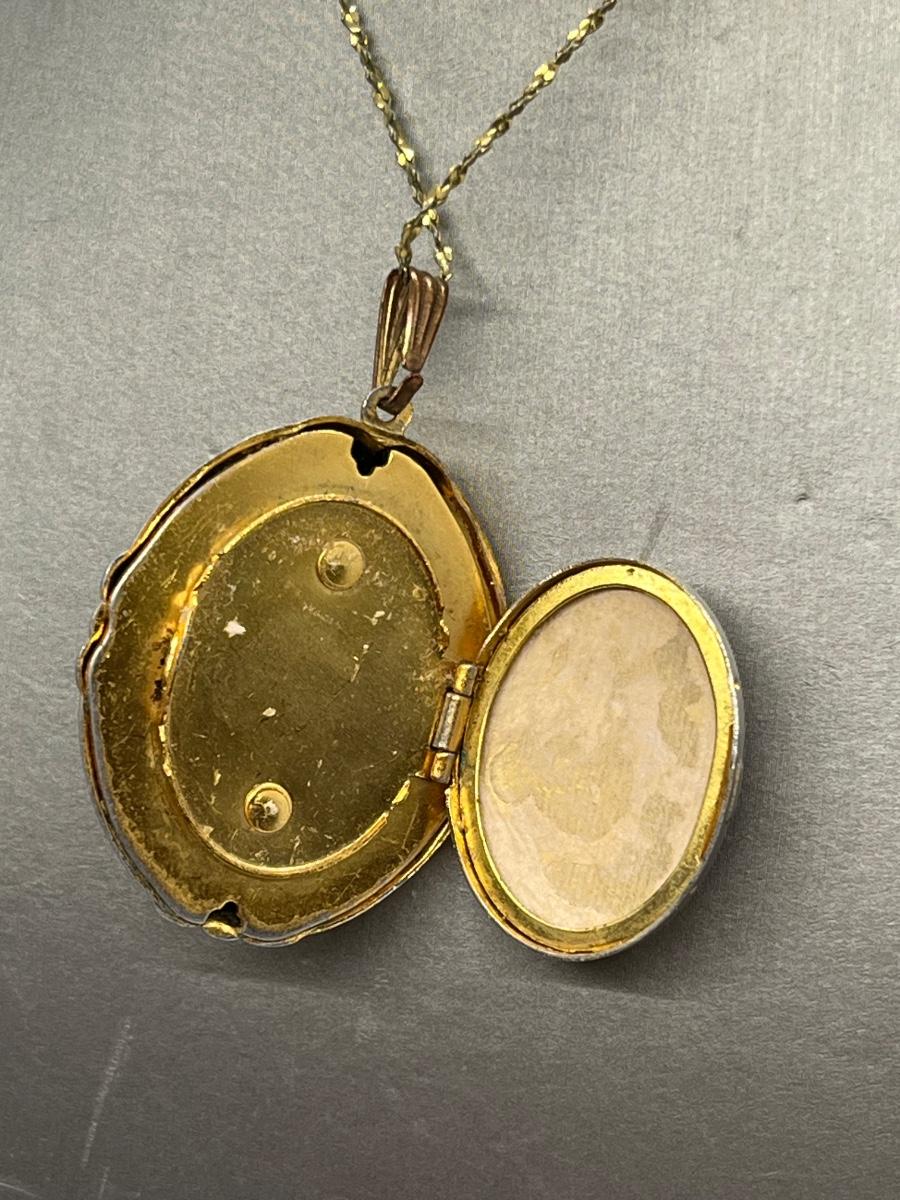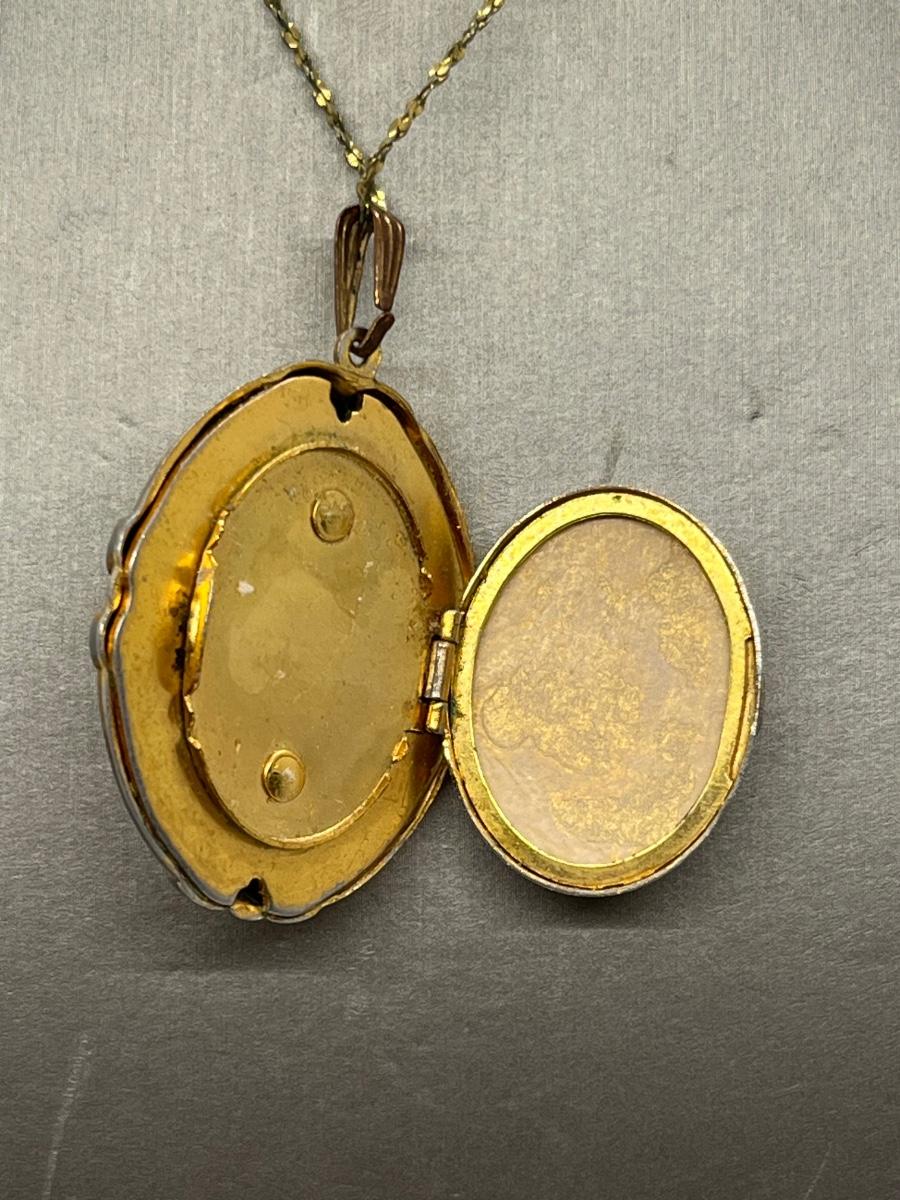 LOT 71: Vintage Locket on Goldtone Chain Plus Pin / Brooch