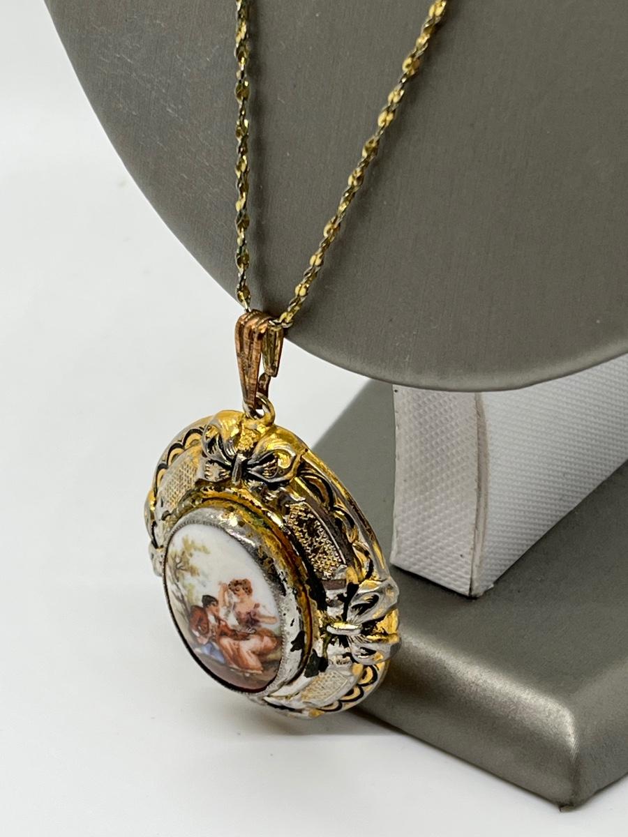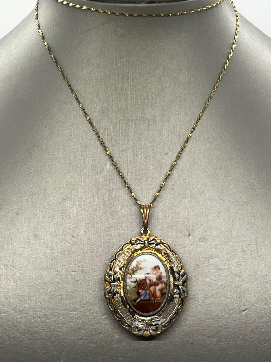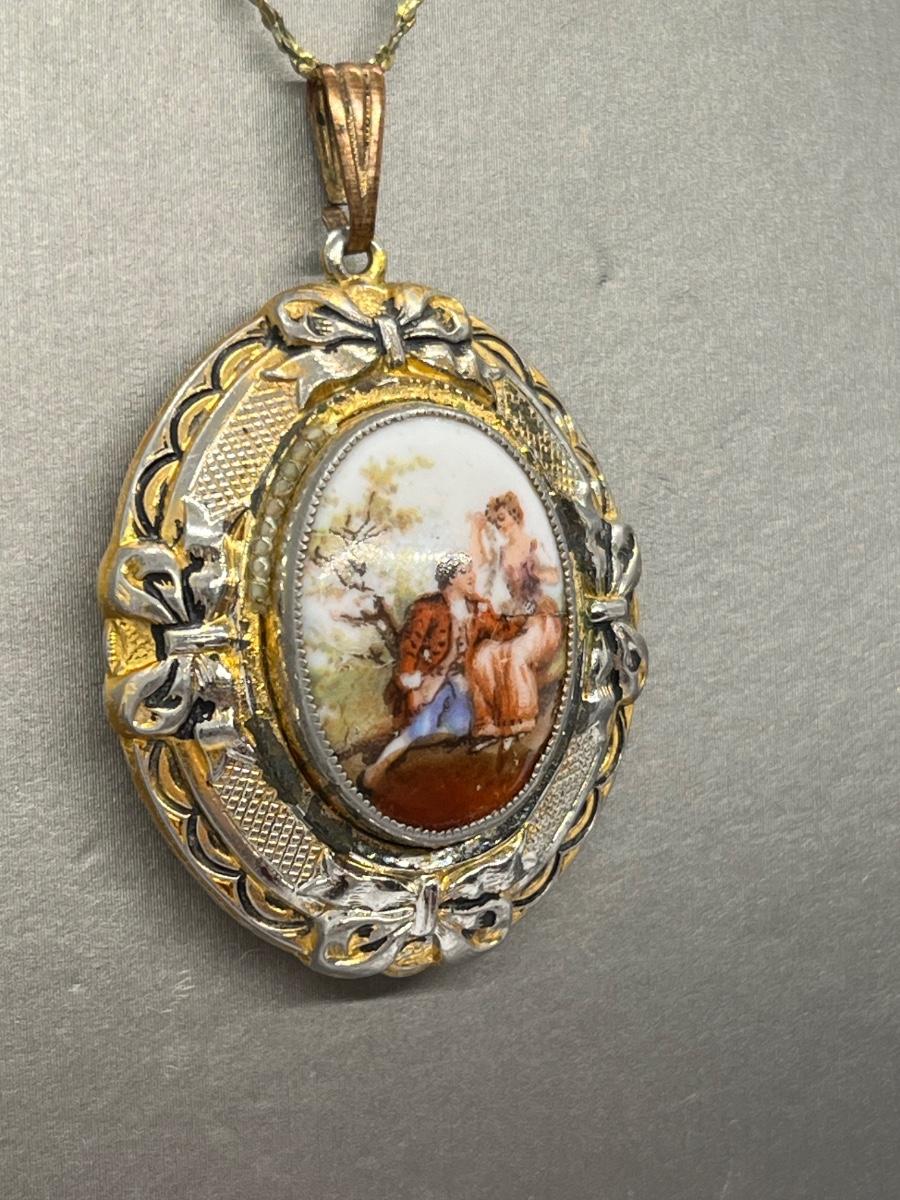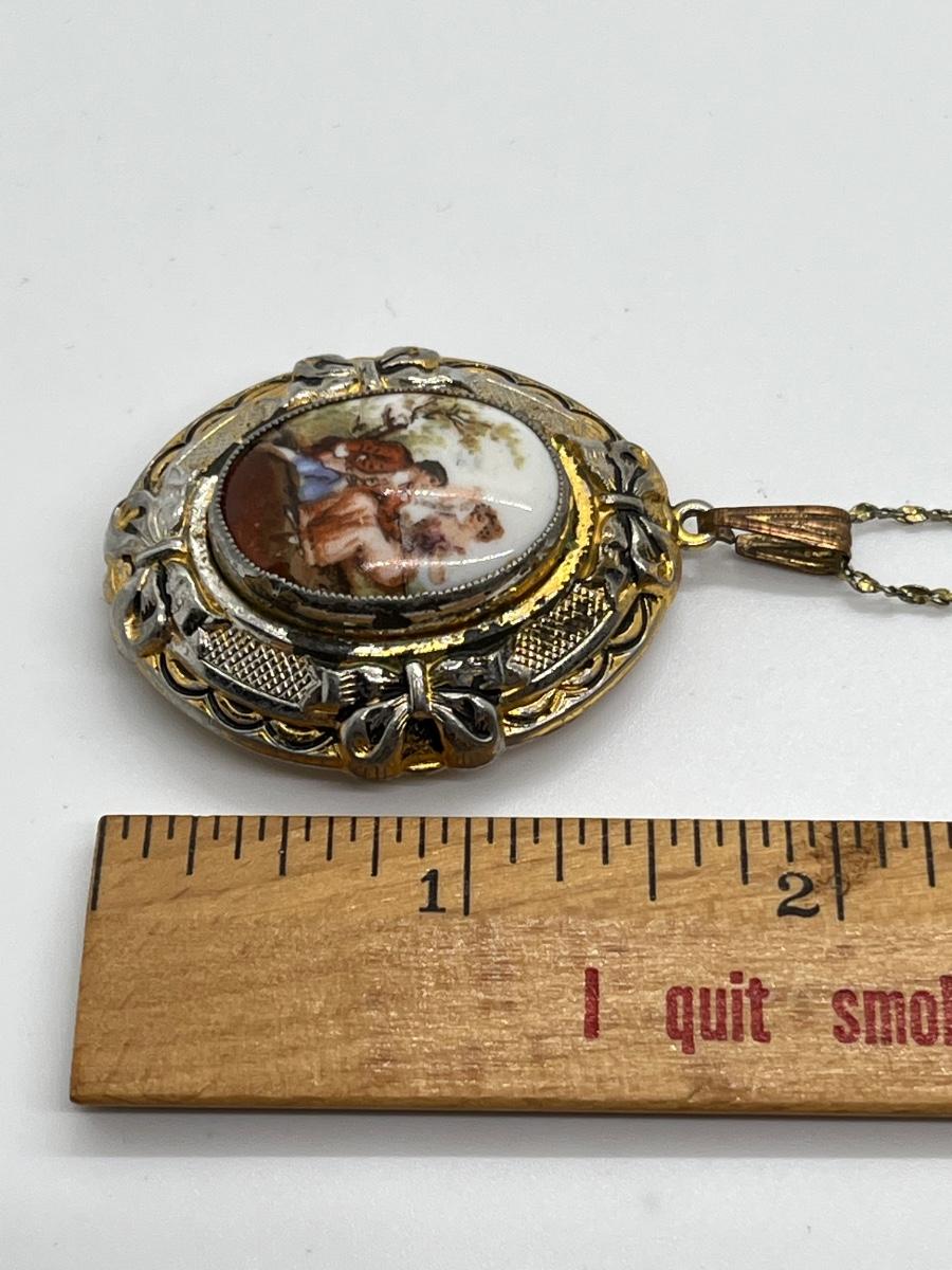 LOT 71: Vintage Locket on Goldtone Chain Plus Pin / Brooch