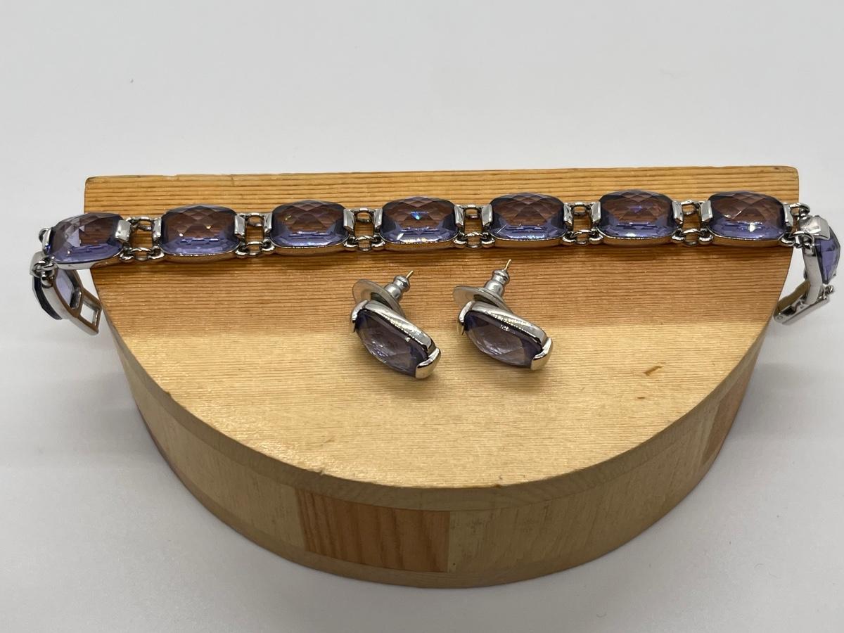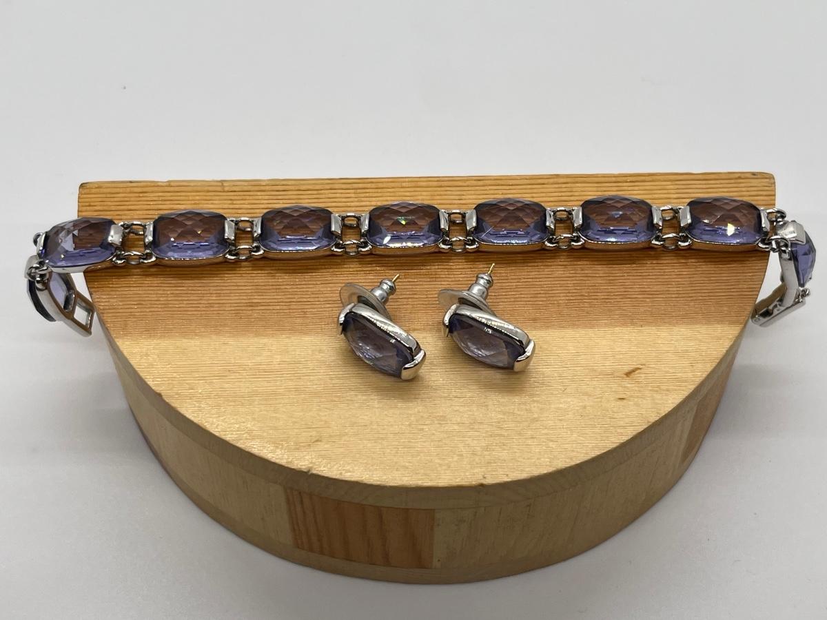 LOT 72: Swarovski Crystal Bracelet and Pierced Earrings Set