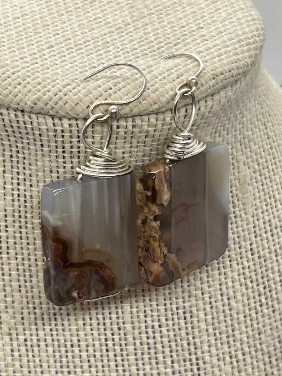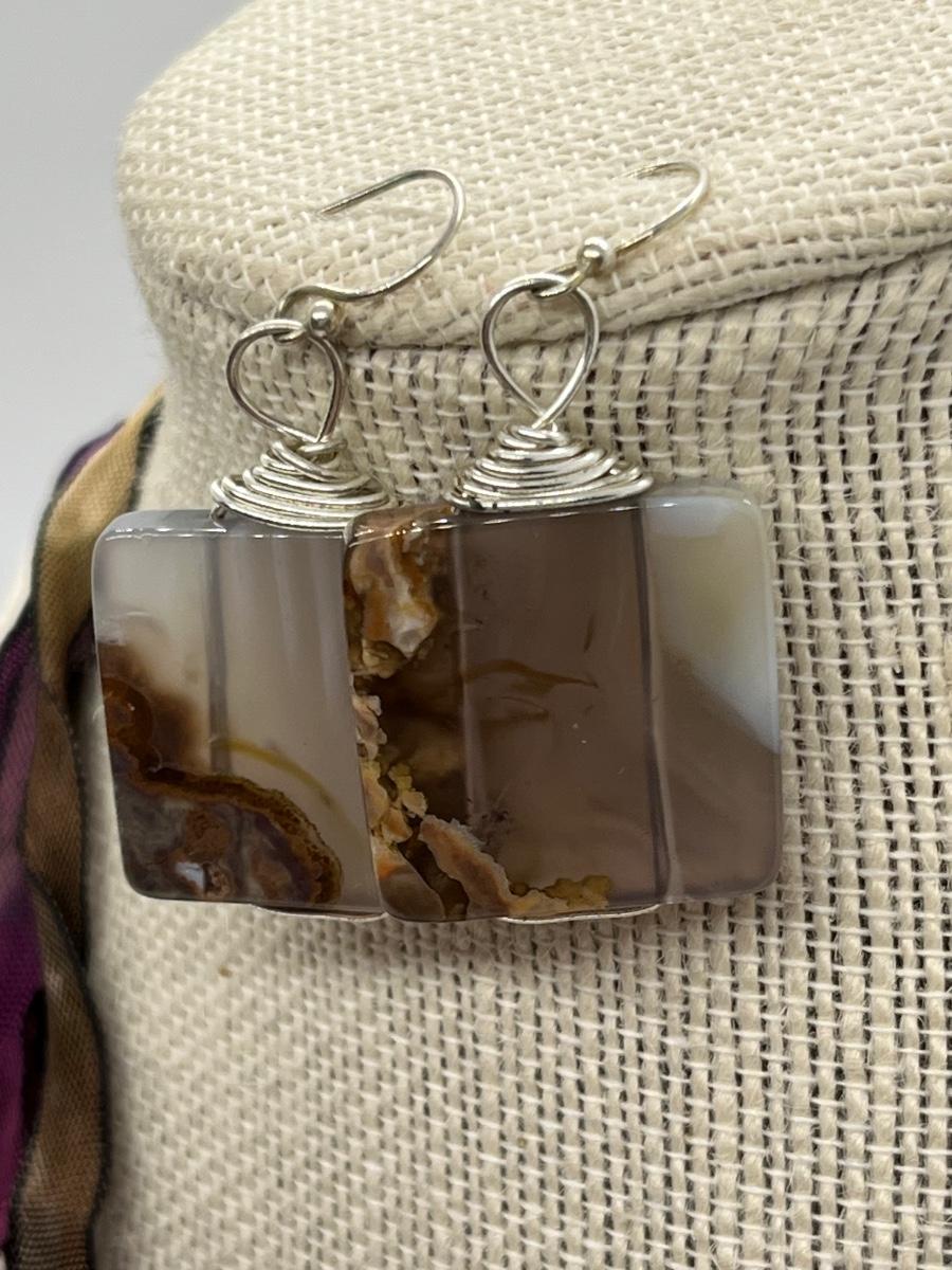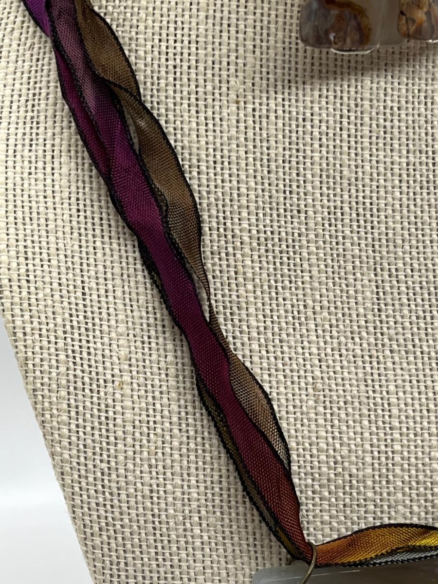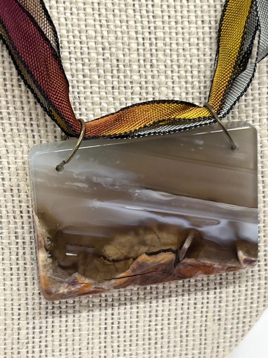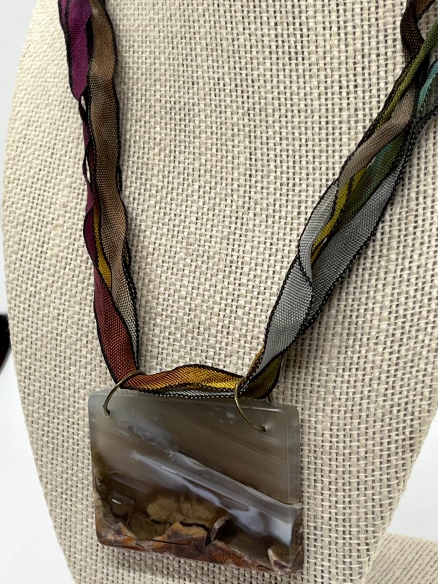 LOT 82: Natural Agate Gemstone Pierced Earrings and Pendant on 22" Ribbon Necklace