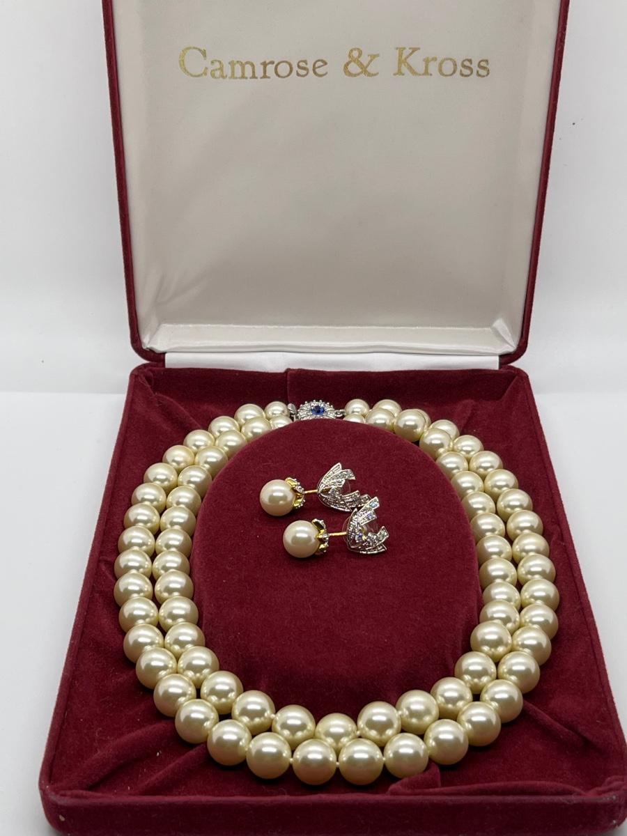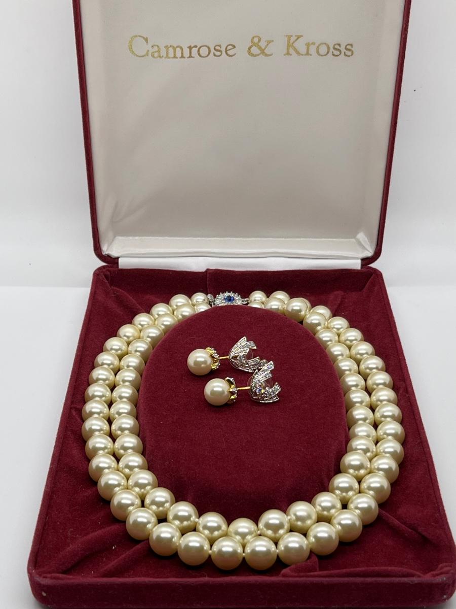 LOT 93: Camrose and Kross Faux Pearl Necklace and Earring Set