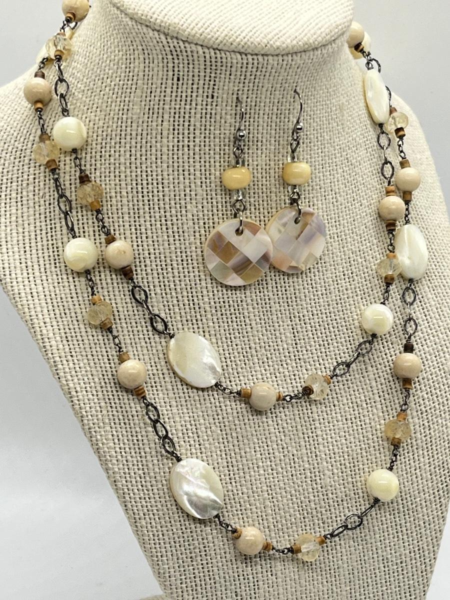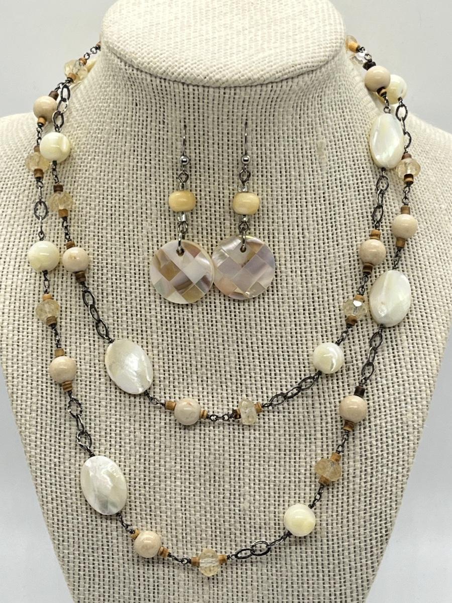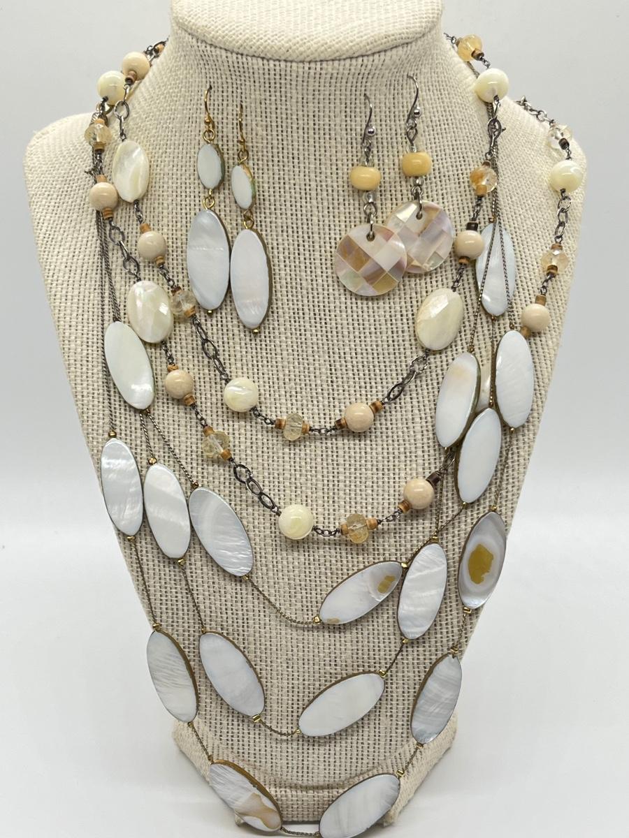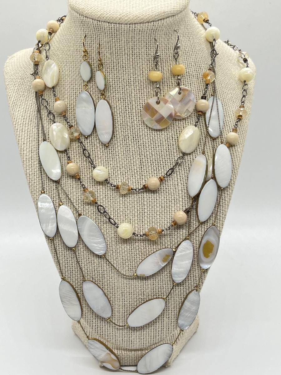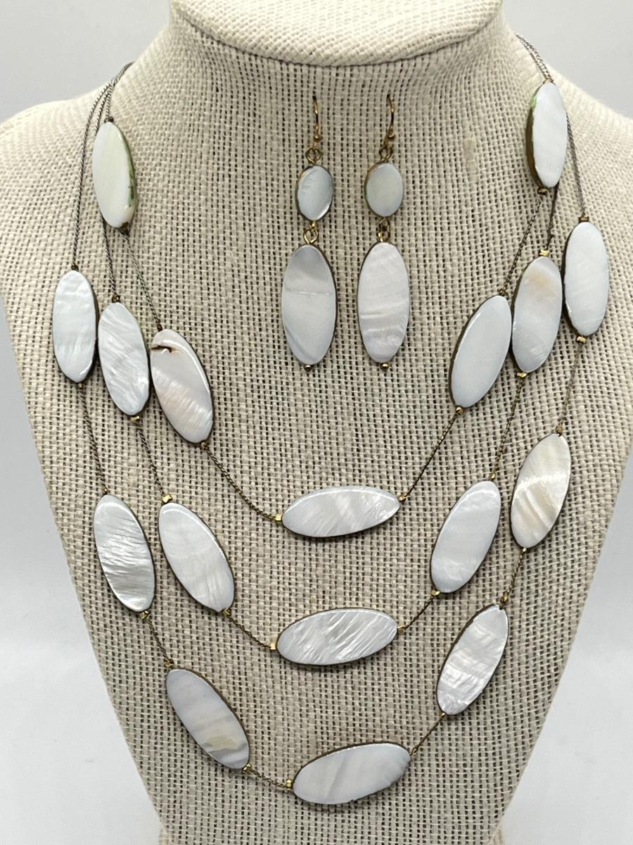 LOT 121: Mother of Pearl Necklace and Pierced Earring Set