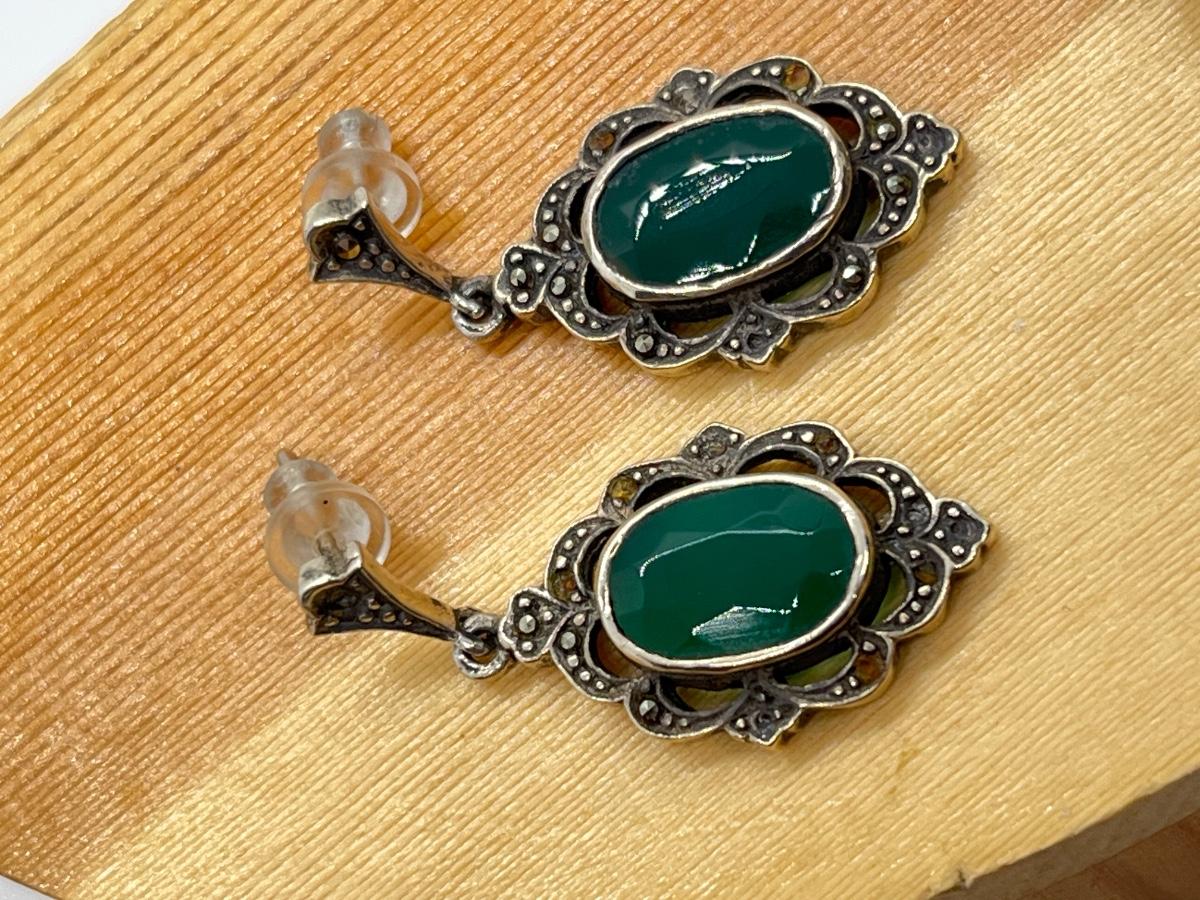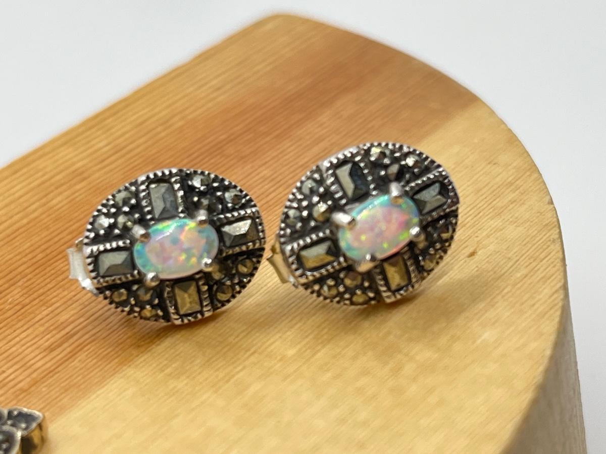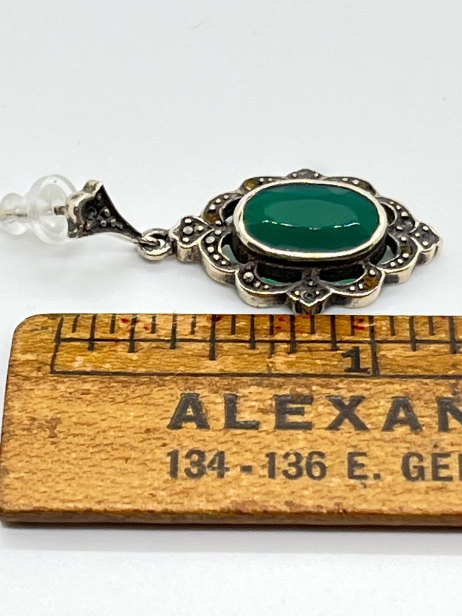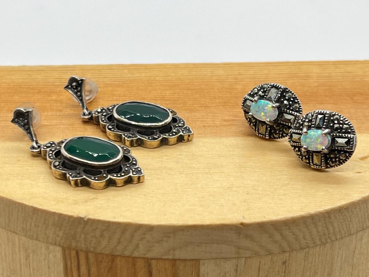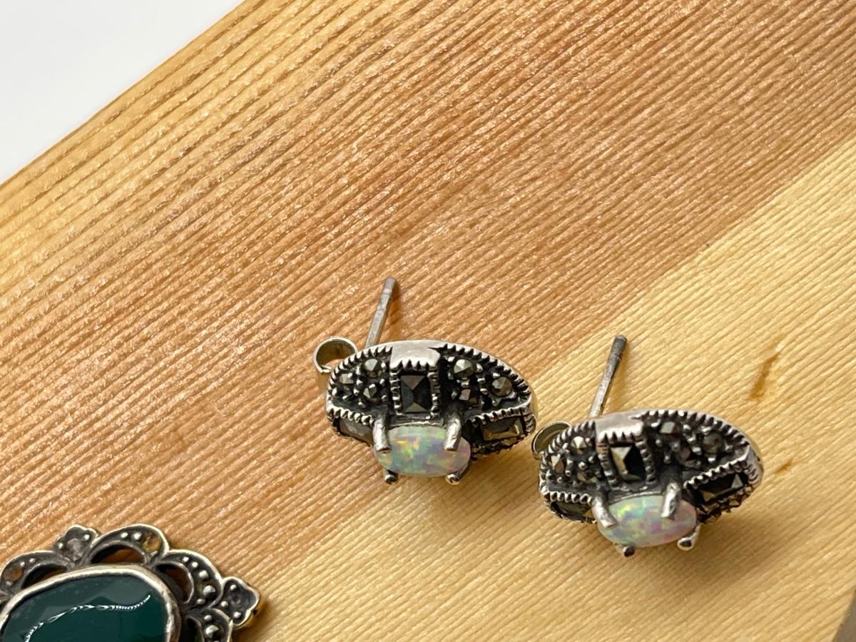 LOT 125: Green Agate and Fine Opal Pierced Earrings-925- 9.9 Grams Total Weight