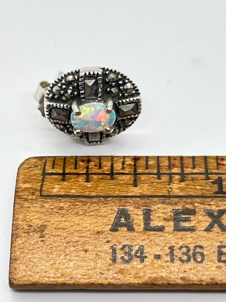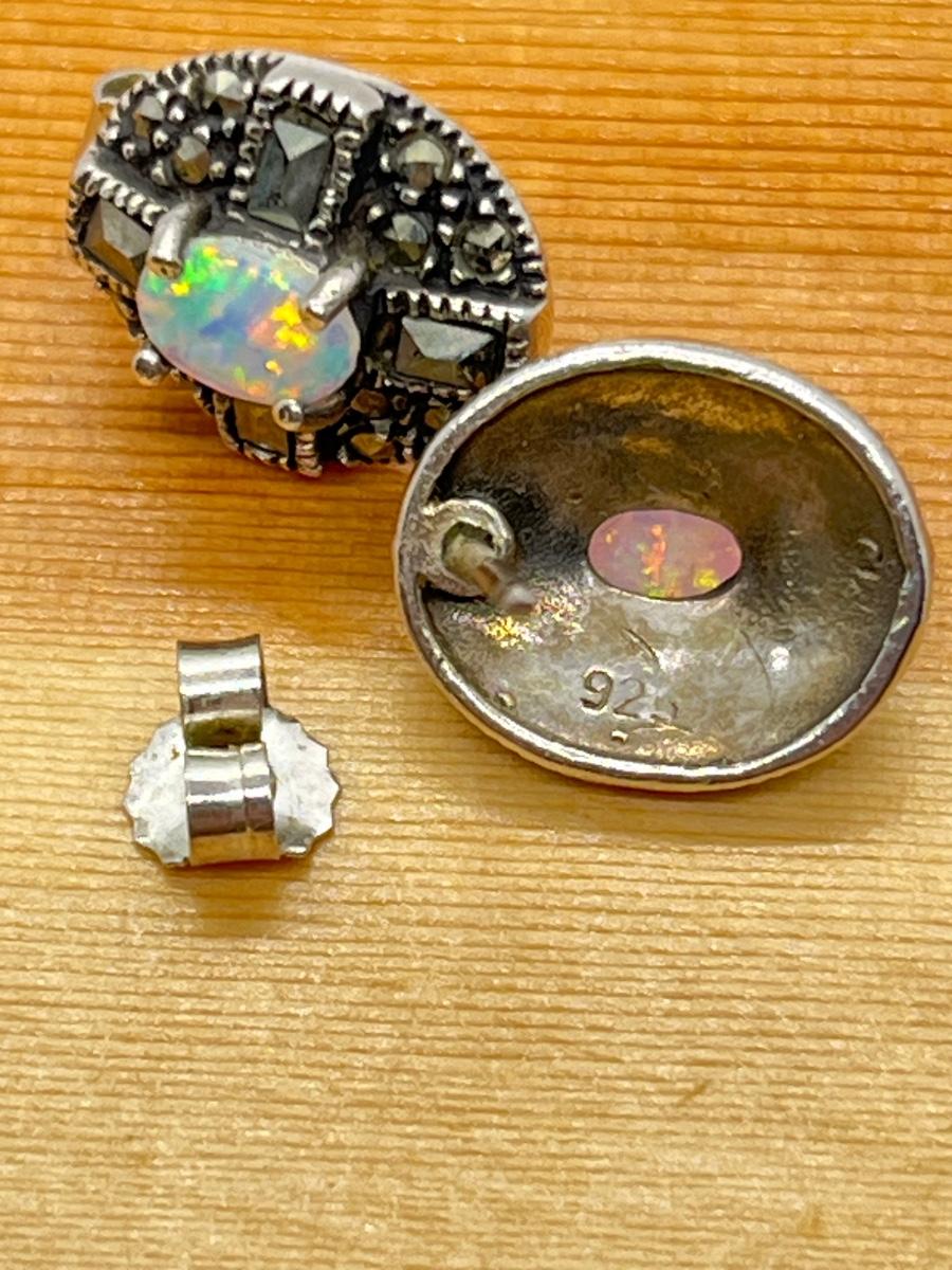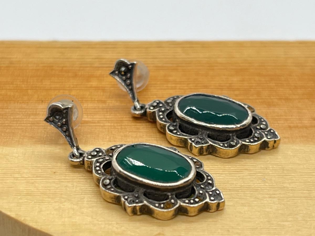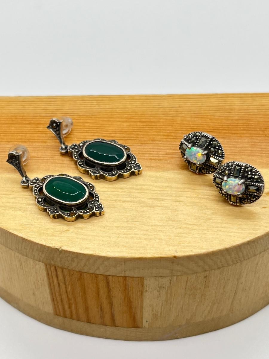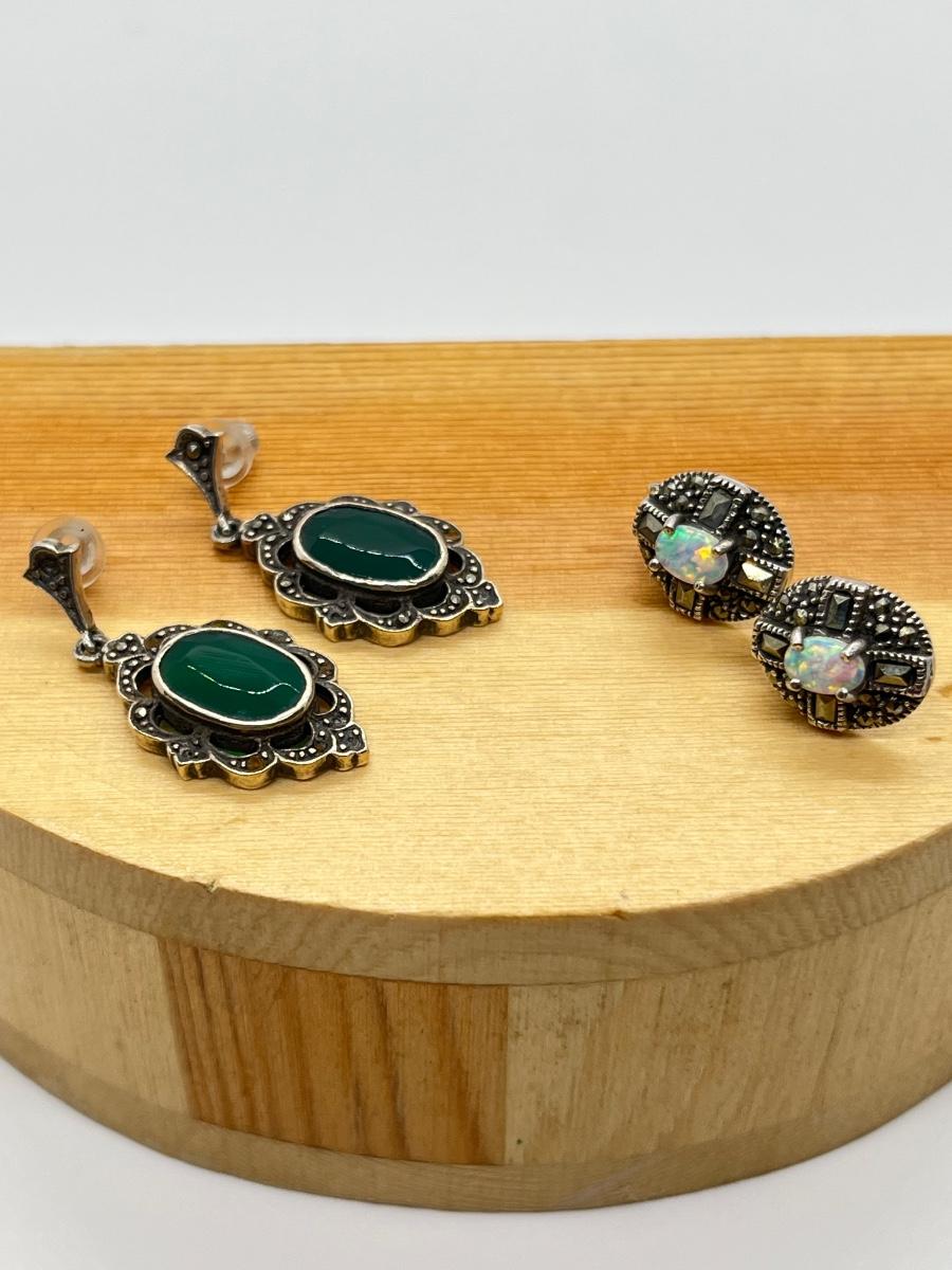 LOT 125: Green Agate and Fine Opal Pierced Earrings-925- 9.9 Grams Total Weight
