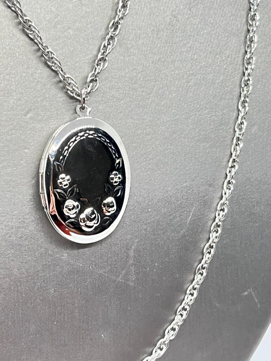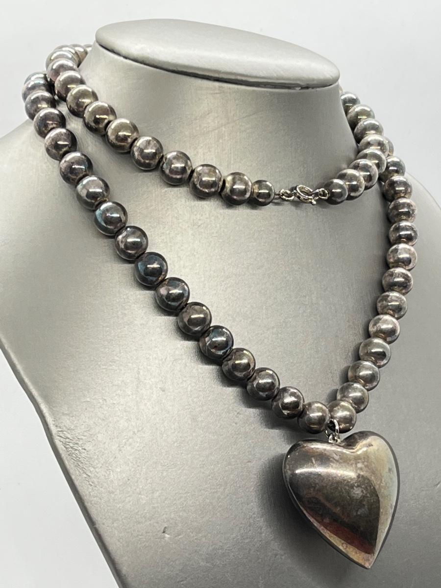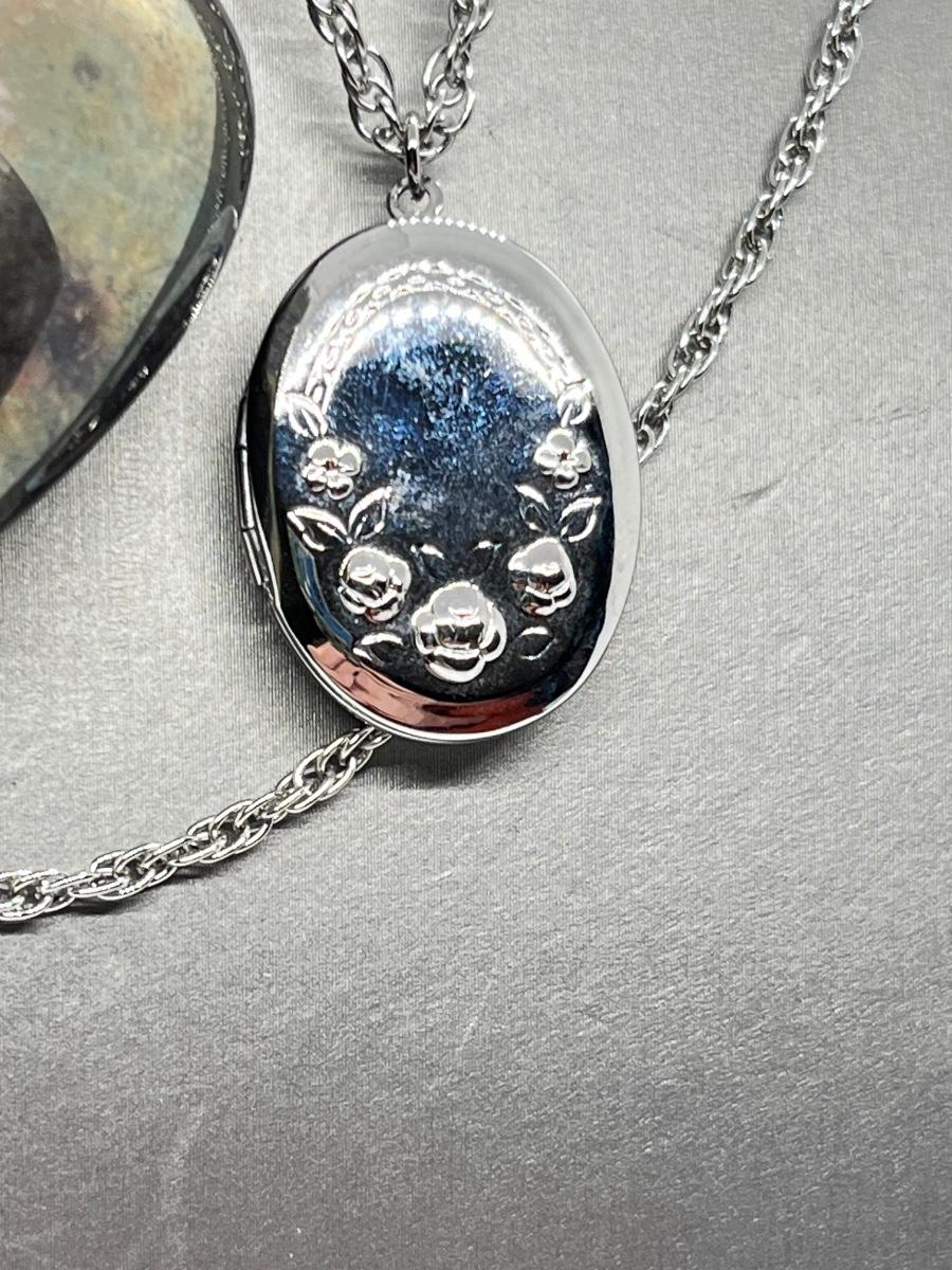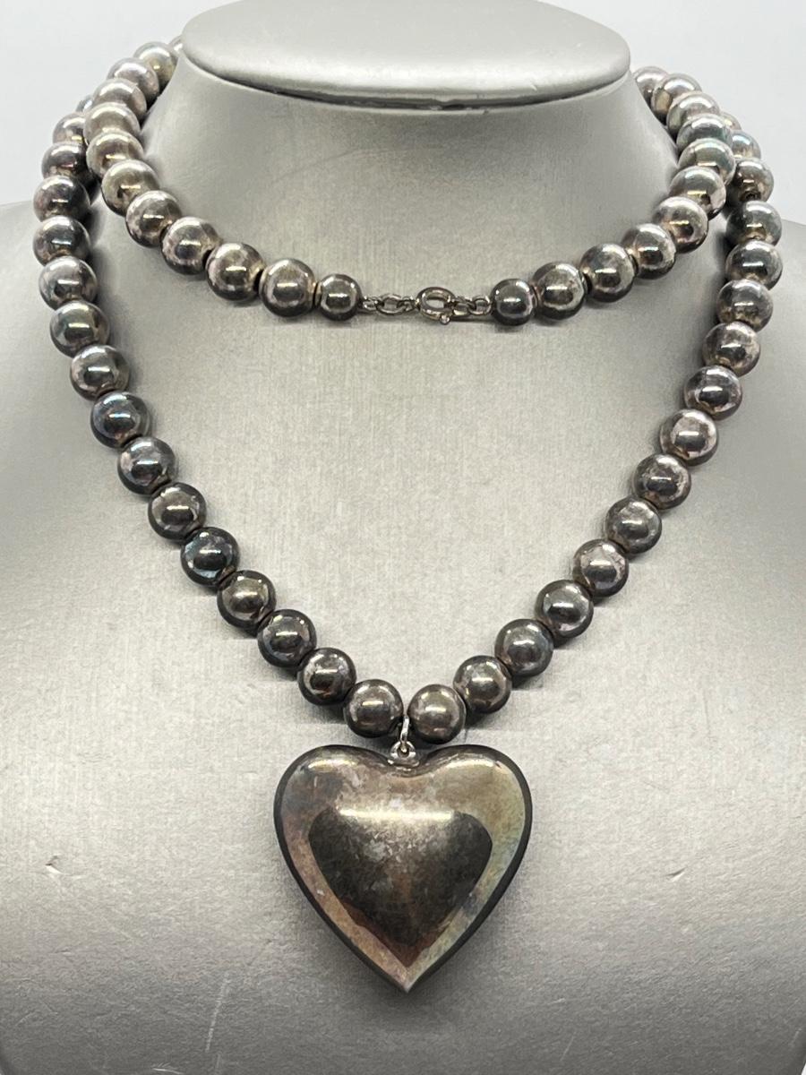 LOT 127: Vintage Beaded Heart Necklace, Pierced Earrings and Floral Silvertone Locket Necklace
