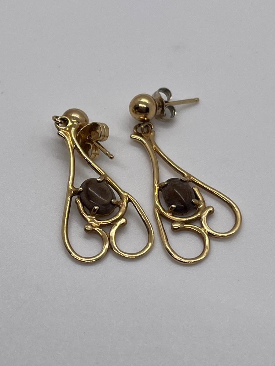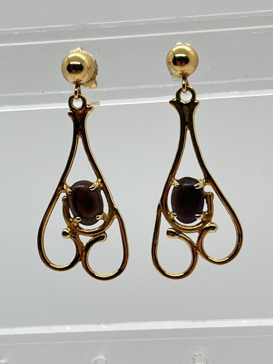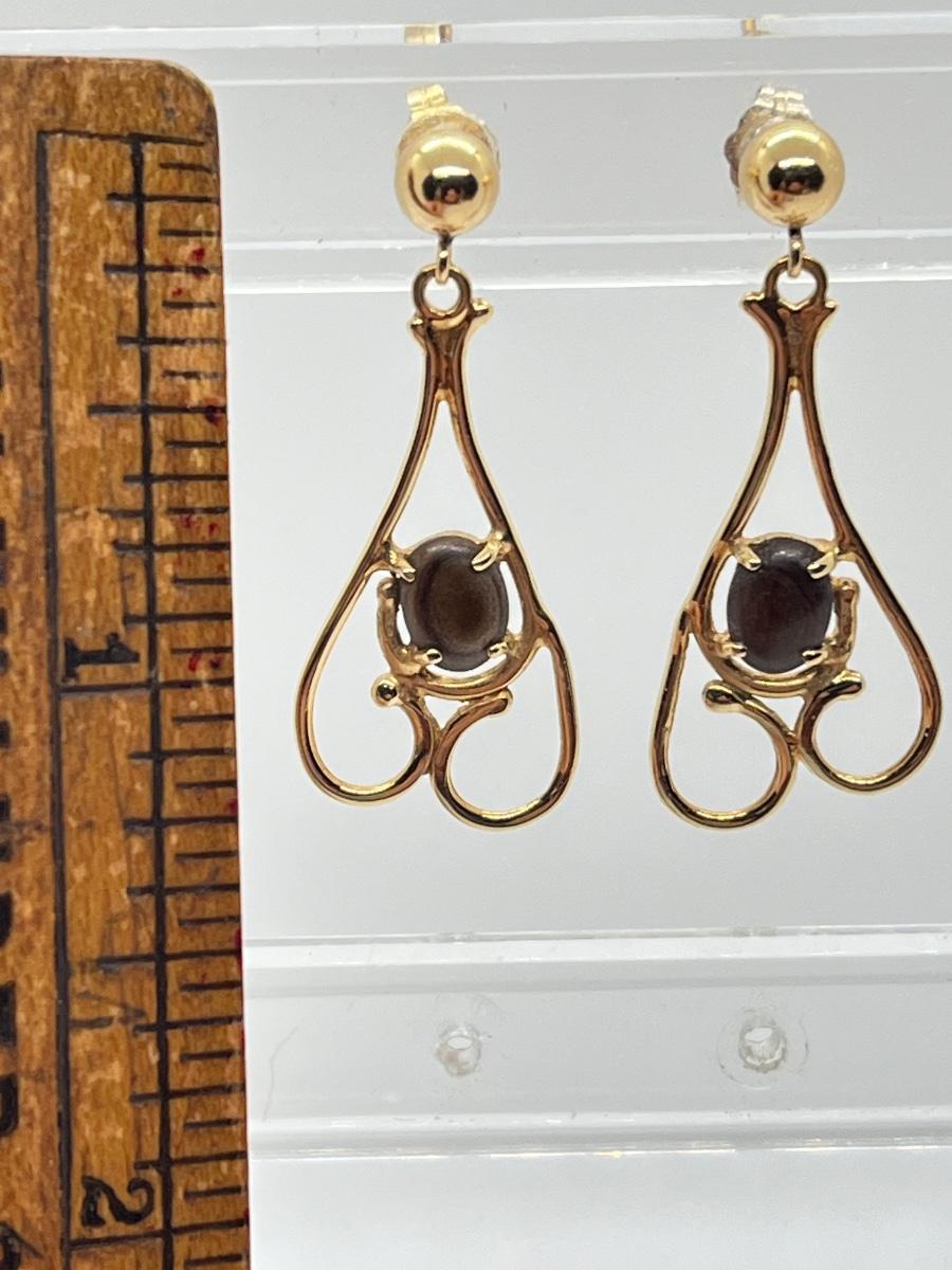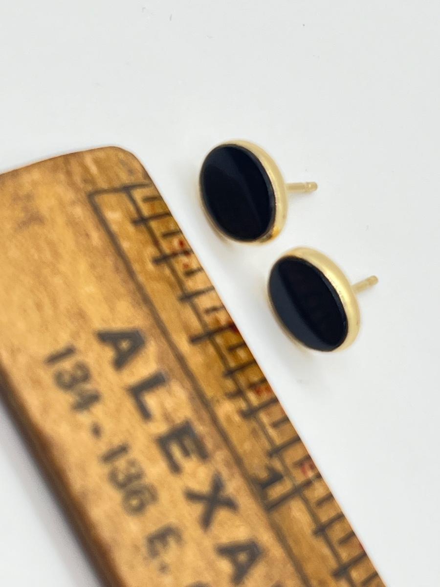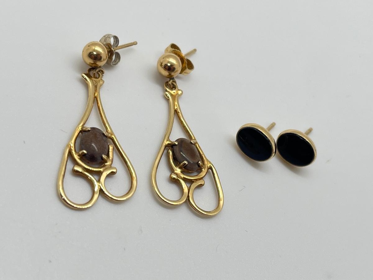 LOT 130: Two Pairs of 14K Gold Earrings - Black Onyx Studs and Dangling - 4.26 gtw
