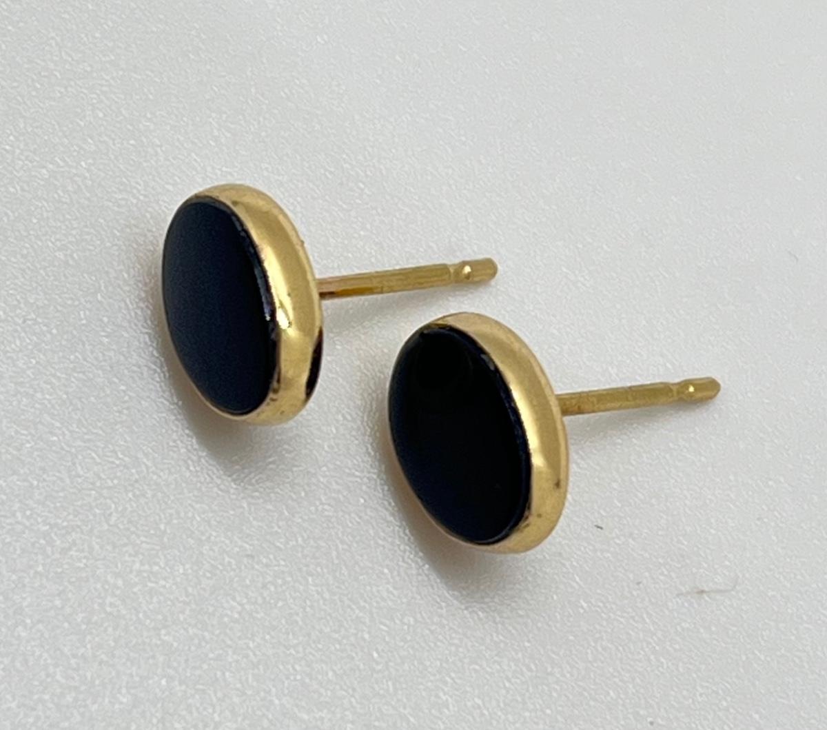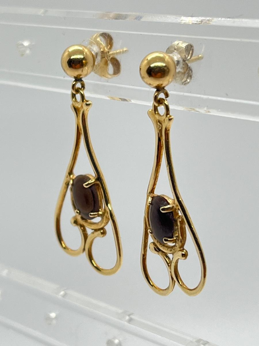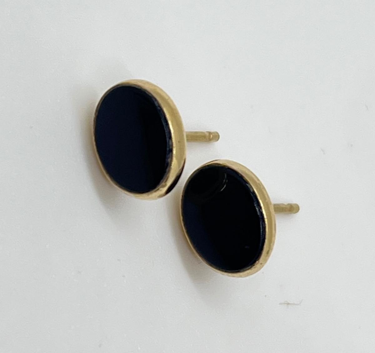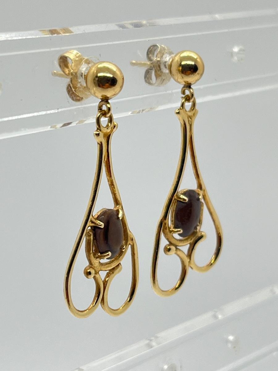 LOT 130: Two Pairs of 14K Gold Earrings - Black Onyx Studs and Dangling - 4.26 gtw