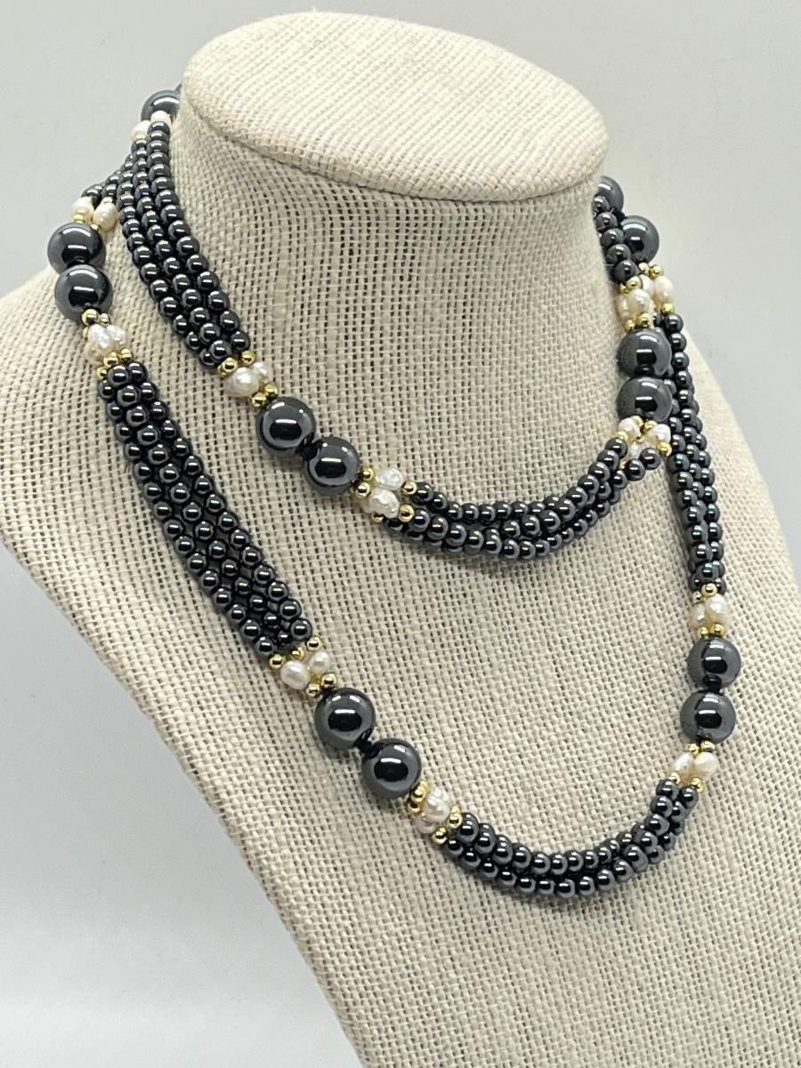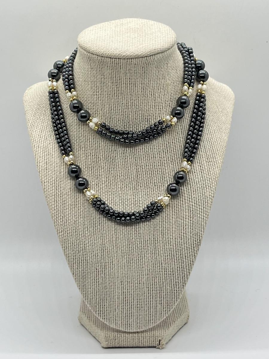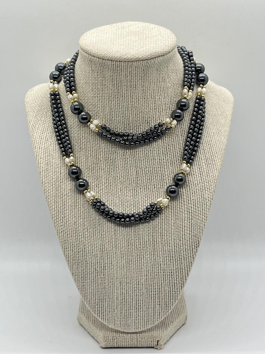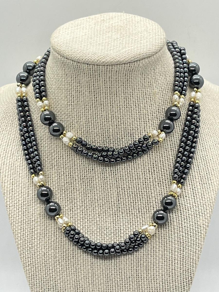 LOT 132: Hematite and Pearl 30" Multi-Strand Necklace