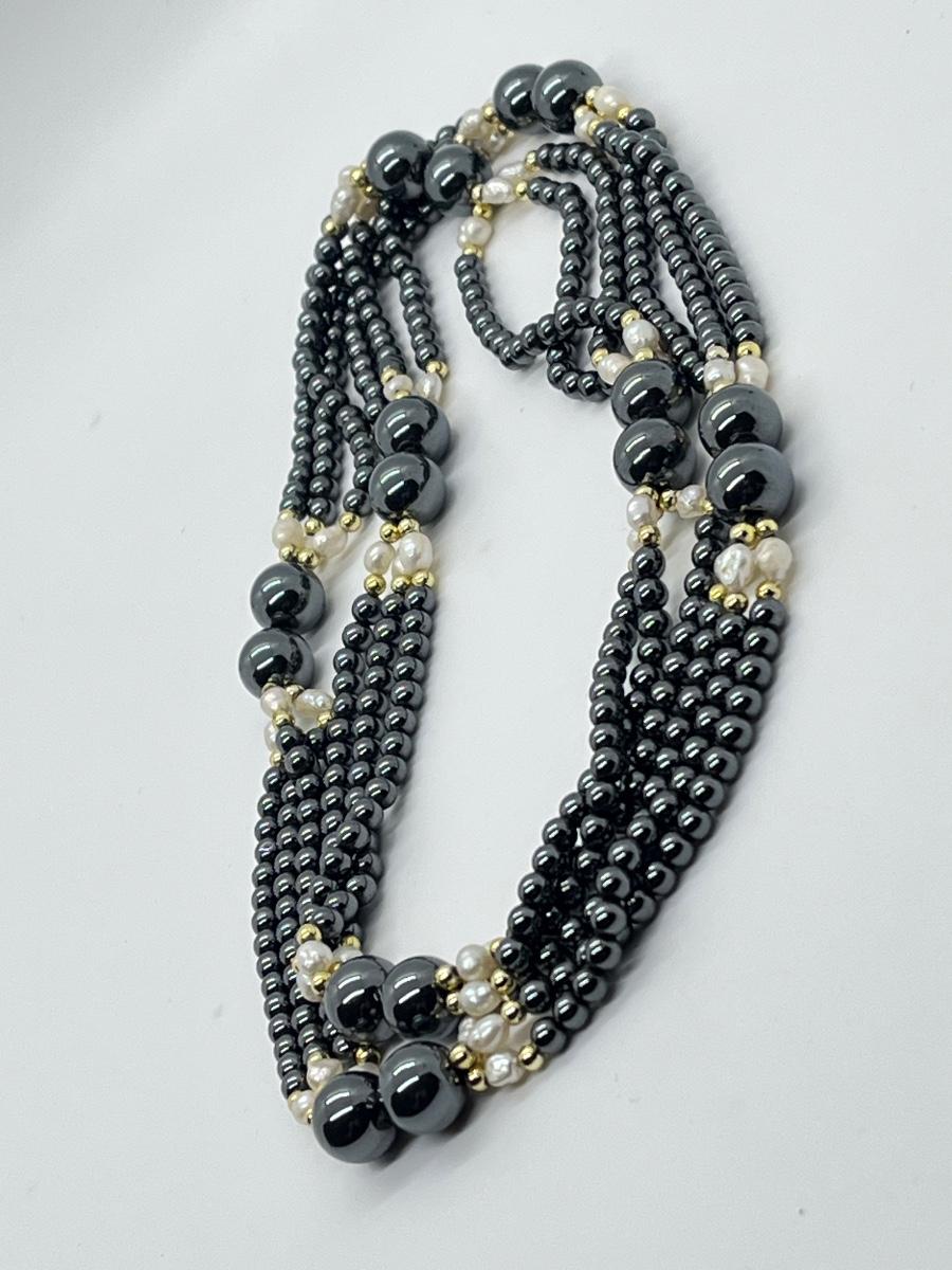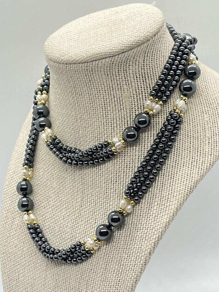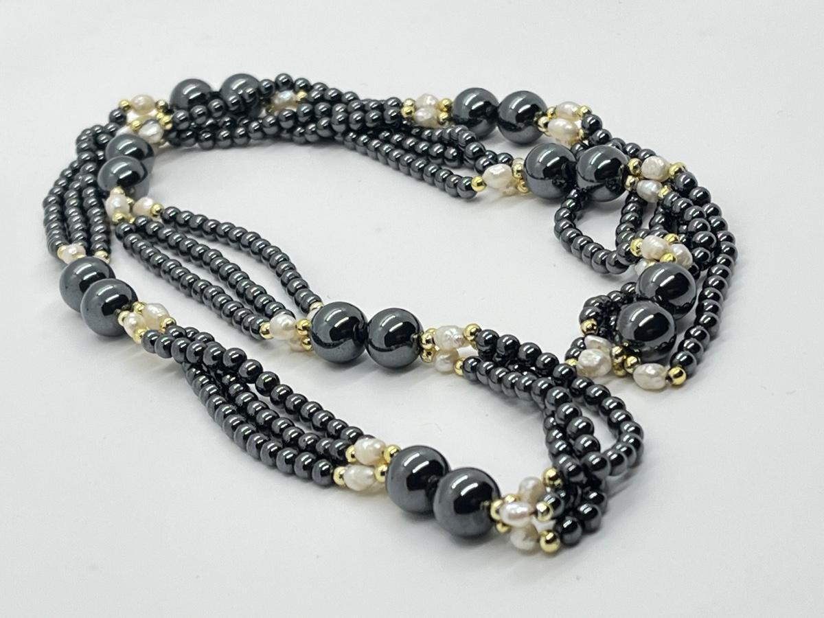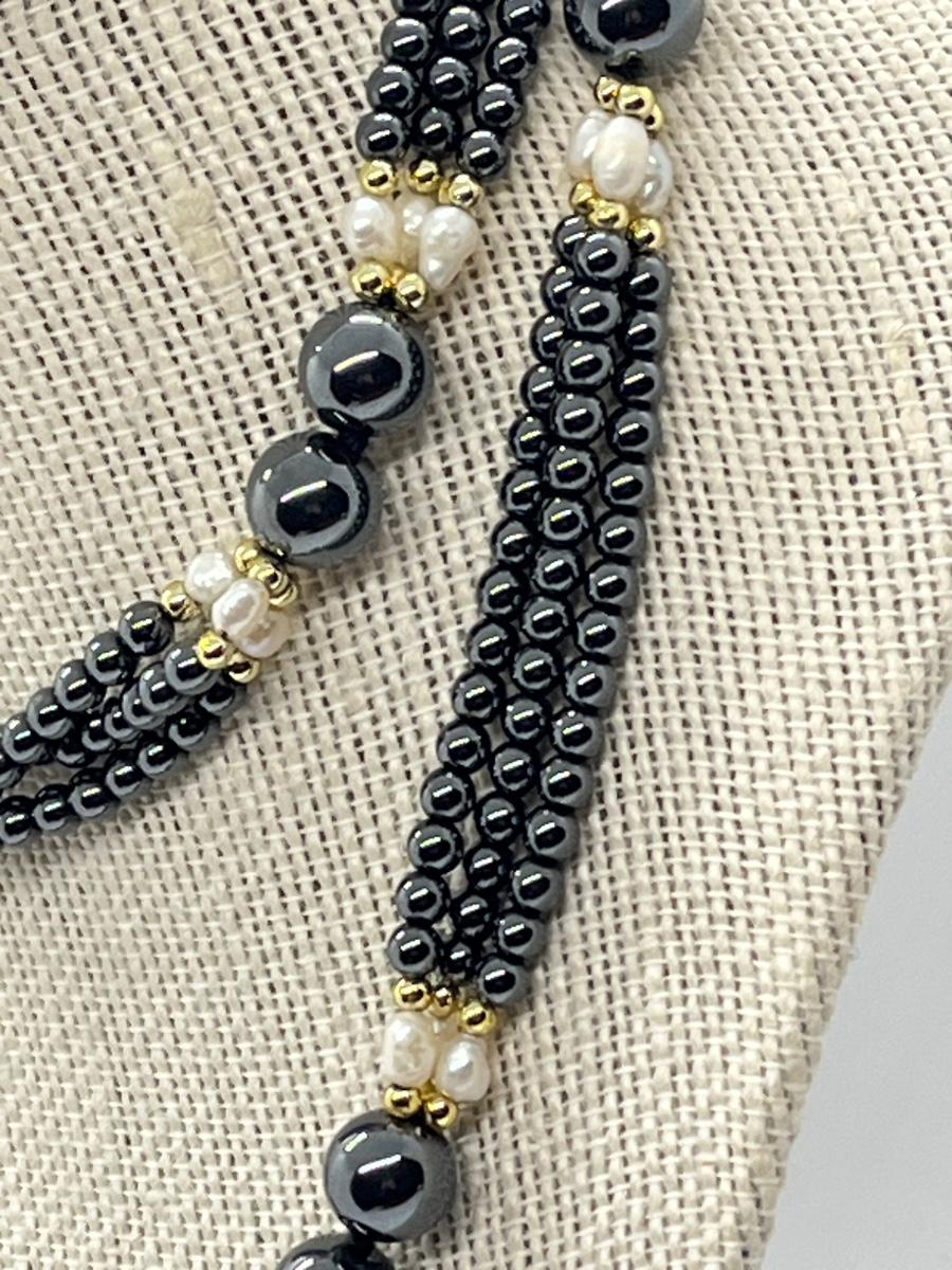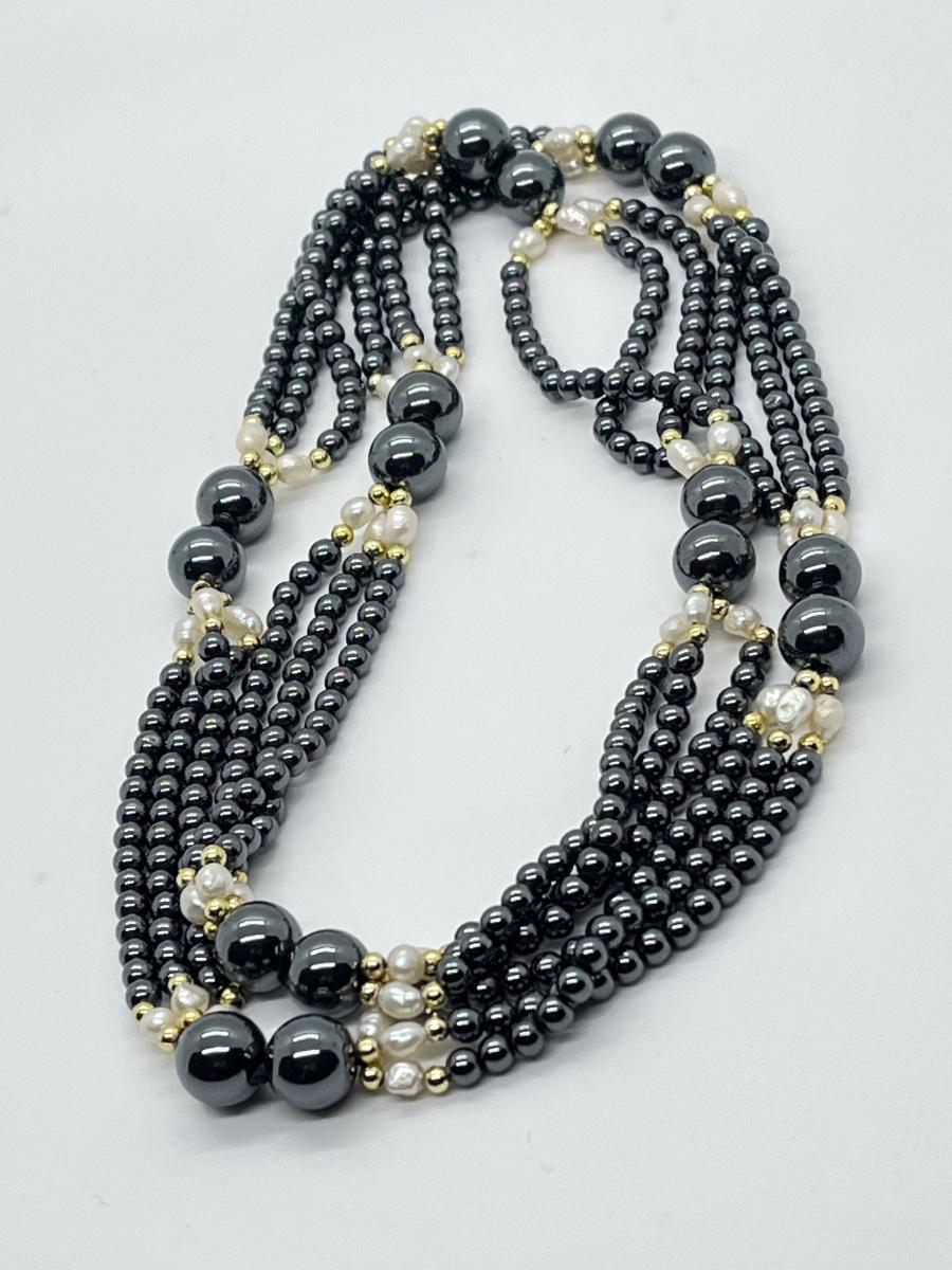 LOT 132: Hematite and Pearl 30" Multi-Strand Necklace