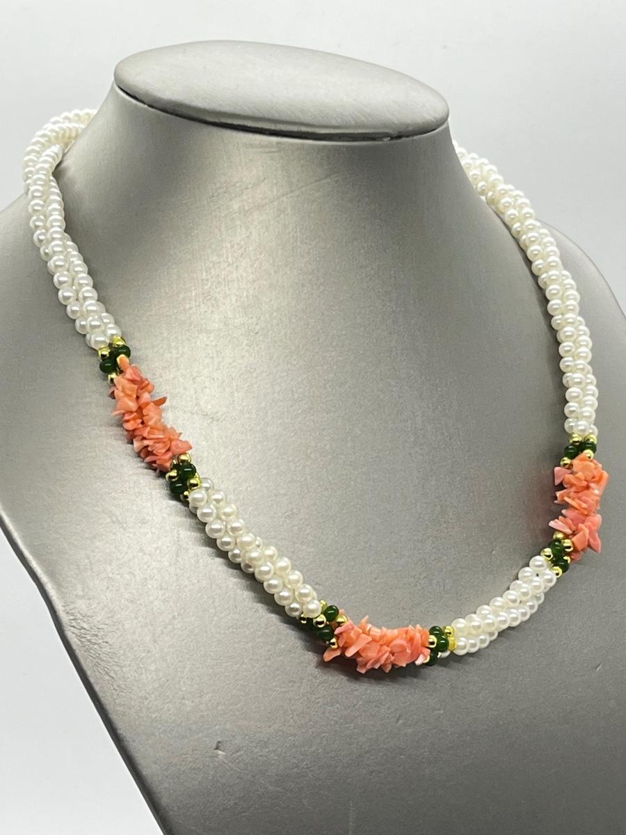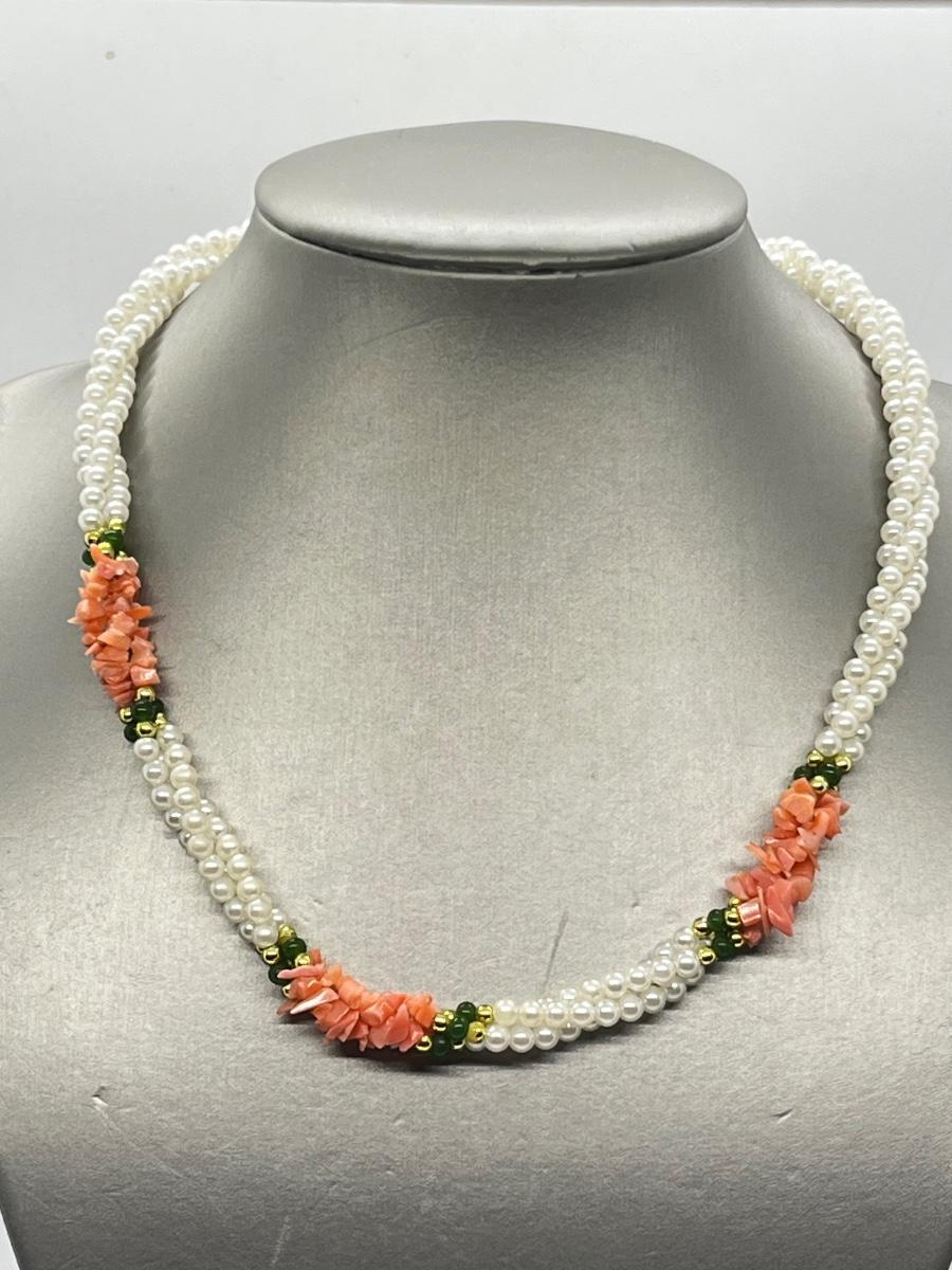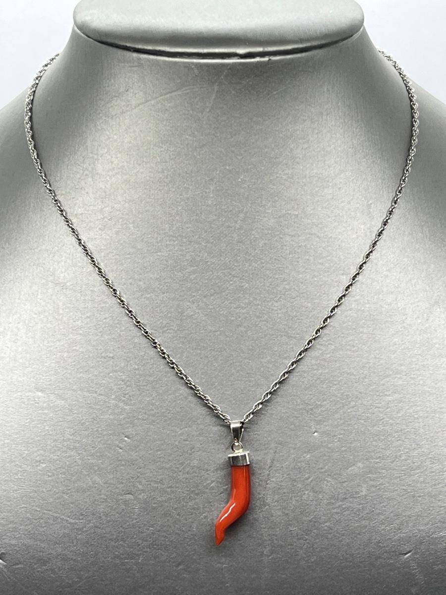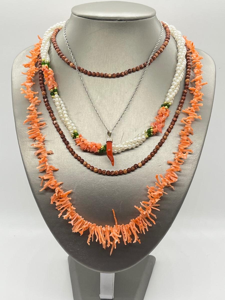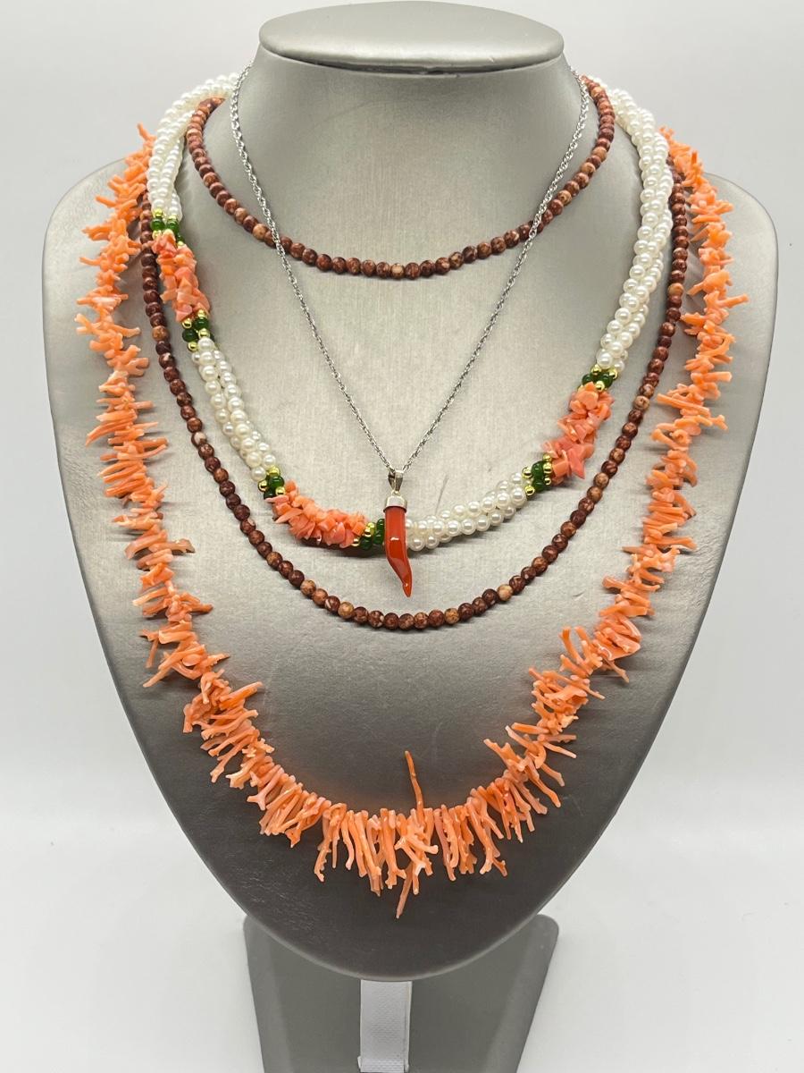 LOT 139: Marked 925 Coral Italian Horn on Sterling Neclace, Branch Coral Necklace, Coral and Faux Pearl Necklace & More