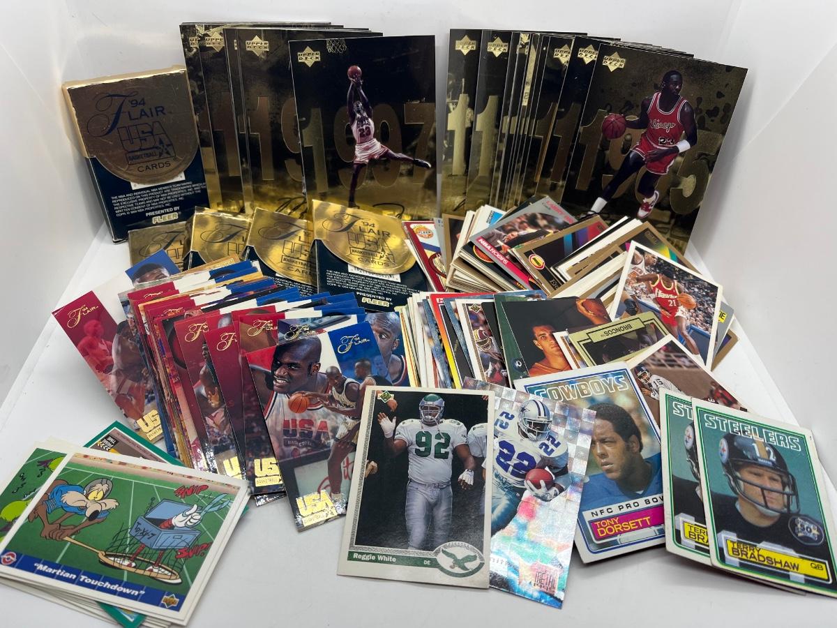 LOT 146: 1980s - 90s NFL Football & NBA Basketball Cards - Michael Jordan, Shaq, Terry Bradshaw